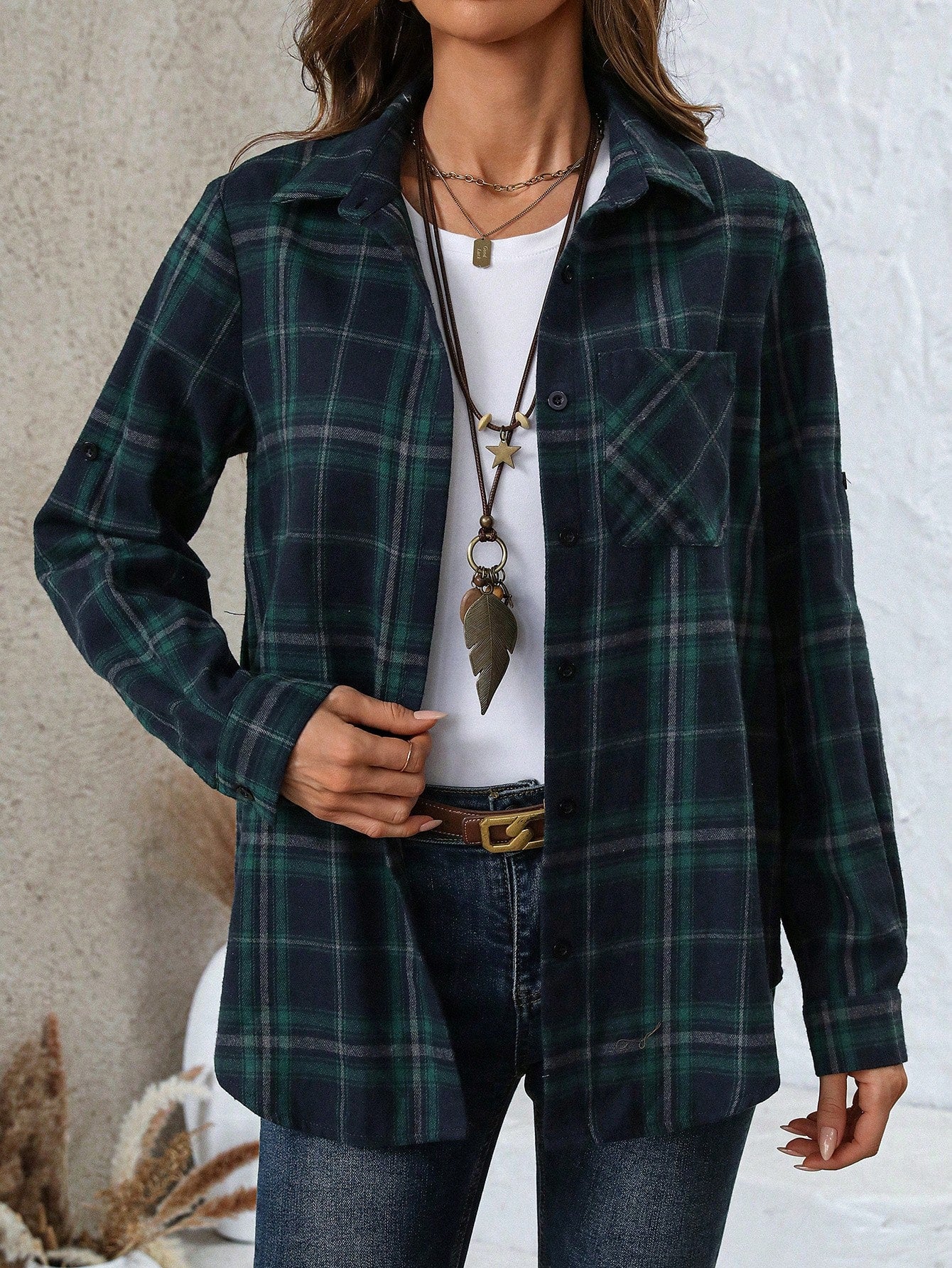 EMERY ROSE Women's Plaid Print Button-Front Pocket Casual Long Sleeve Shirt Fall Women Shirts First Day