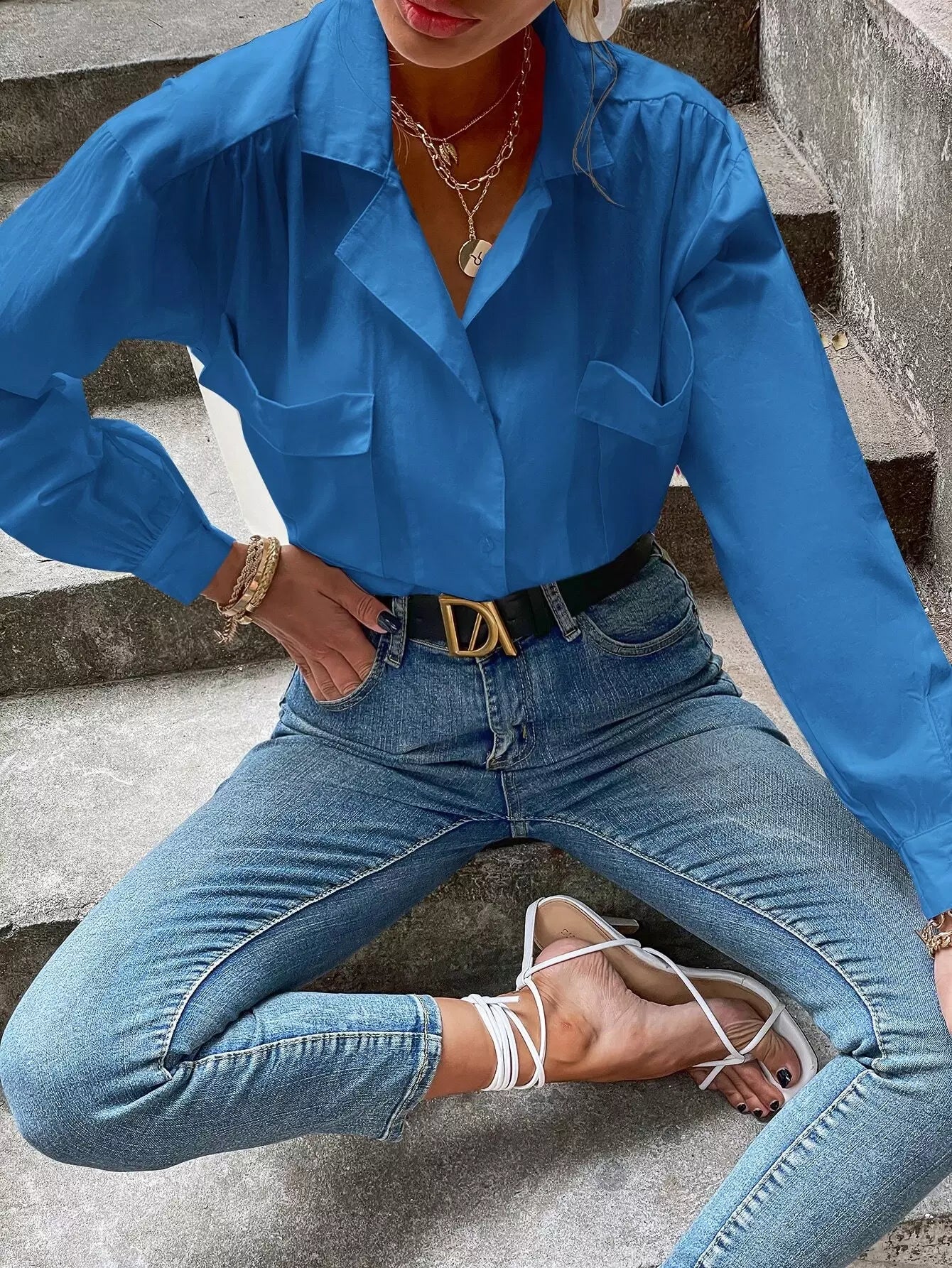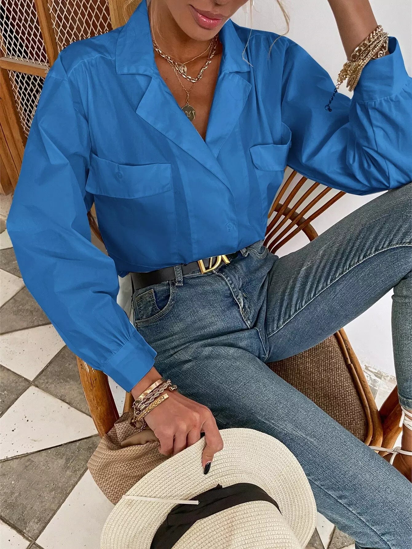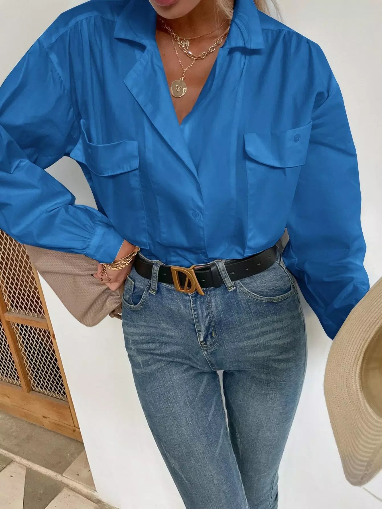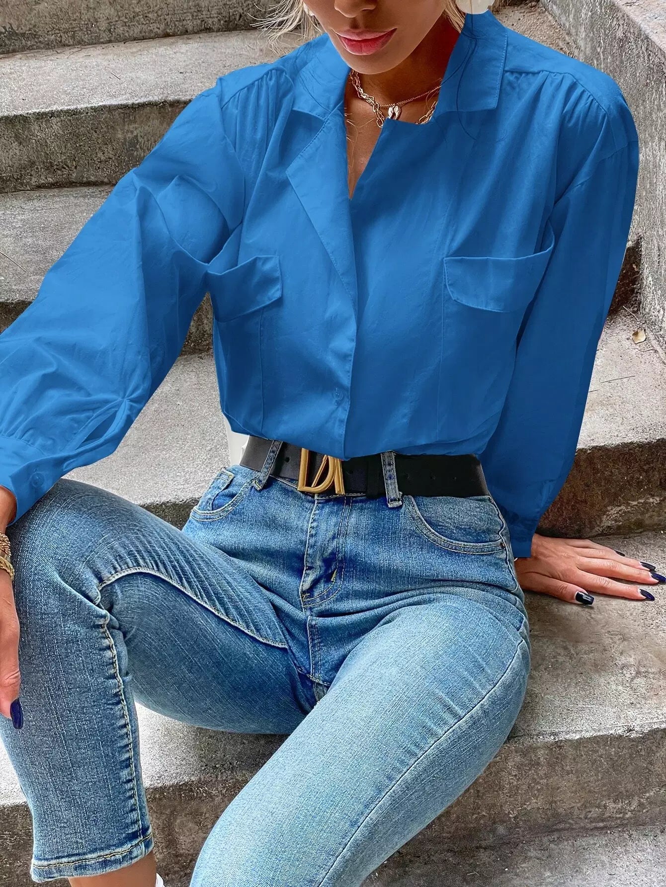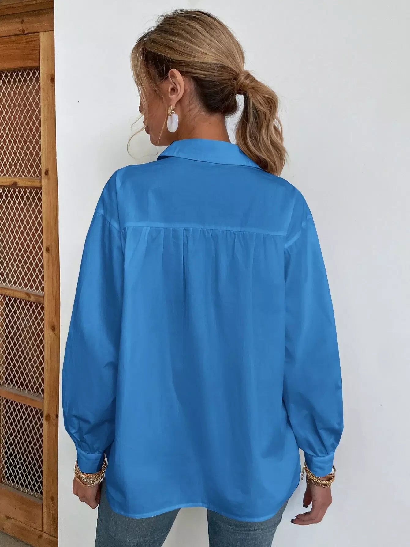 Women - Flap Pocket Drop Shoulder Oversized Blouse