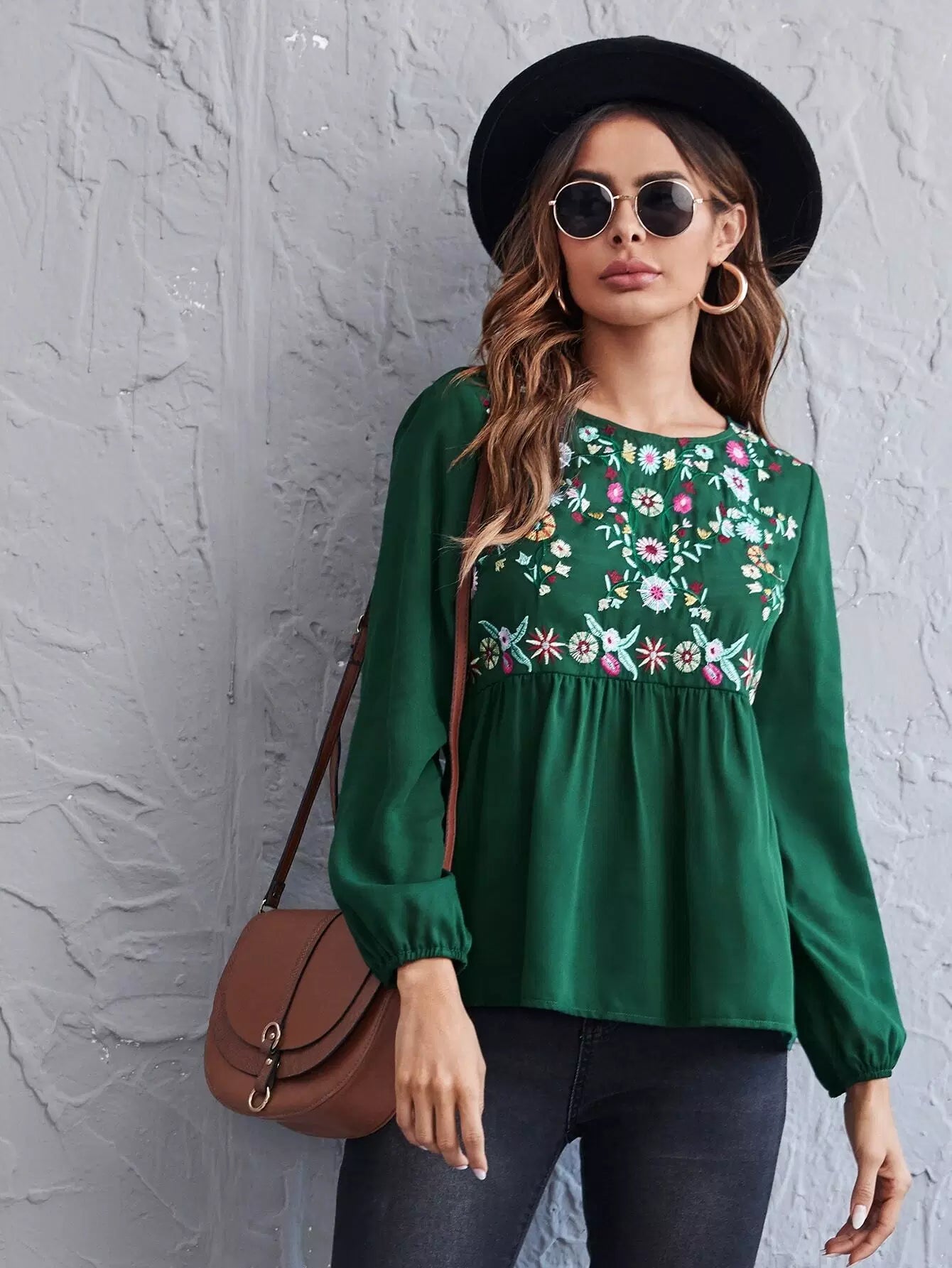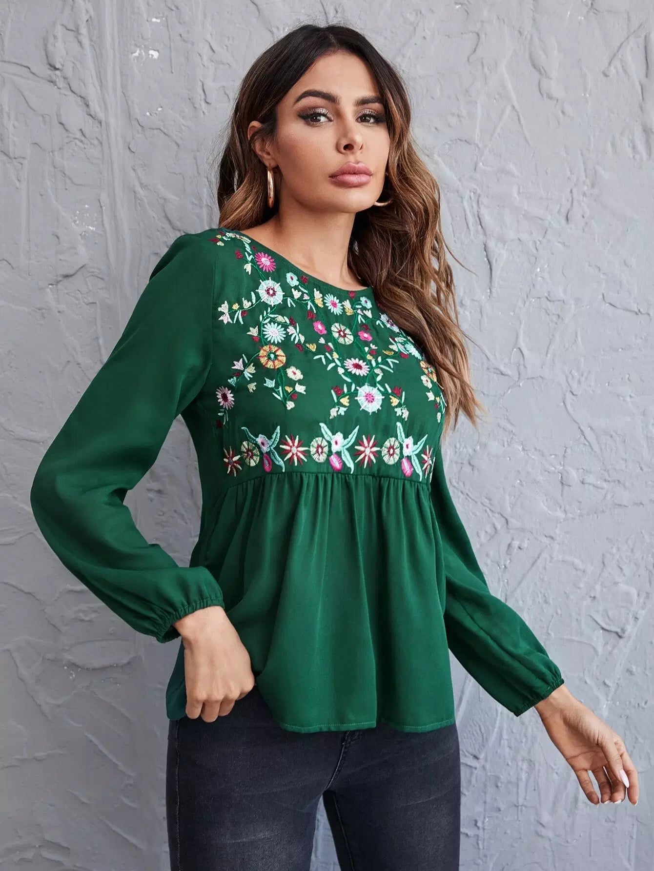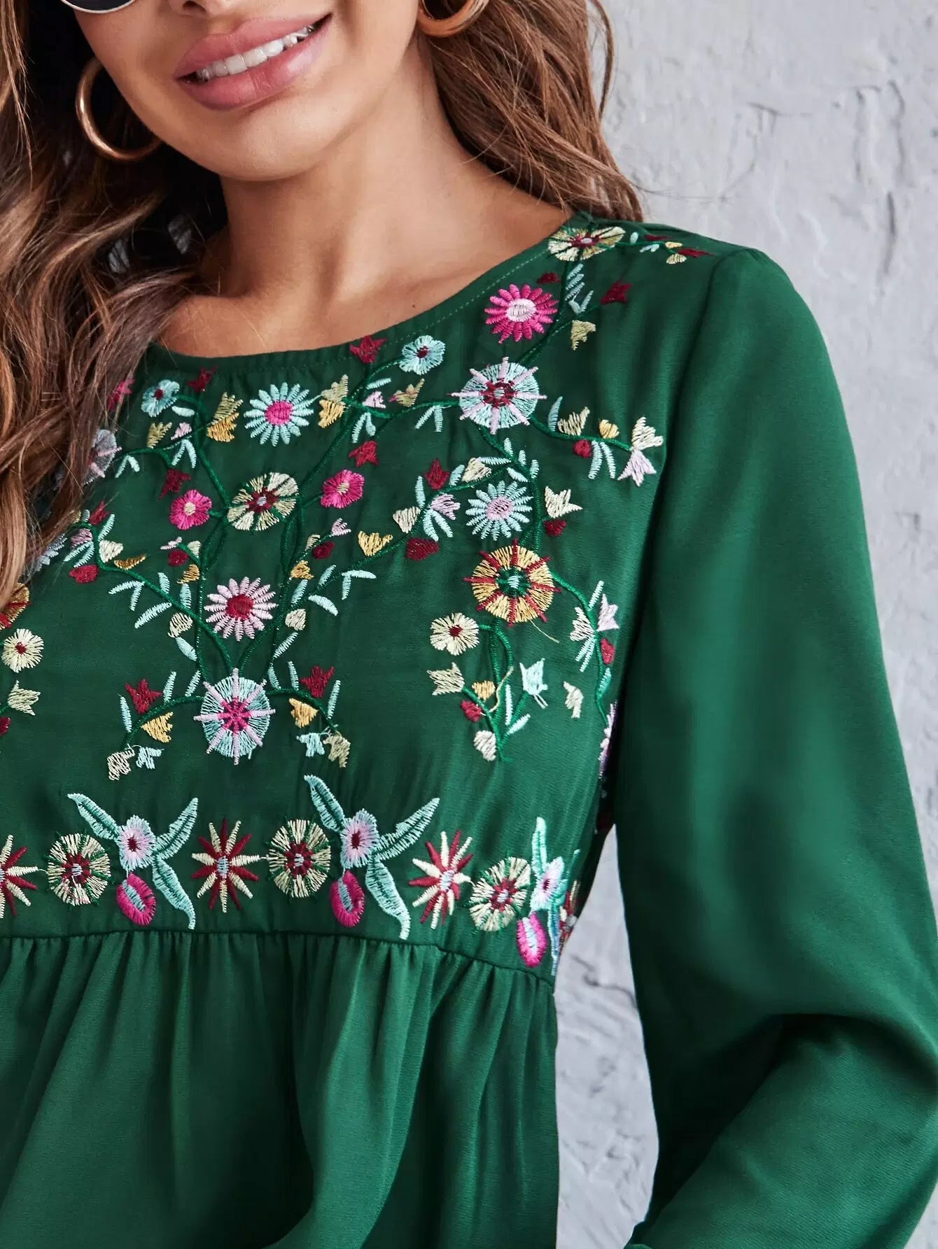 Floral Embroidery Peplum Blouse