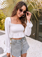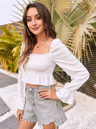 Flounce Sleeve Shirred Peplum Top