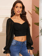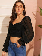 Flounce Sleeve Swiss Dot Ruched Chiffon Crop Top