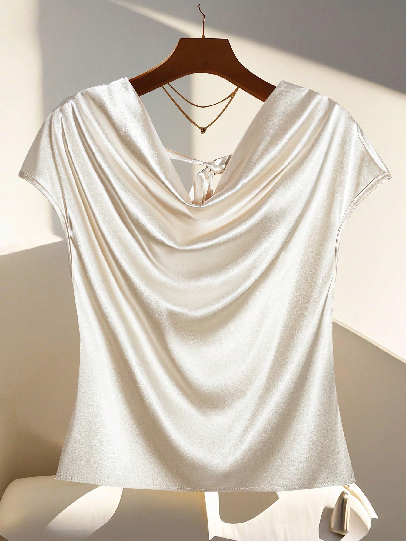 Franclia Women's Elegant Commuter & Date Wear Satin Tie-Neck Top