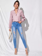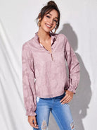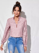Women - Frill Trim Lantern Sleeve Floral Applique Top