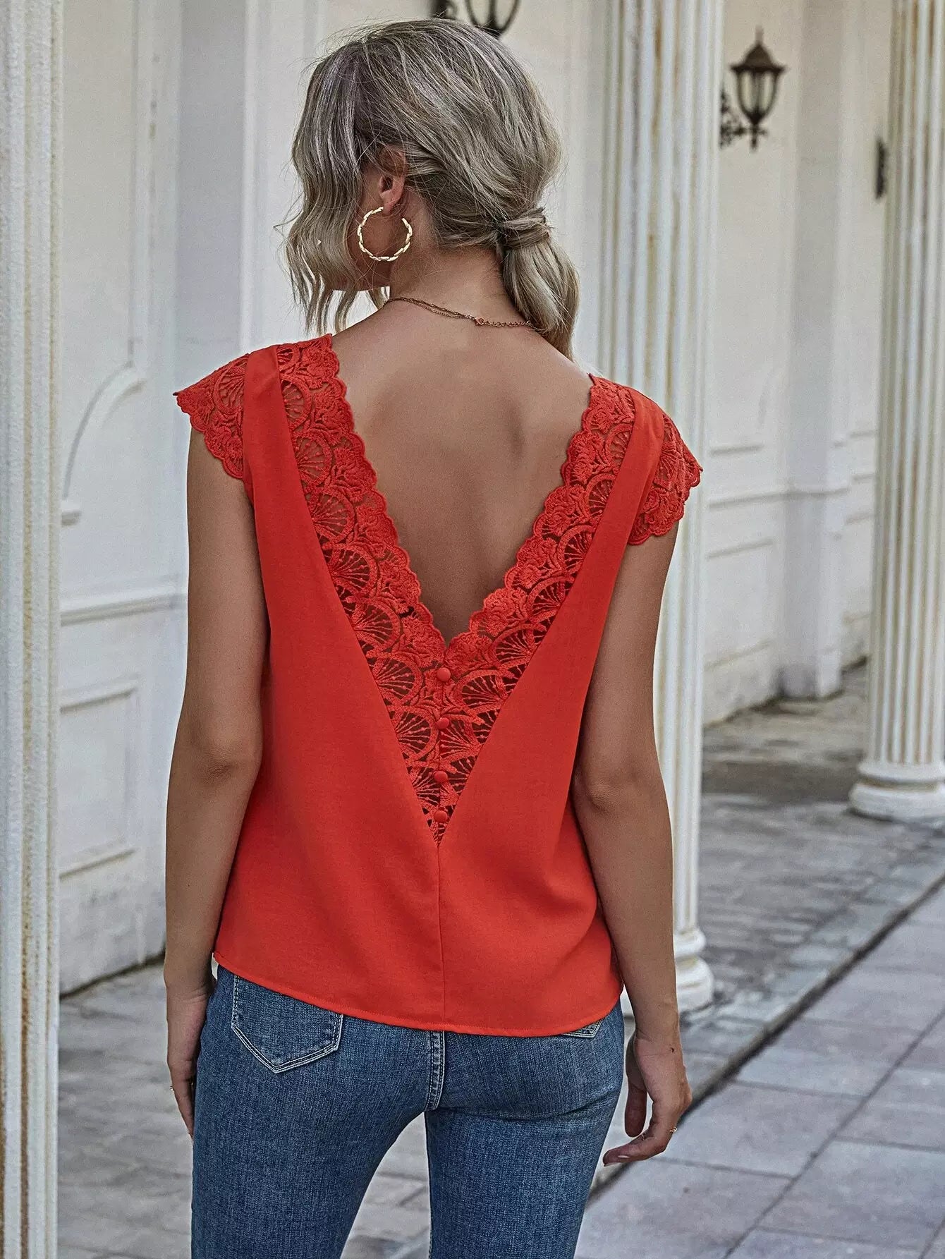 Guipure Lace Panel Button Up Blouse