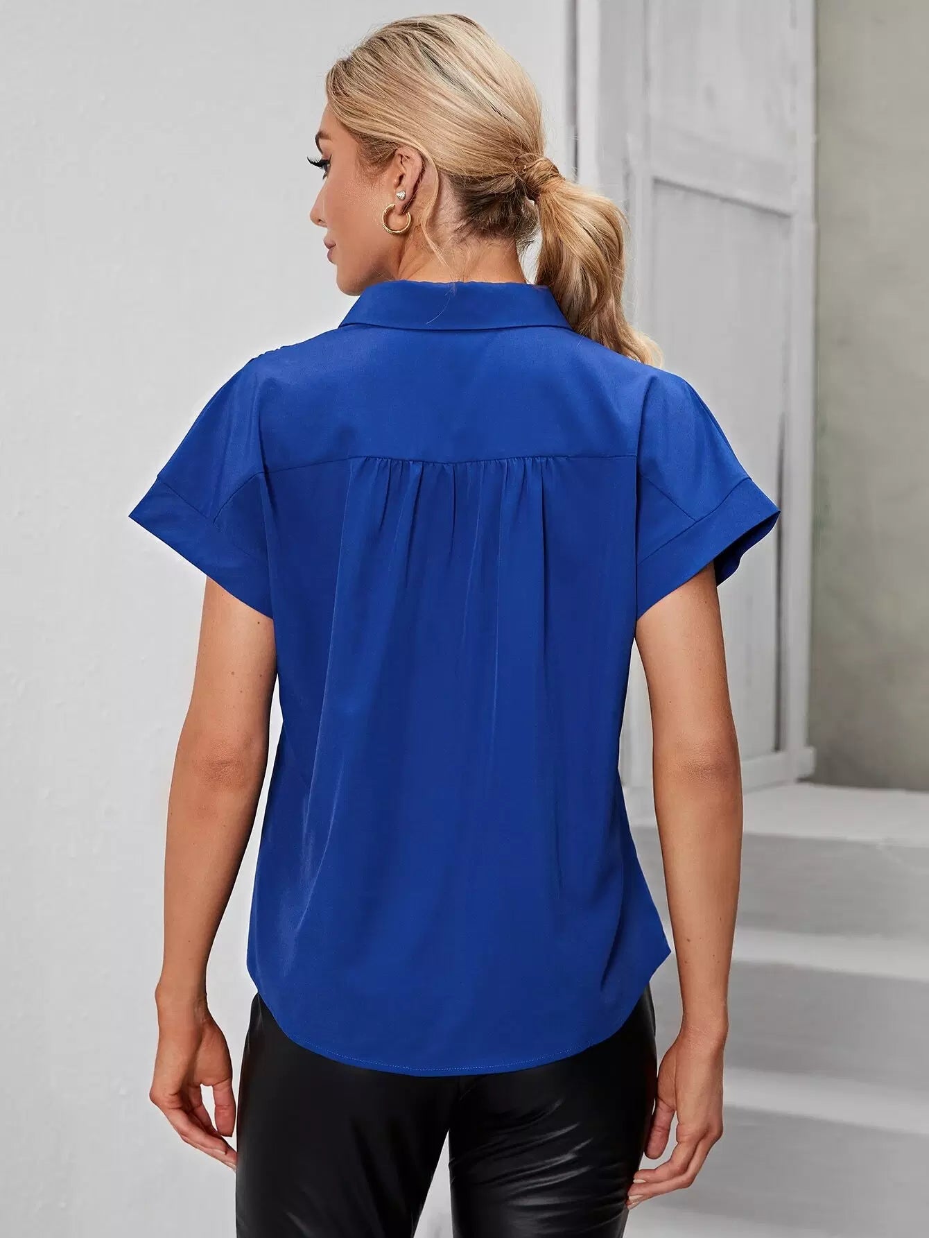 Half Button Batwing Sleeve Blouse