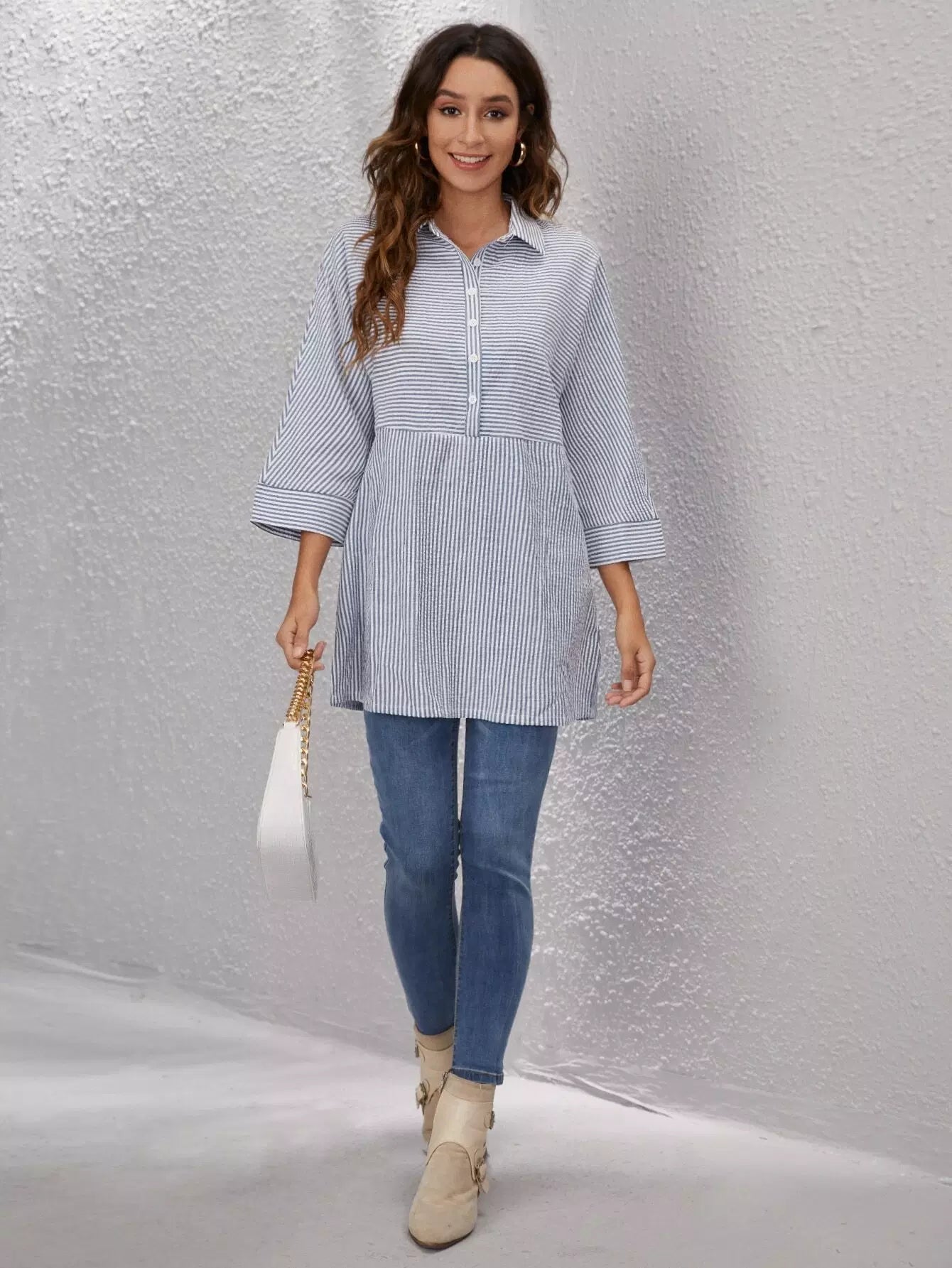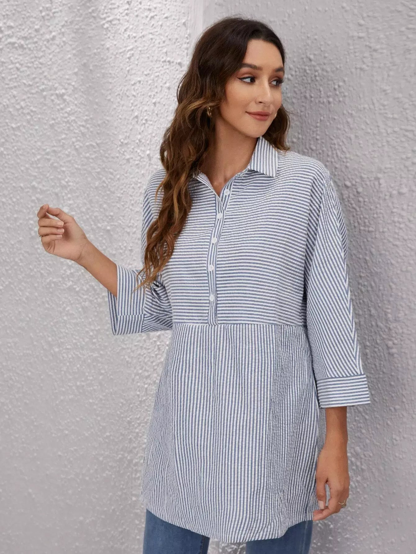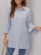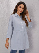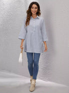 Half Button Striped Longline Blouse