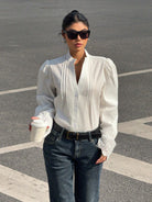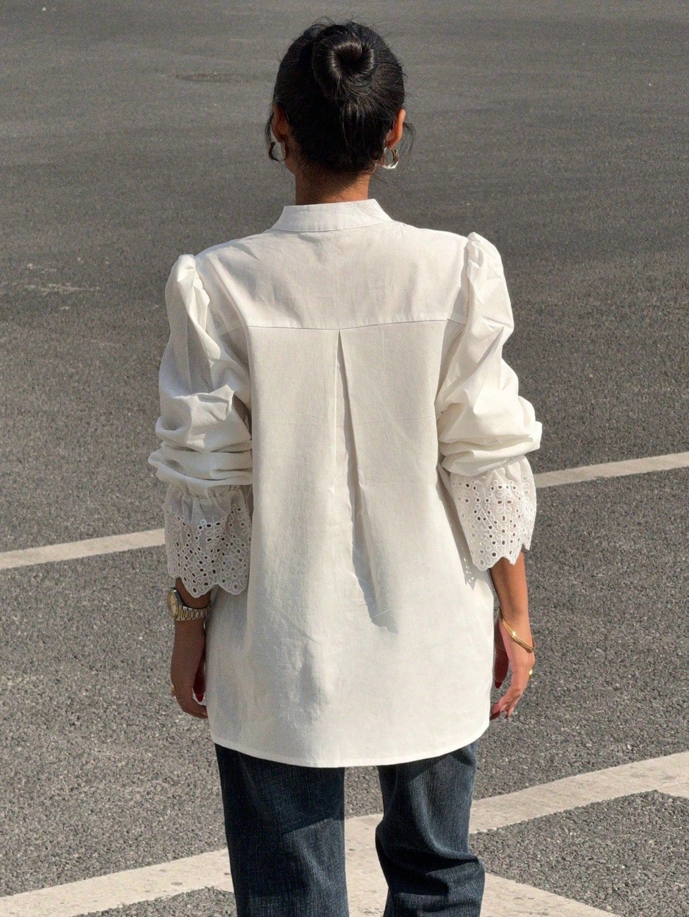 INAWLY Solva Women's Plain Front Button Long Sleeve Lace Trim Casual Blouse