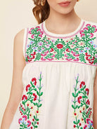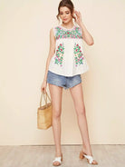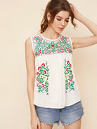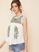 Women - Keyhole Back Floral Embroidered Blouse