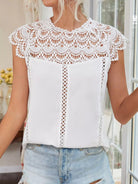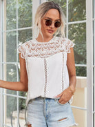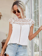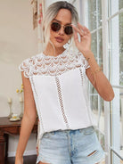 Women - Keyhole Back Hollow Out Crochet Blouse