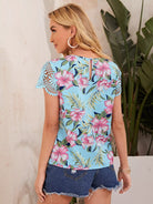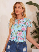 Keyhole Neck Guipure Lace Sleeve Floral Top