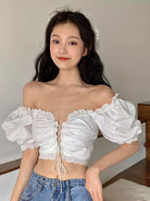 Lace Trim Lace Up Crop Milkmaid Top