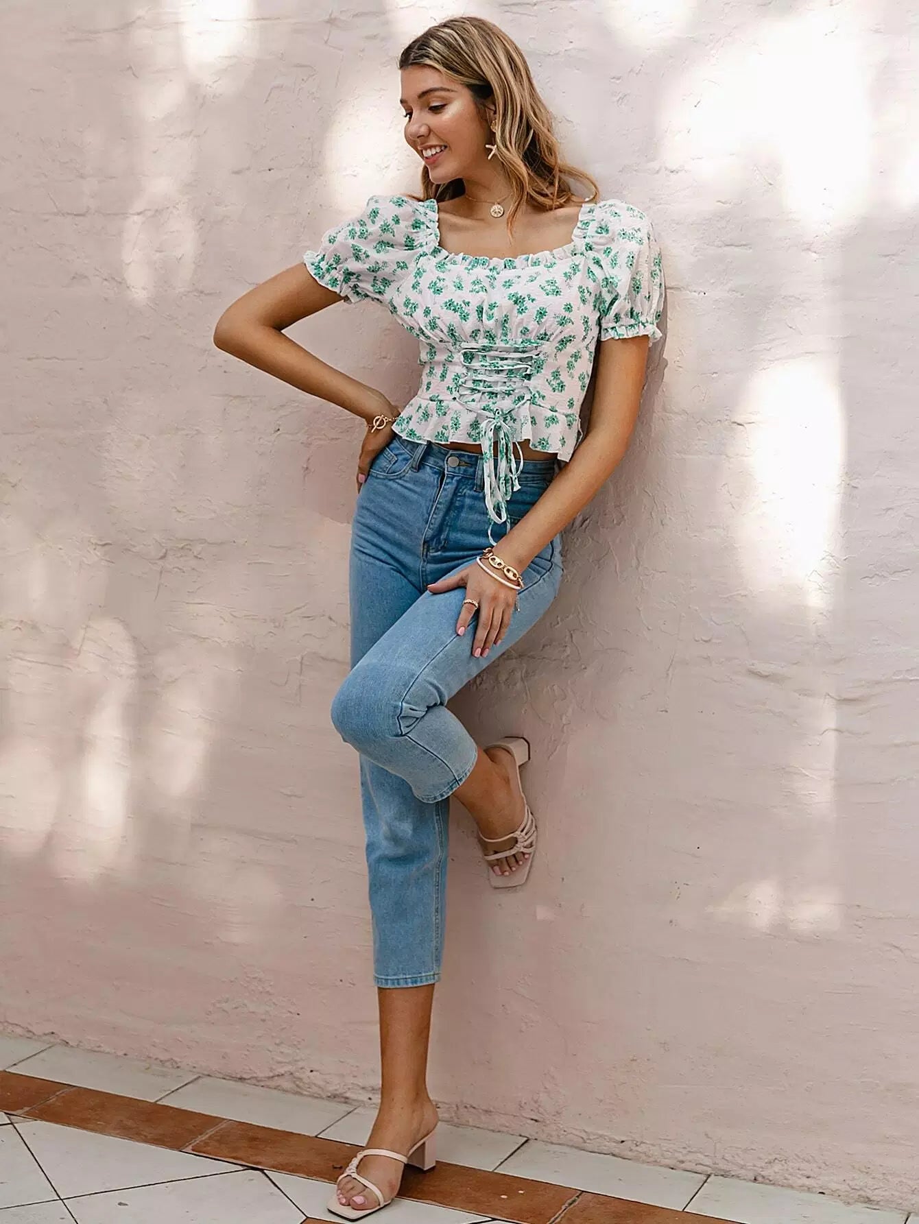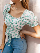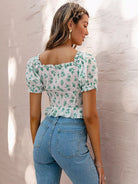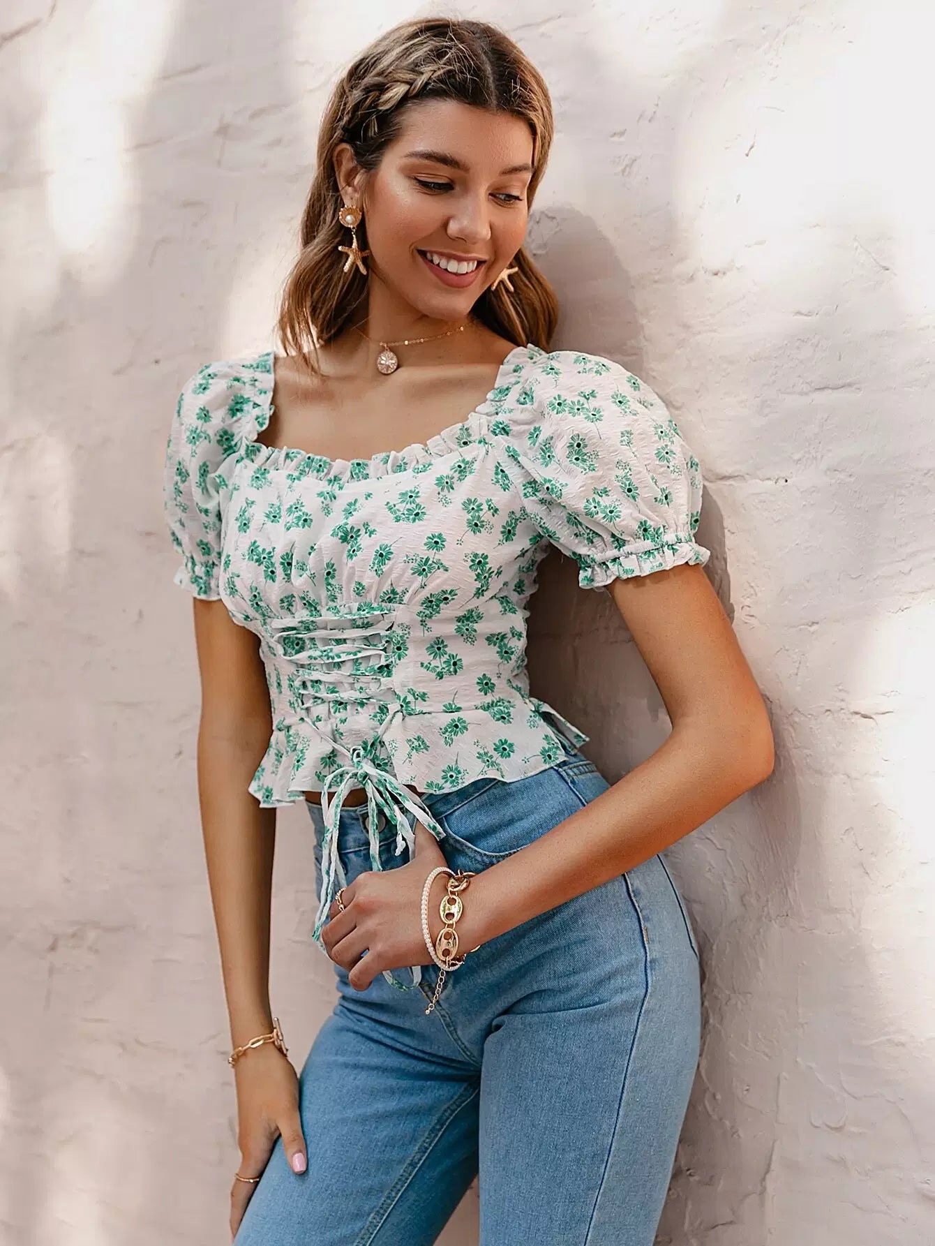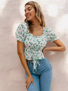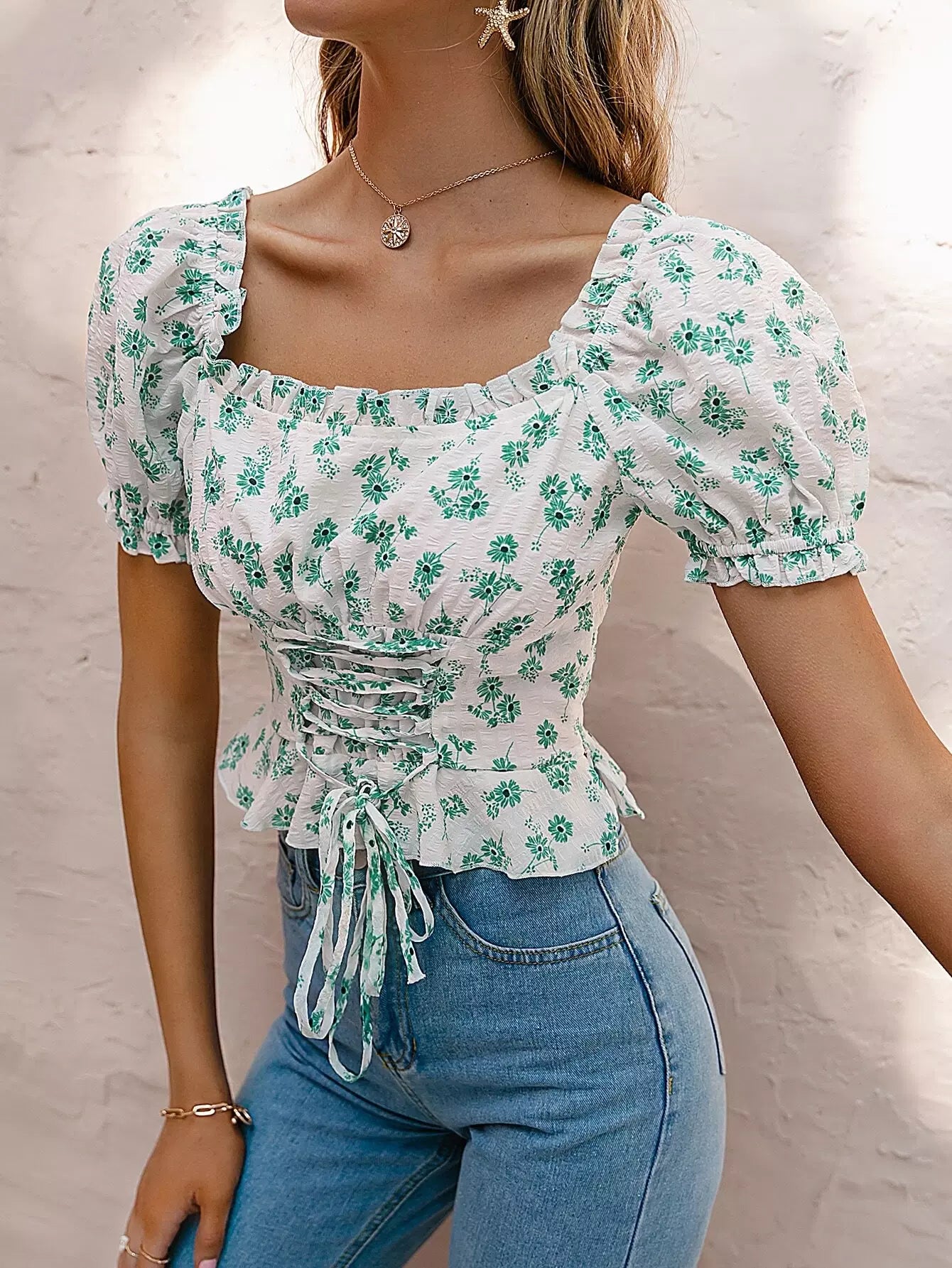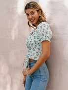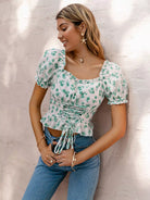 Lace Up Front Ditsy Floral Top