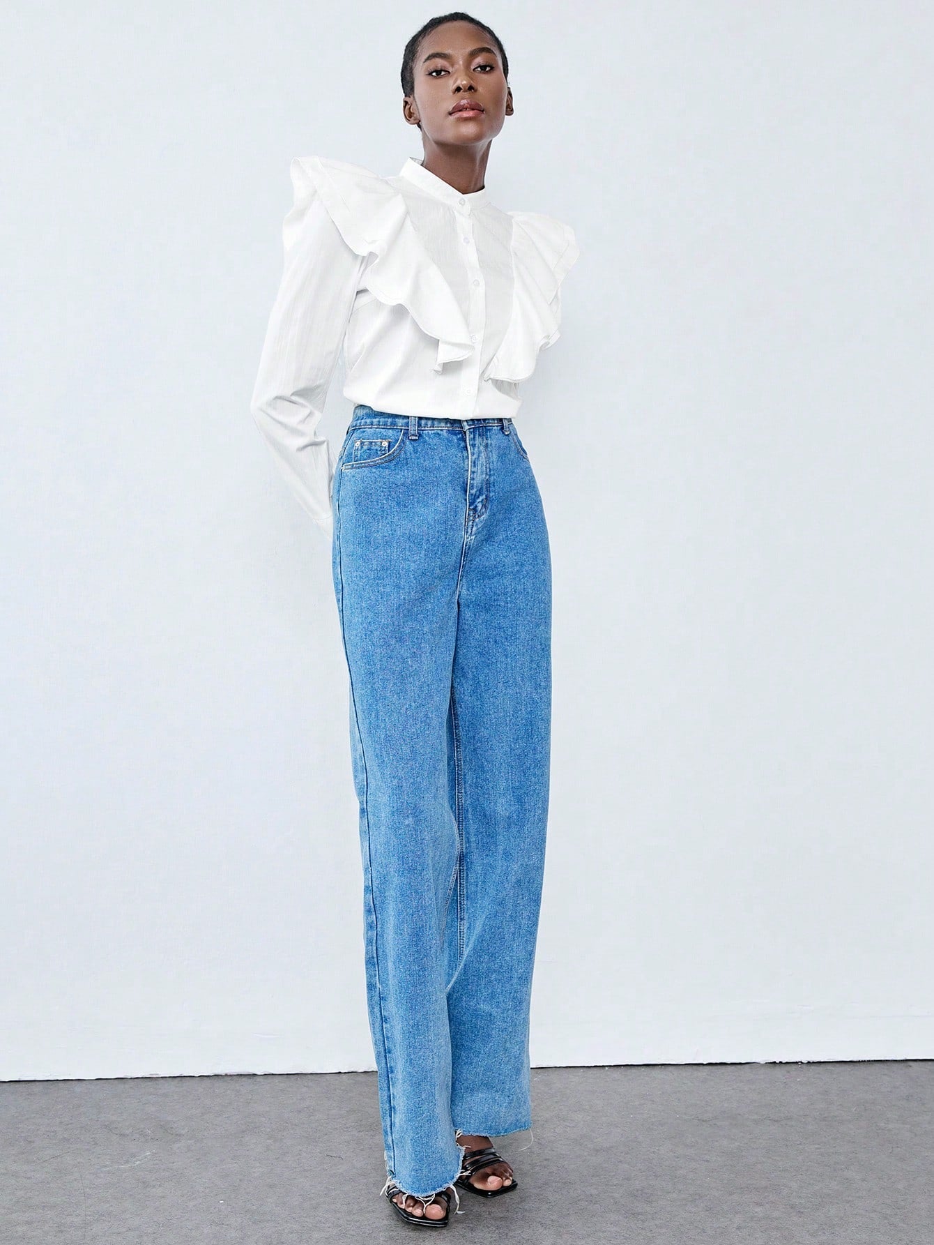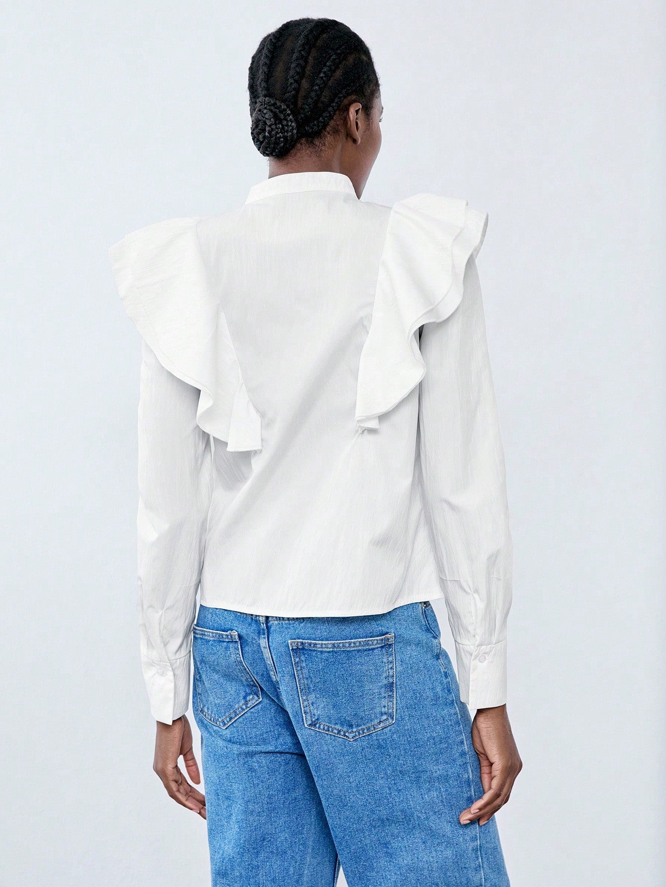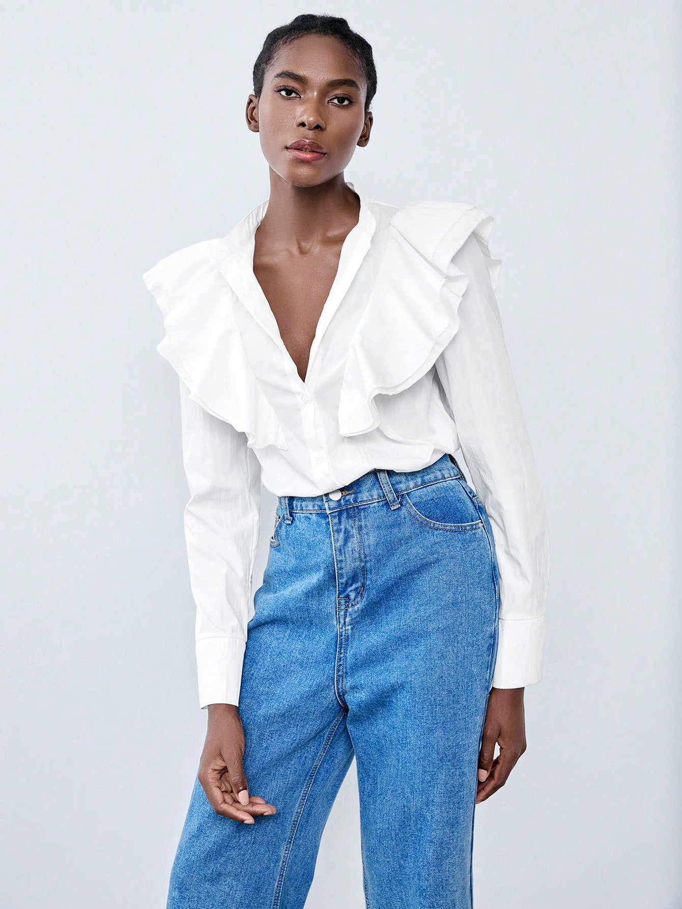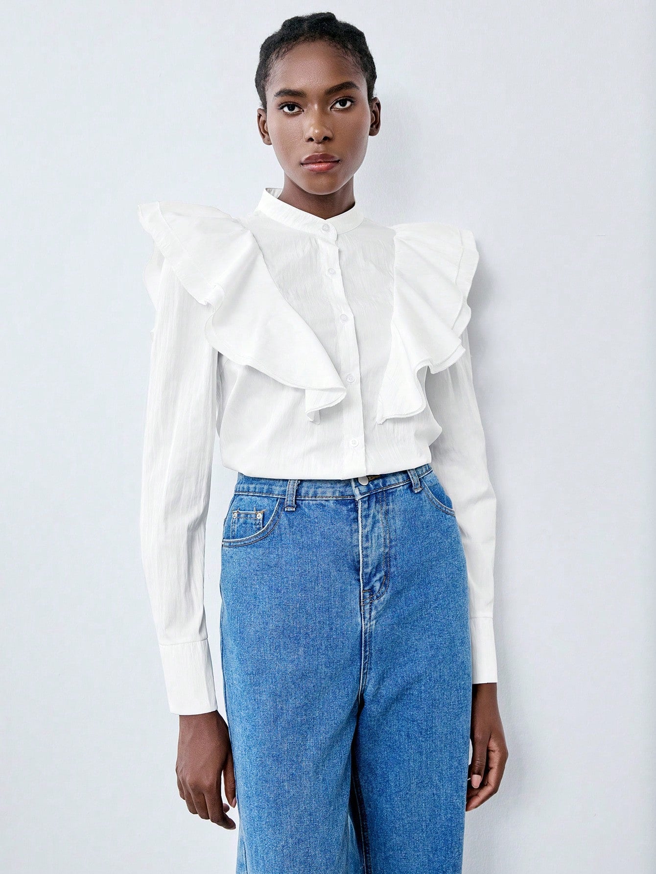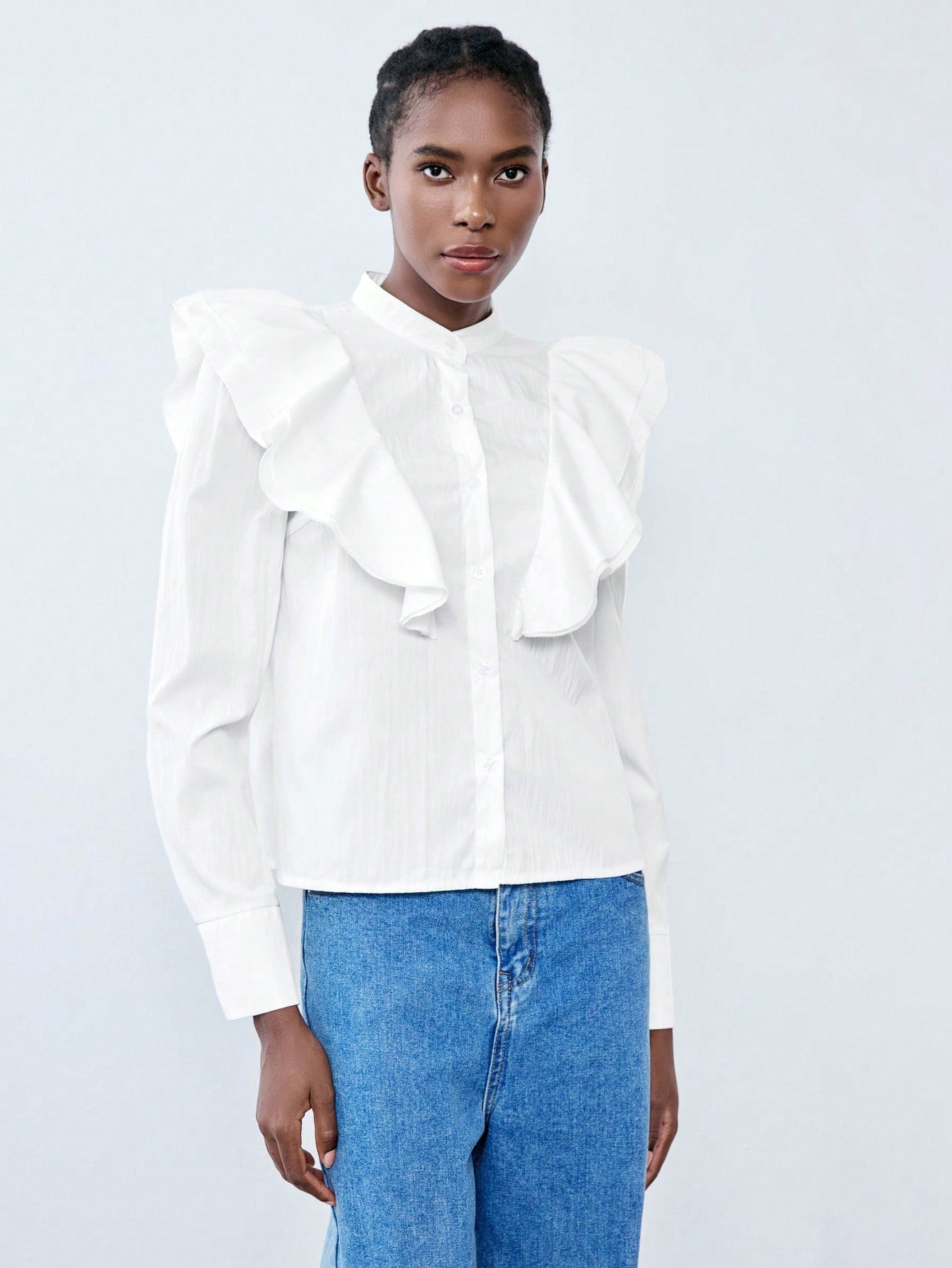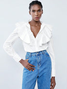 Lumivelle New Arrival Autumn Women's Casual Loose Ruffled Layered Decor Shirt, French Style Elegant Long