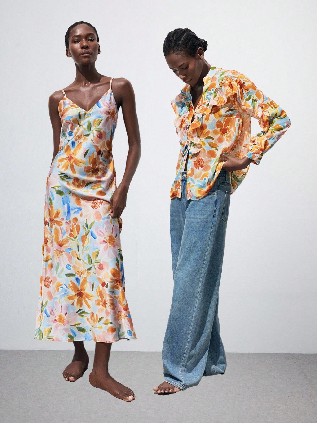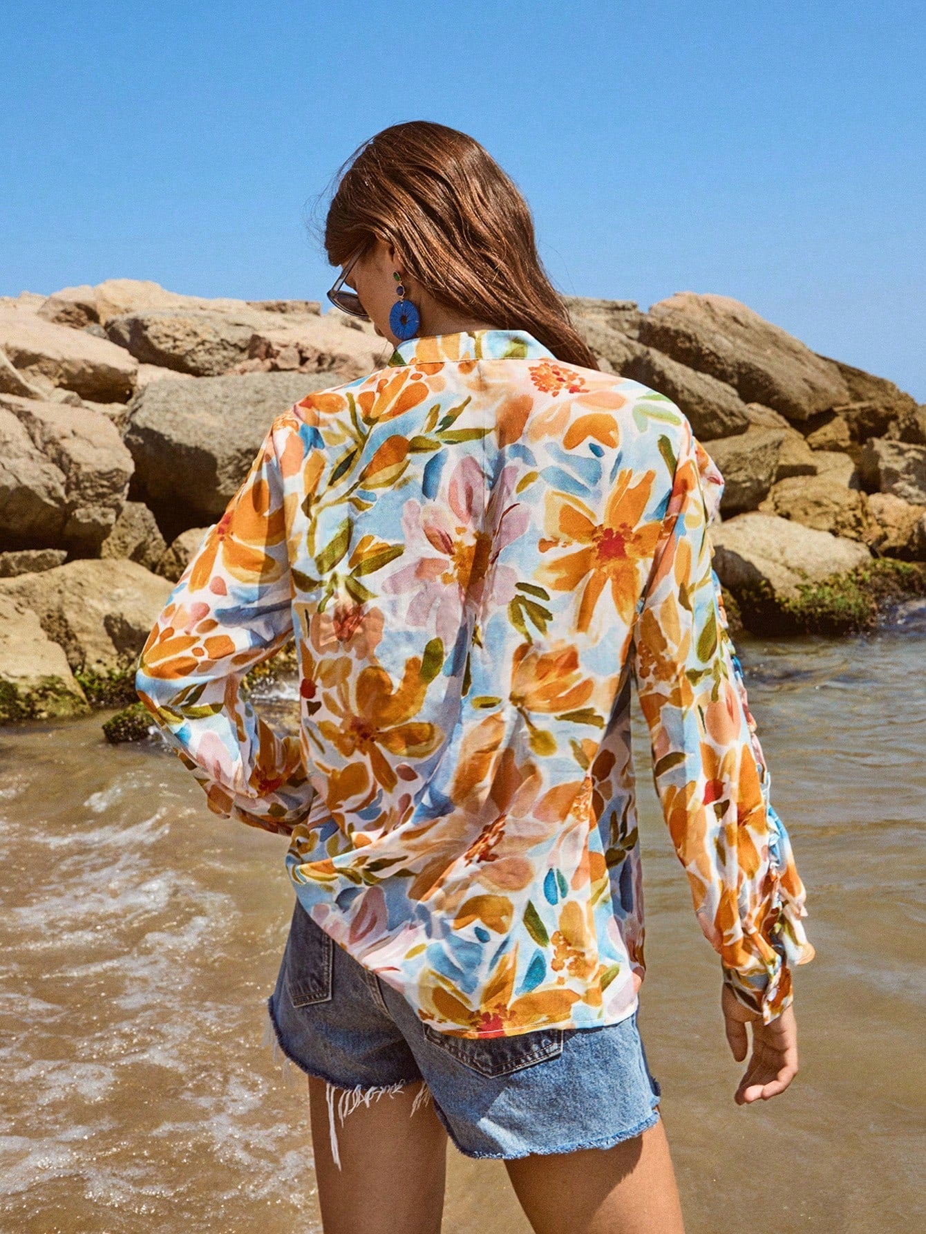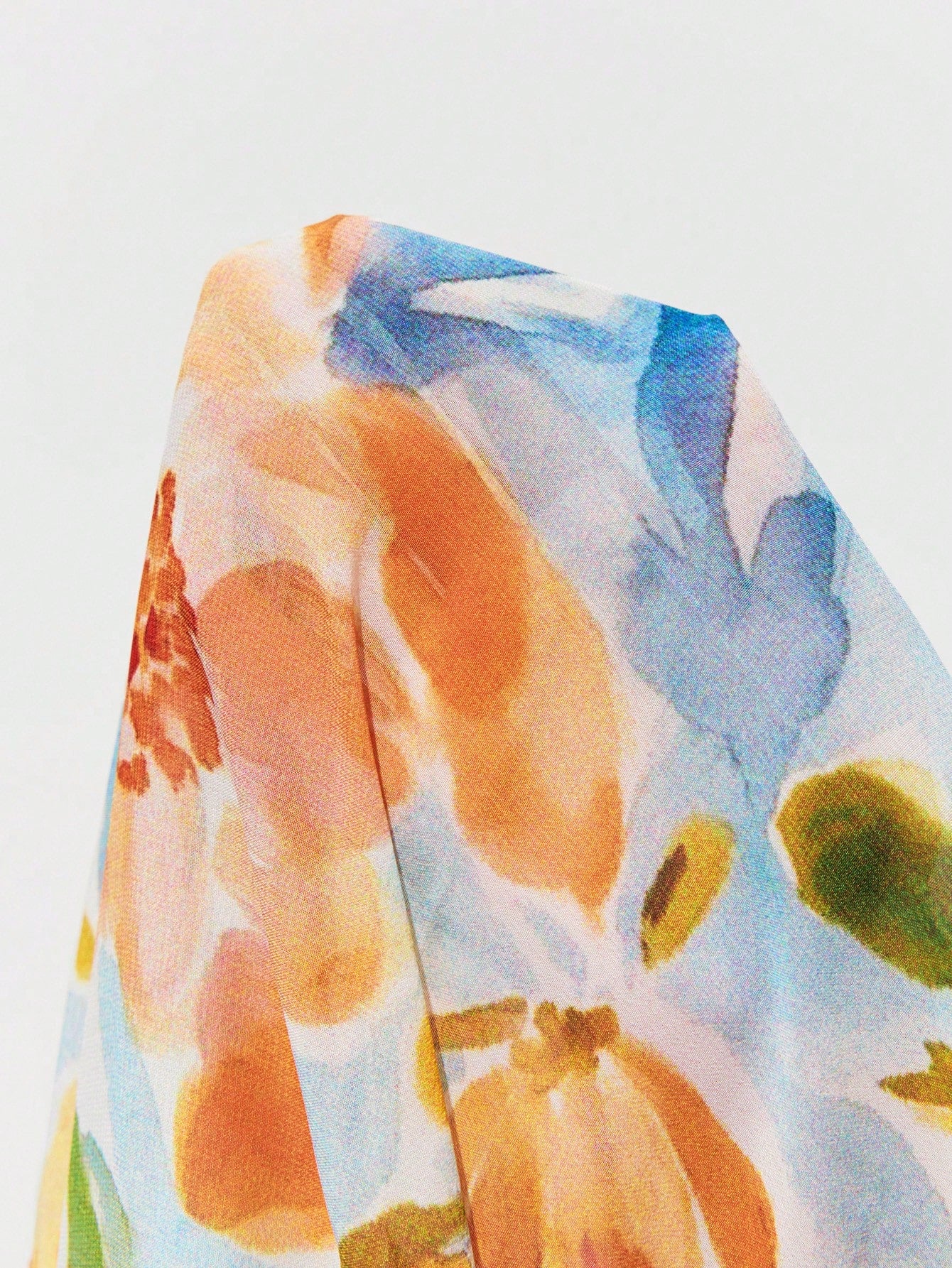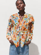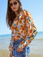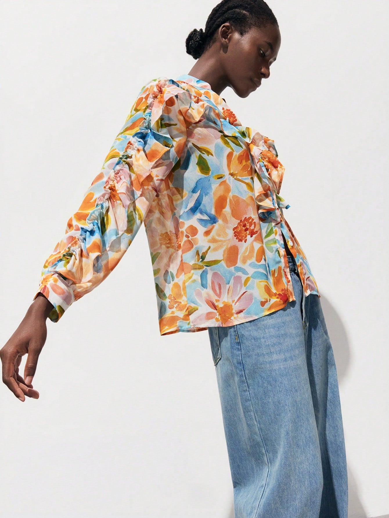Maija Women's Elegant Floral All-Over Print Ruffle Hem Blouse Cute Summer Top Beach Outfits For Woman
