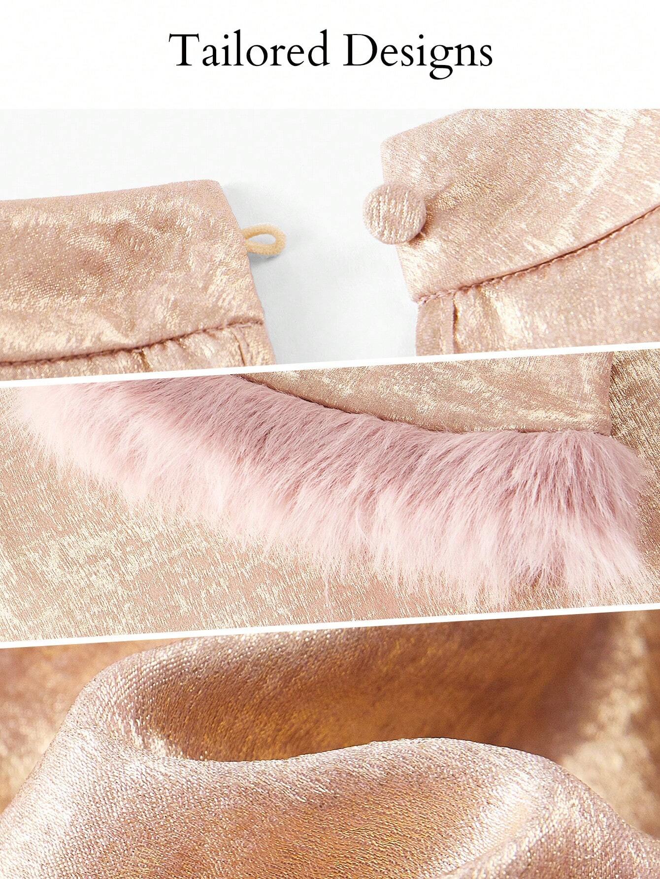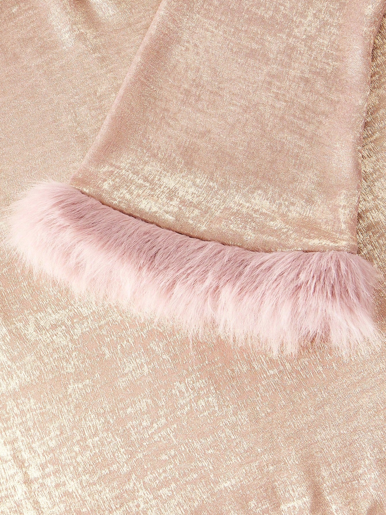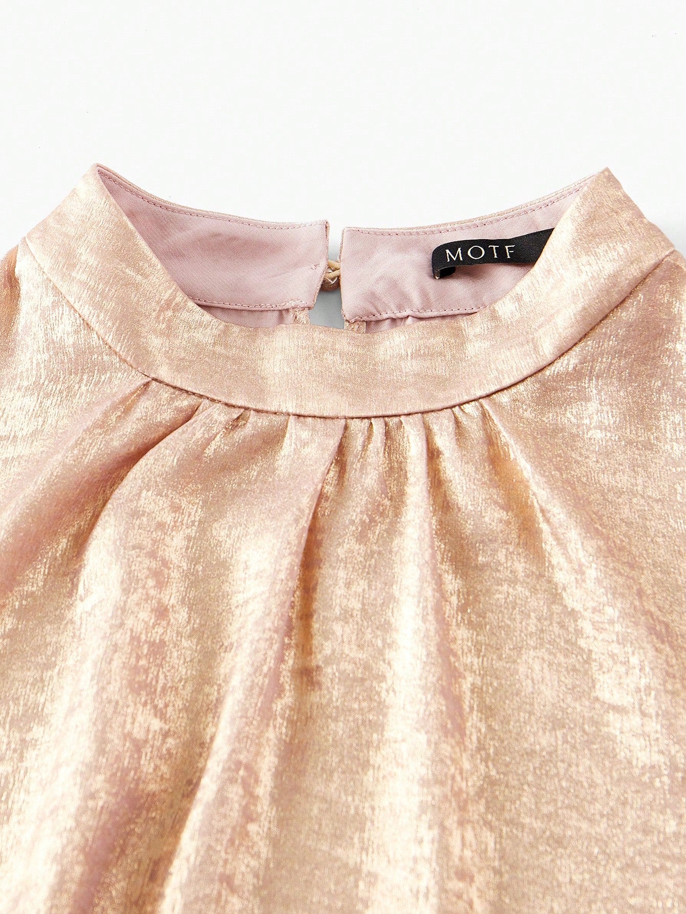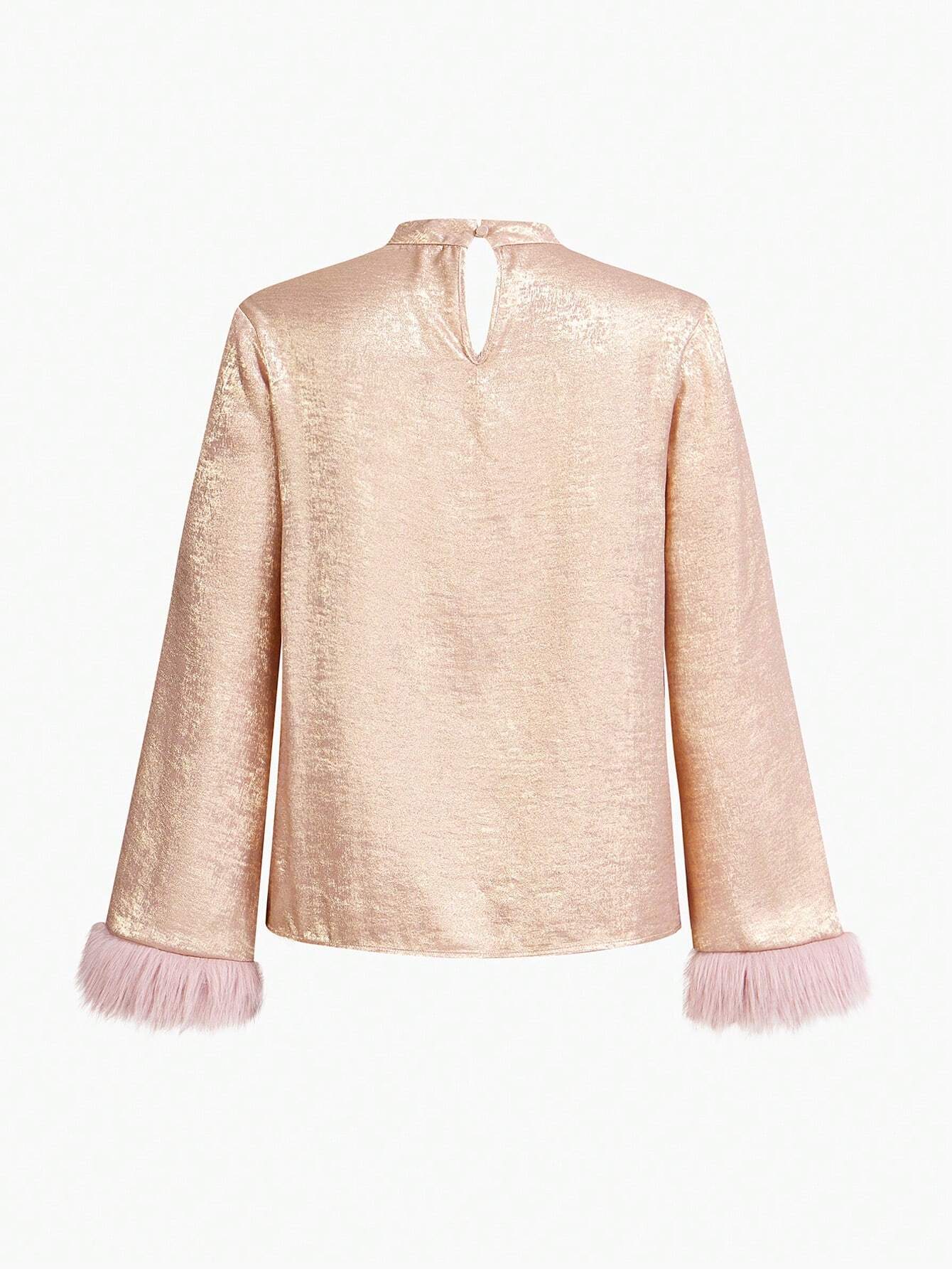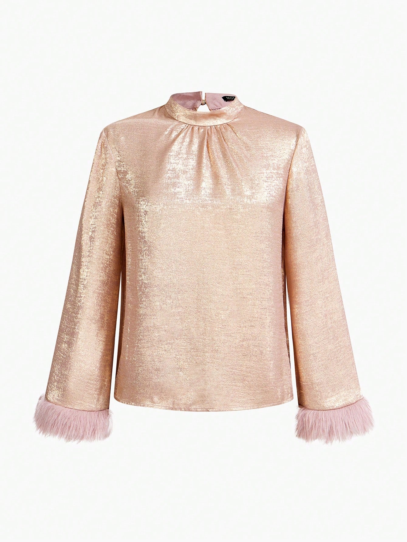 MOTF PREMIUM MOCK NECK CONTRAST FUZZY CUFF FOLD PLEATED BLOUSE