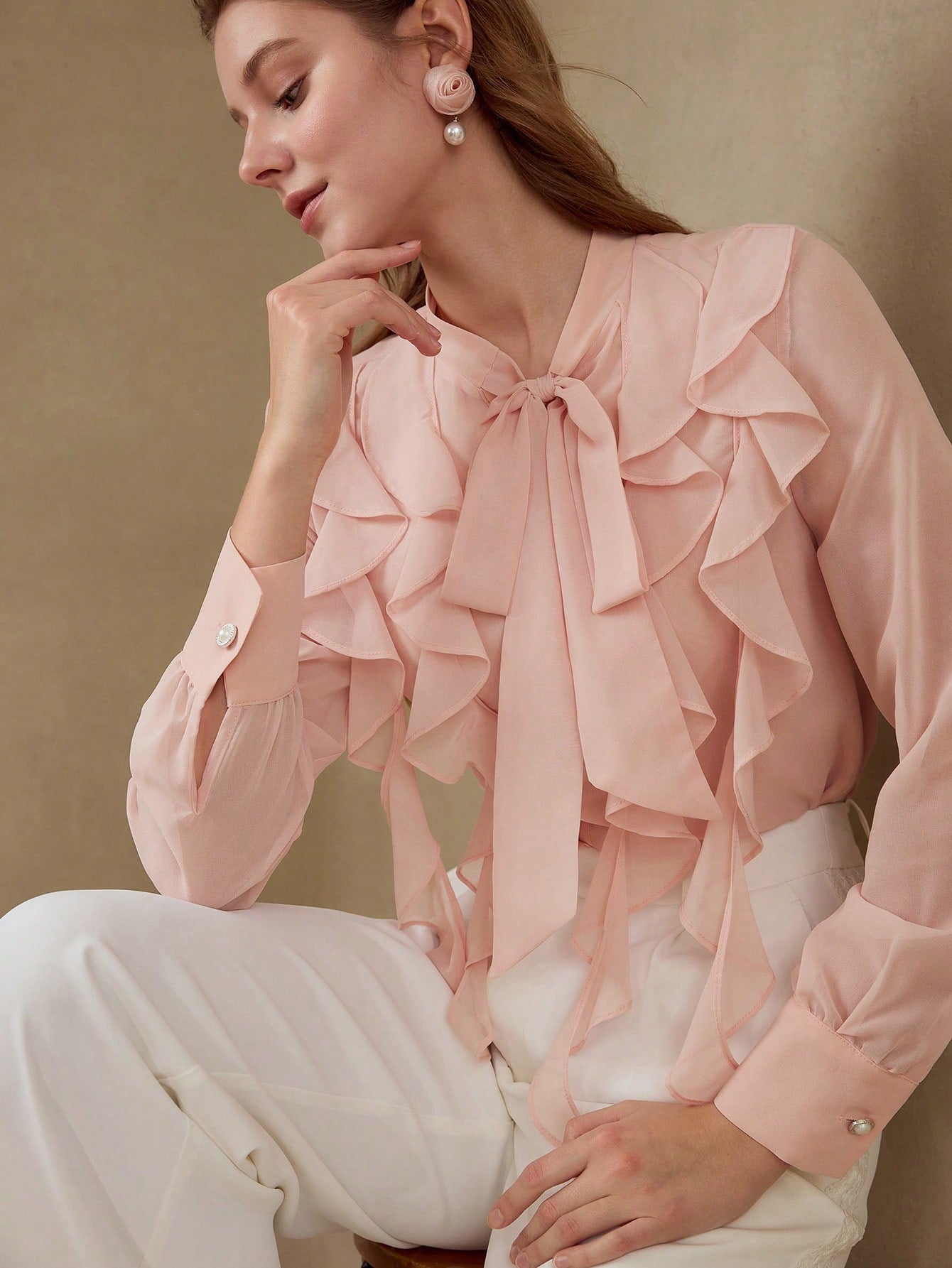 MOTF RUFFLE TRIM SHEER BLOUSE