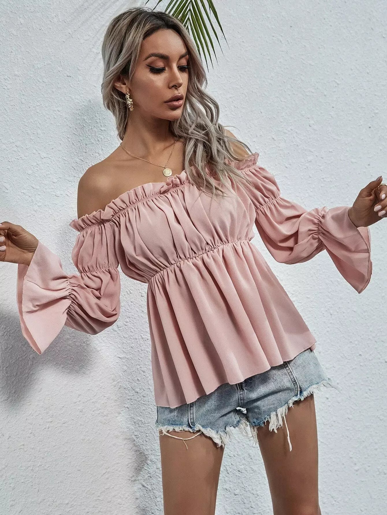 Off The Shoulder Flounce Sleeve Peplum Blouse