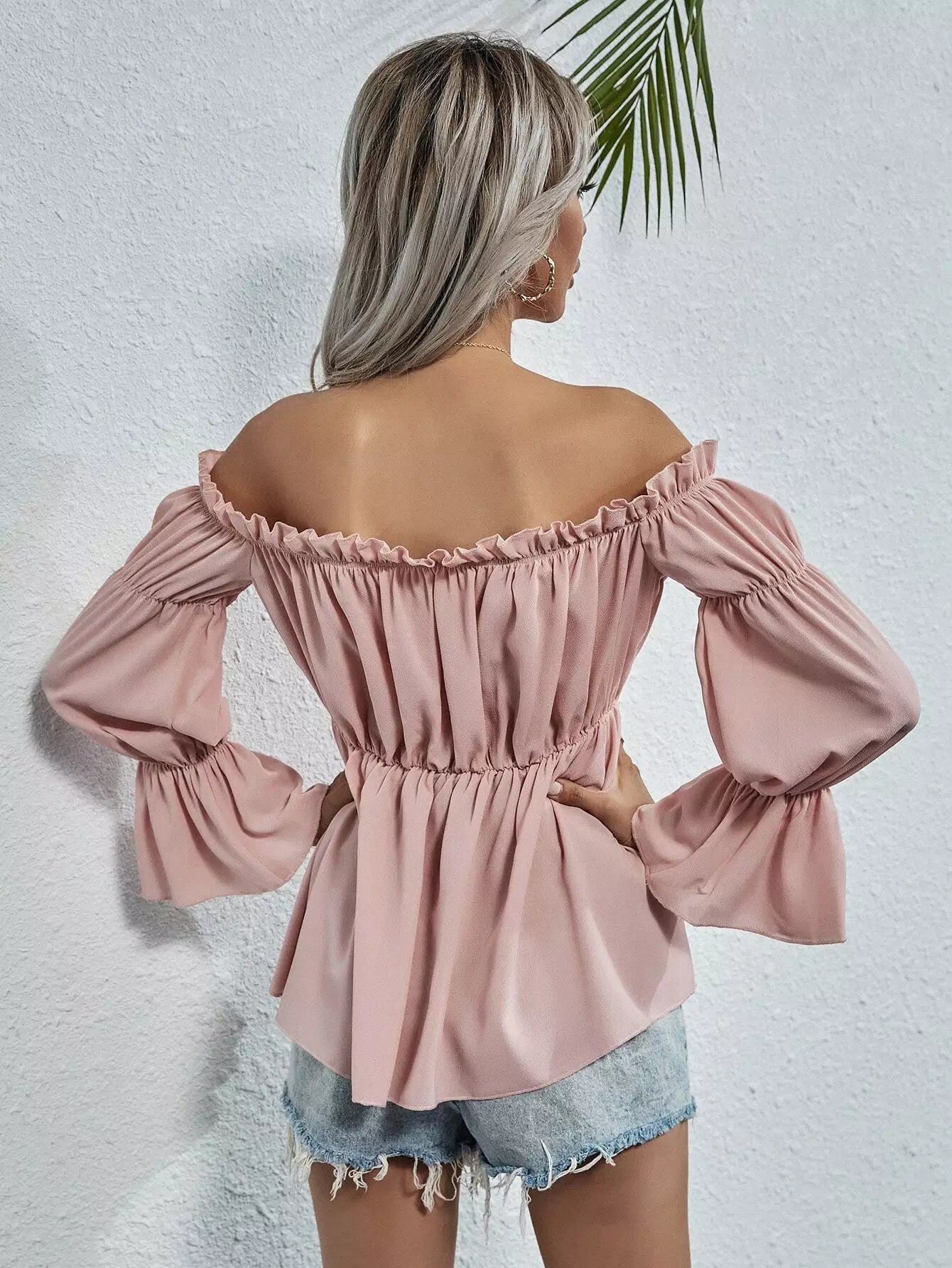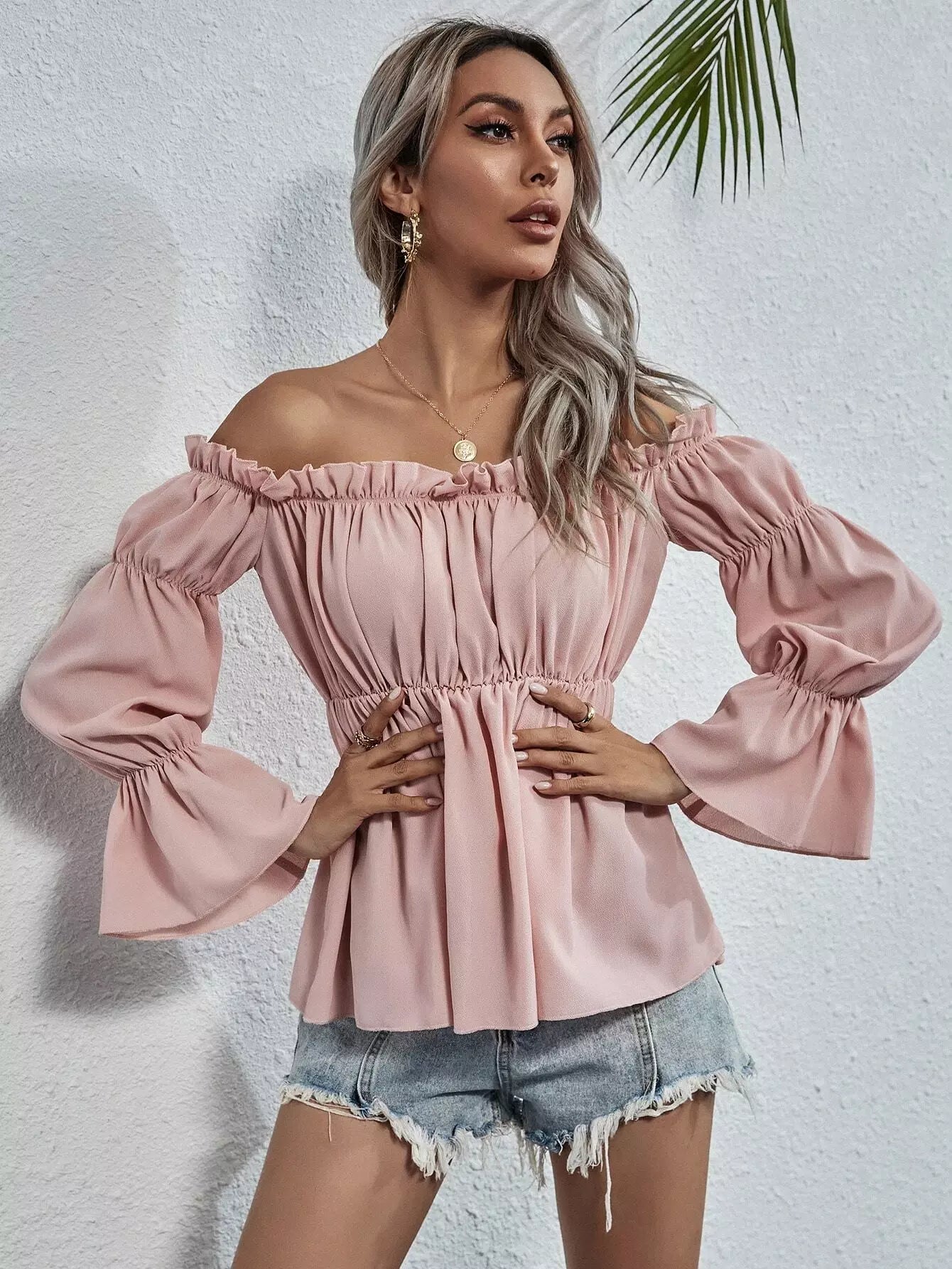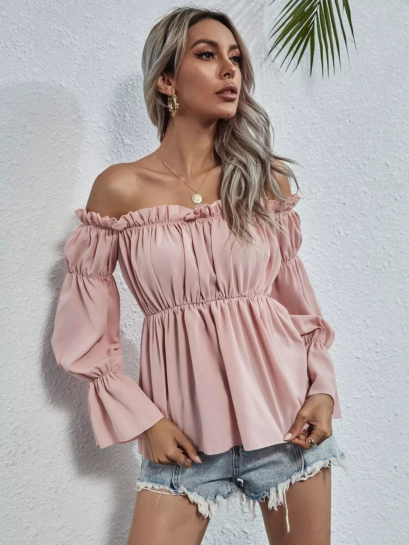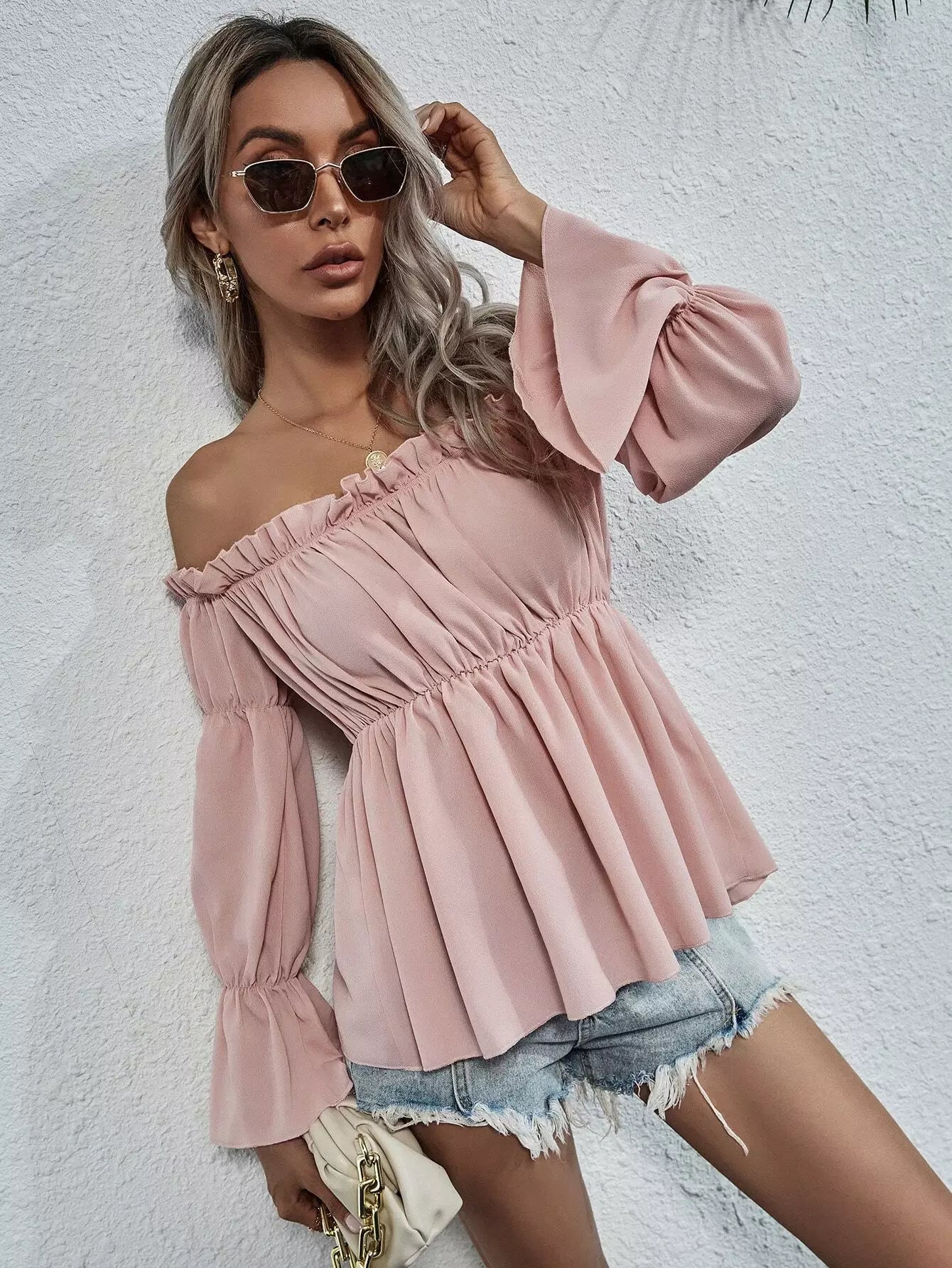 Women - Off The Shoulder Flounce Sleeve Peplum Blouse
