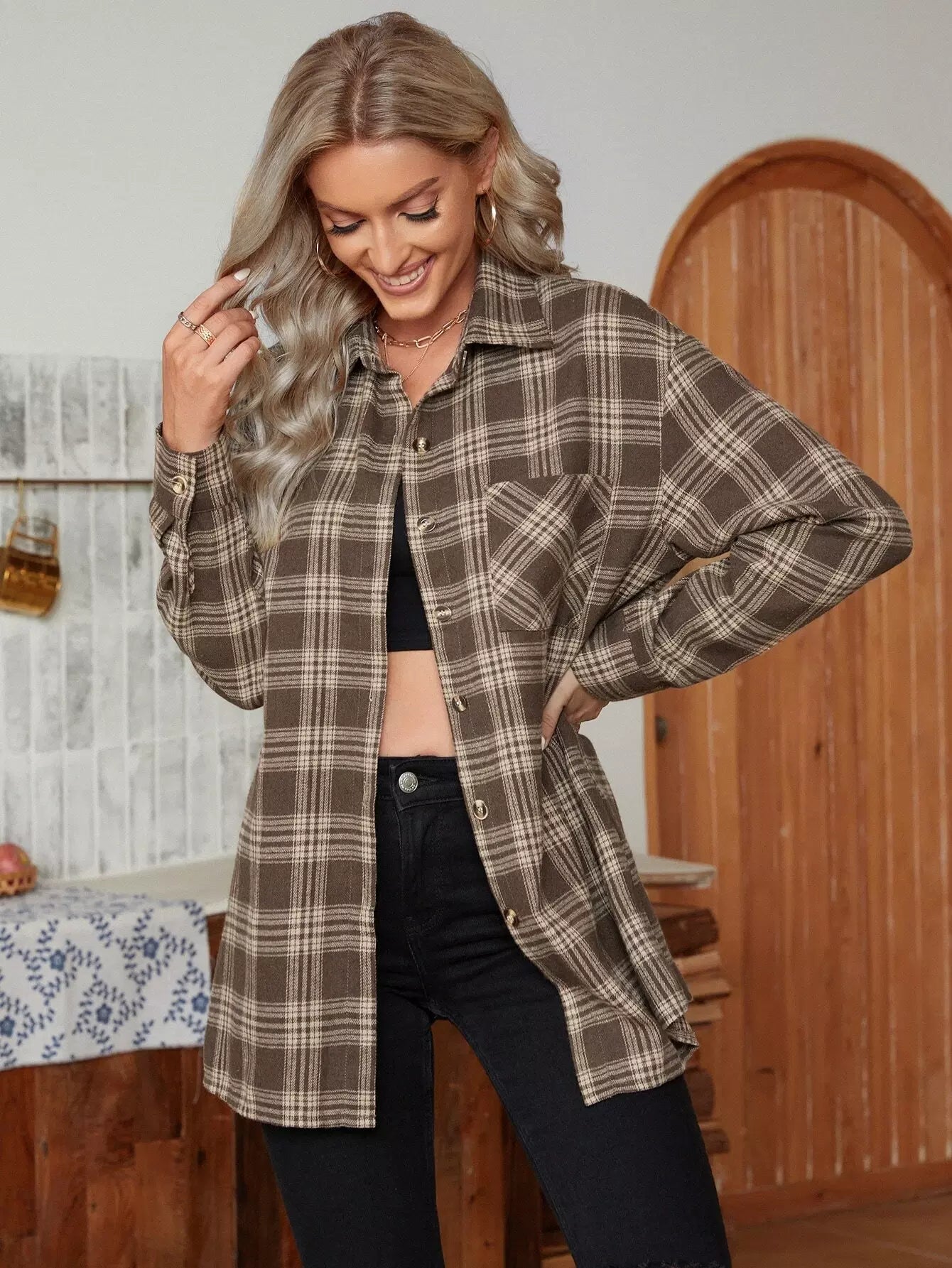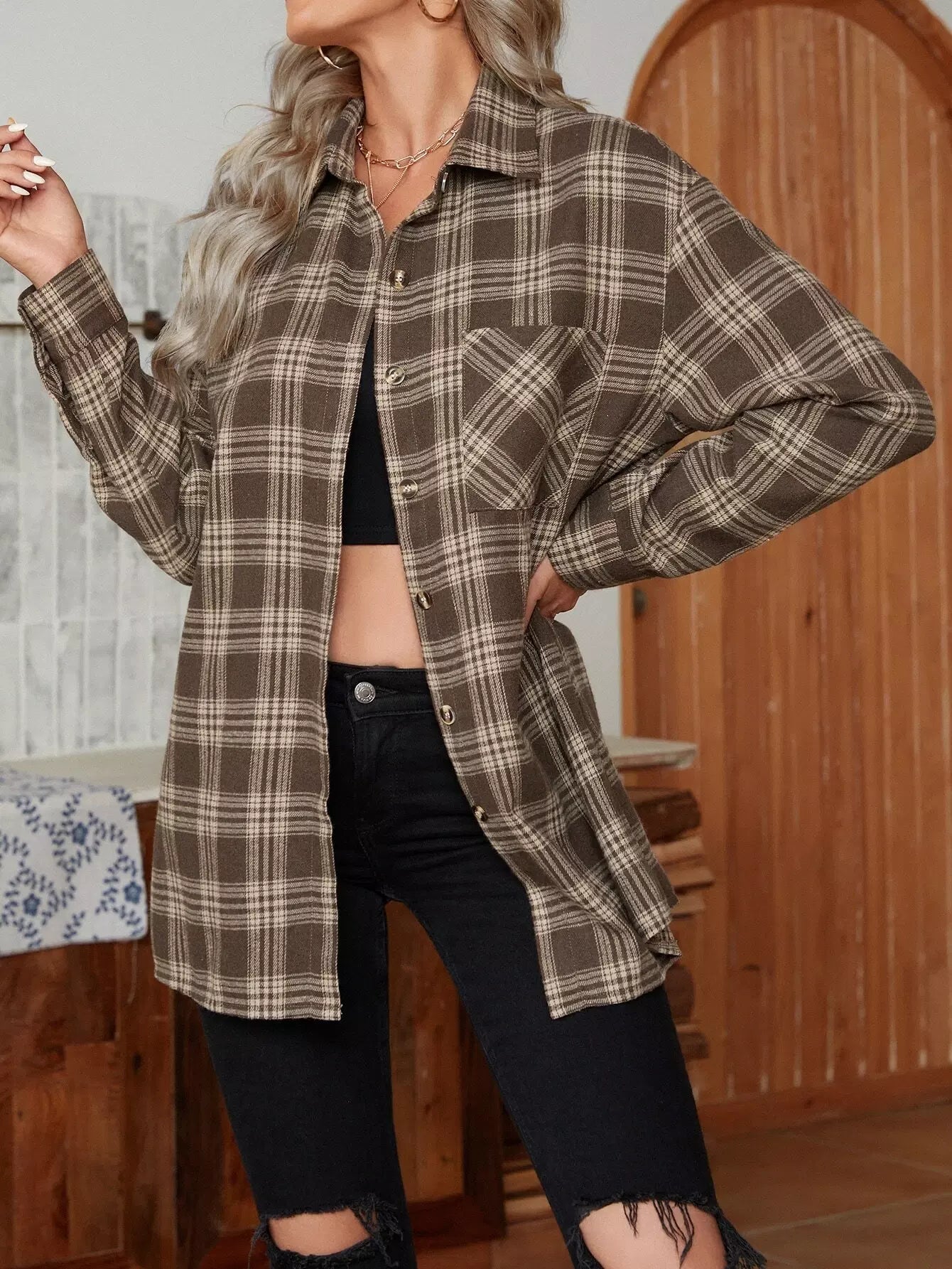 Plaid Print One Pocket Shirt