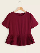 Pleated Ruffle Hem Smock Blouse