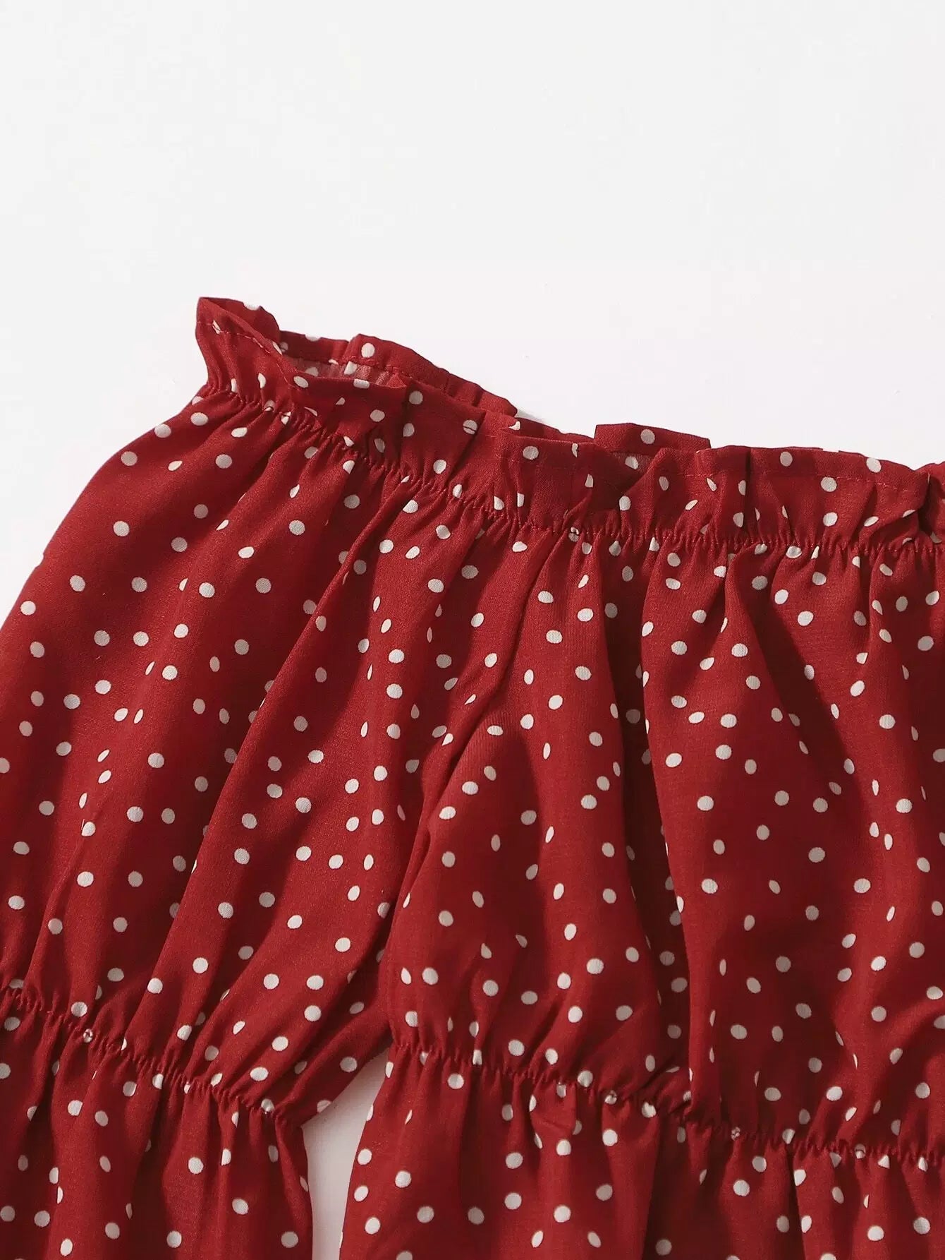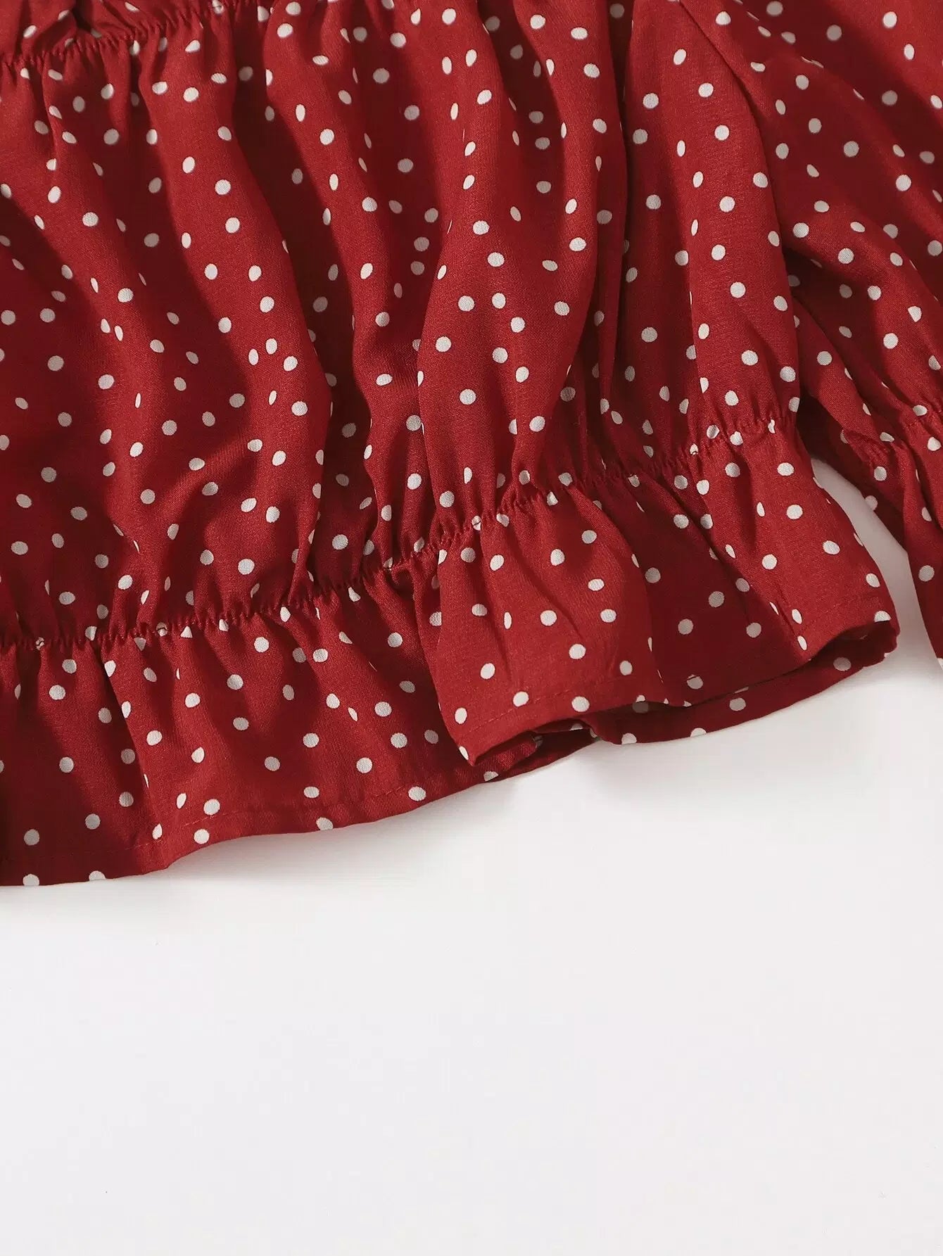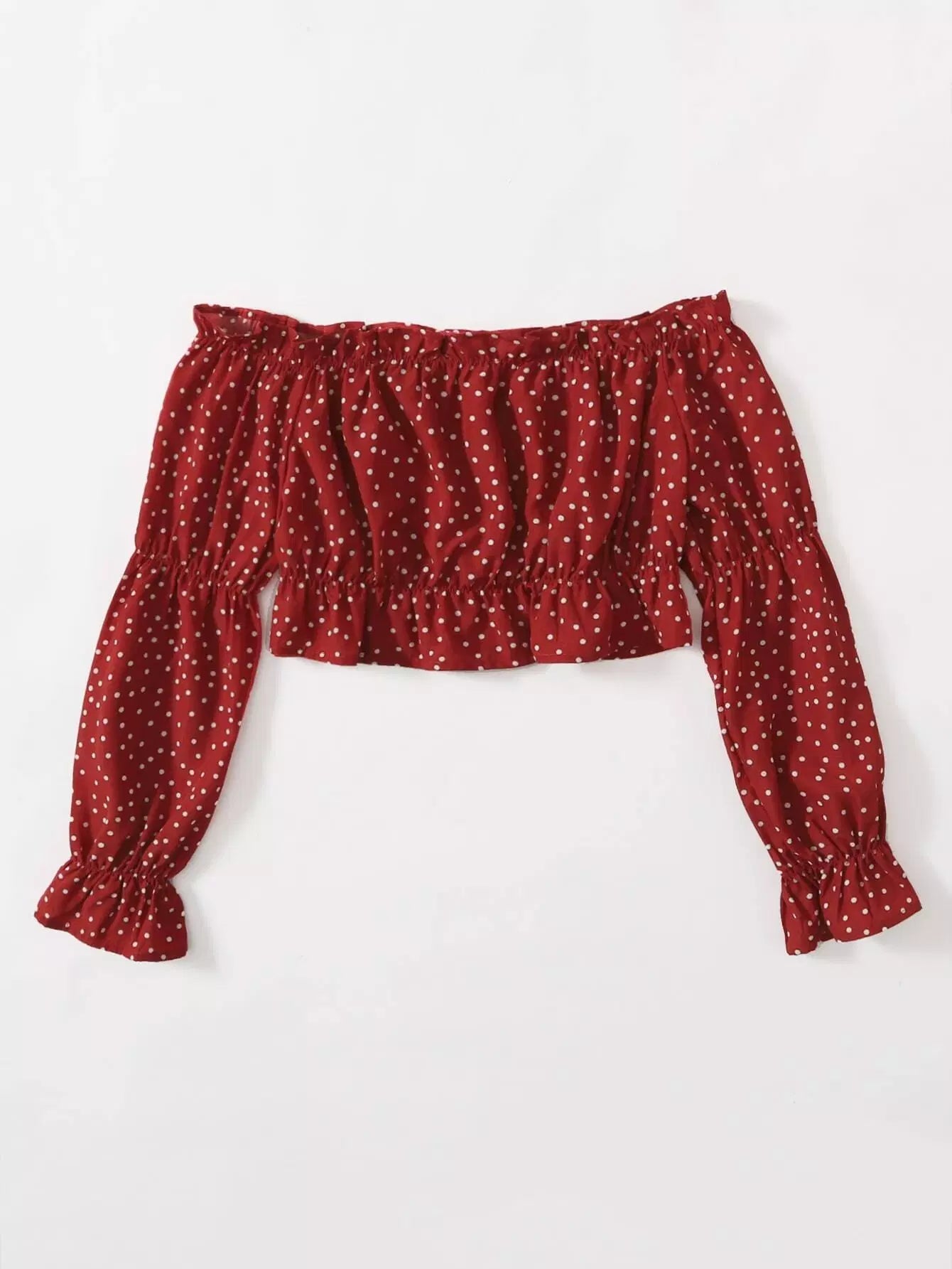 Polka Dot Ruffle Hem Crop Bardot Blouse