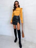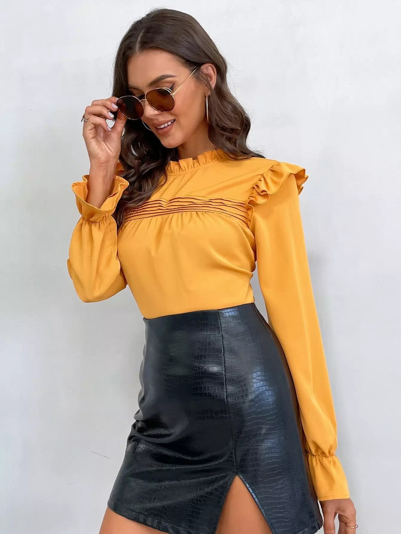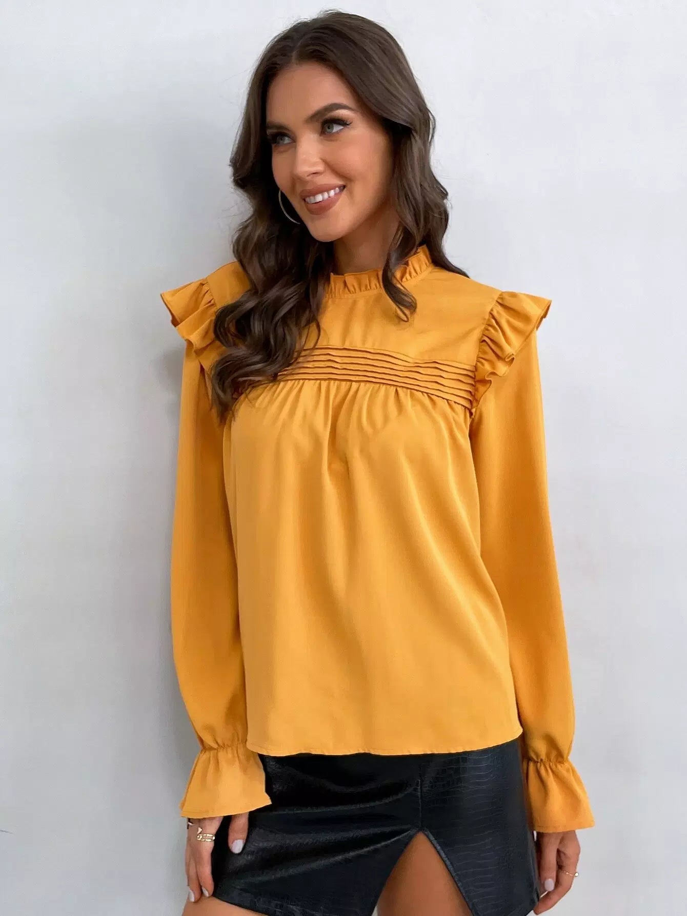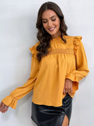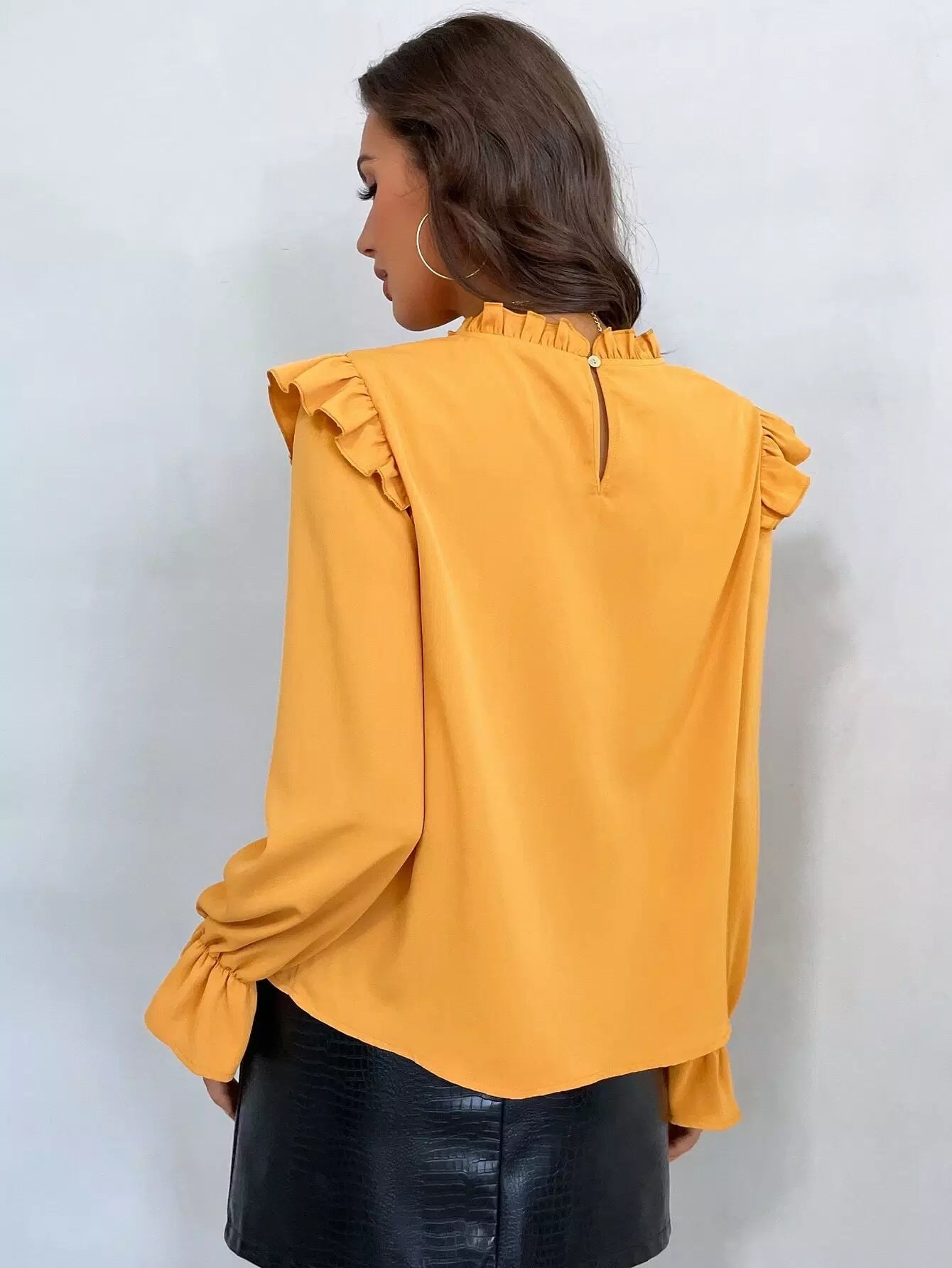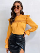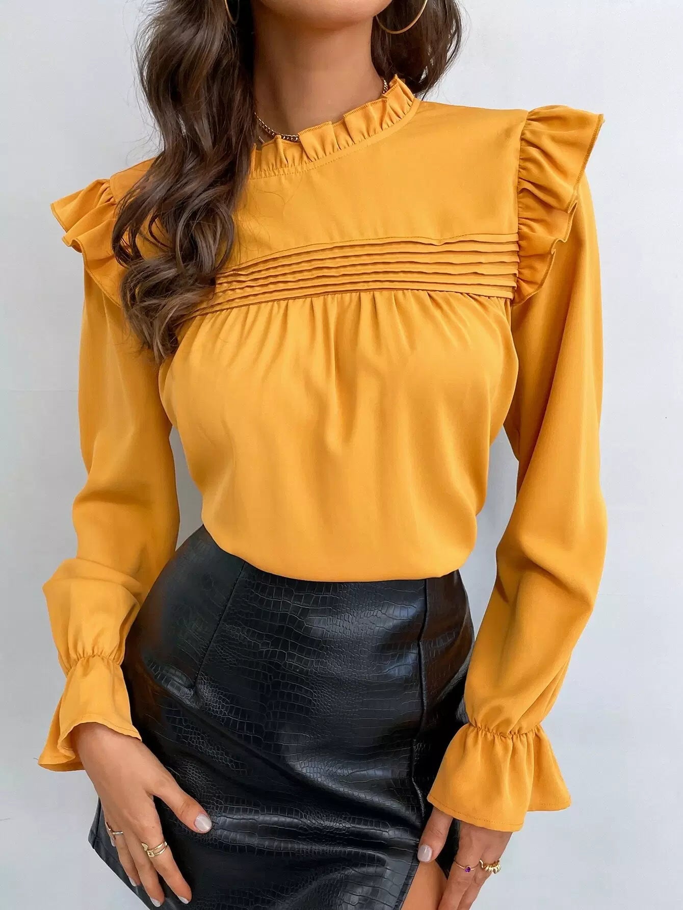 Press Crease Ruffle Trim Flounce Sleeve Blouse