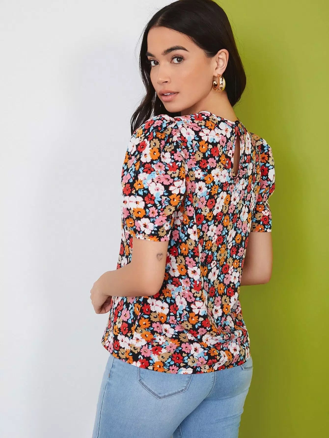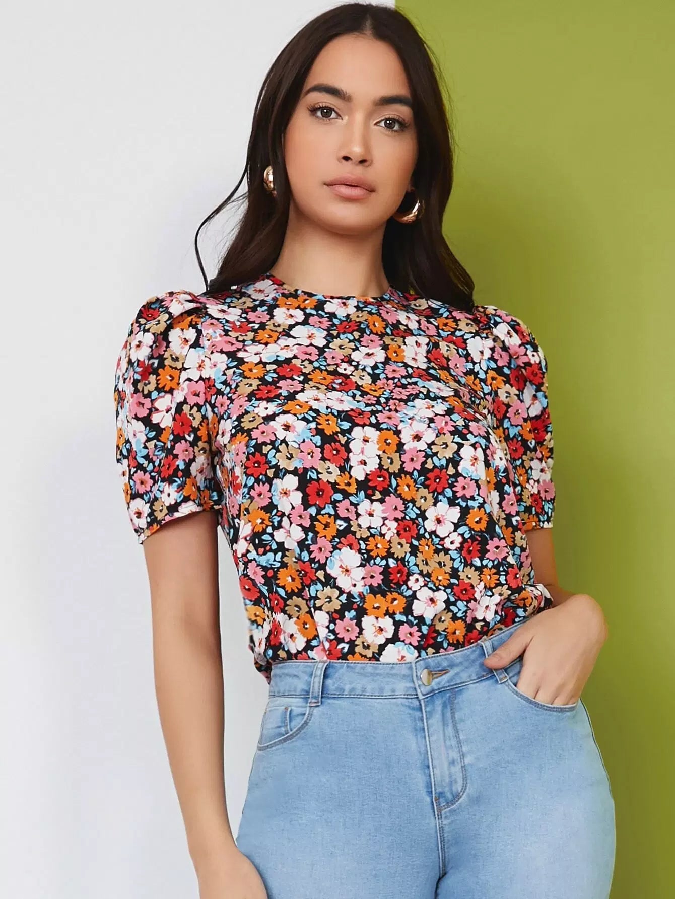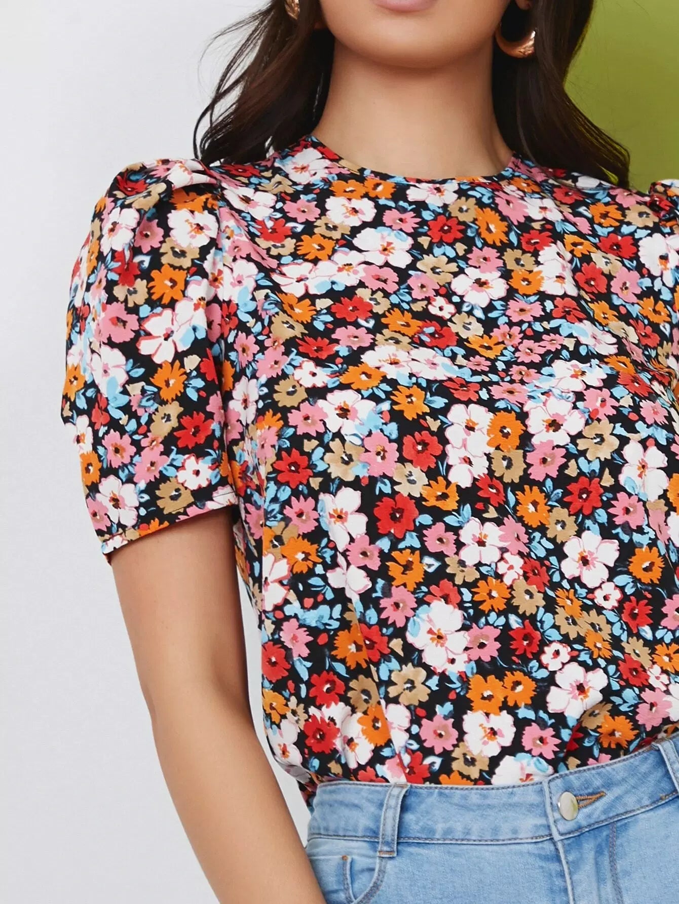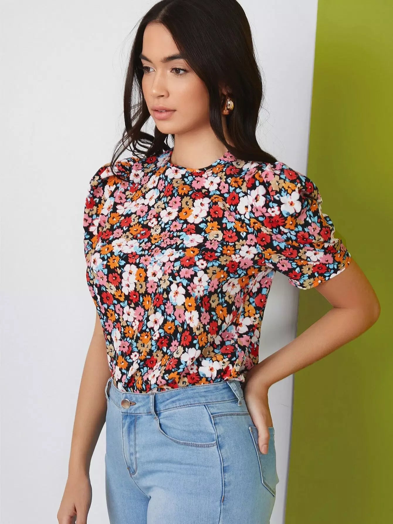 Puff Sleeve Allover Floral Top