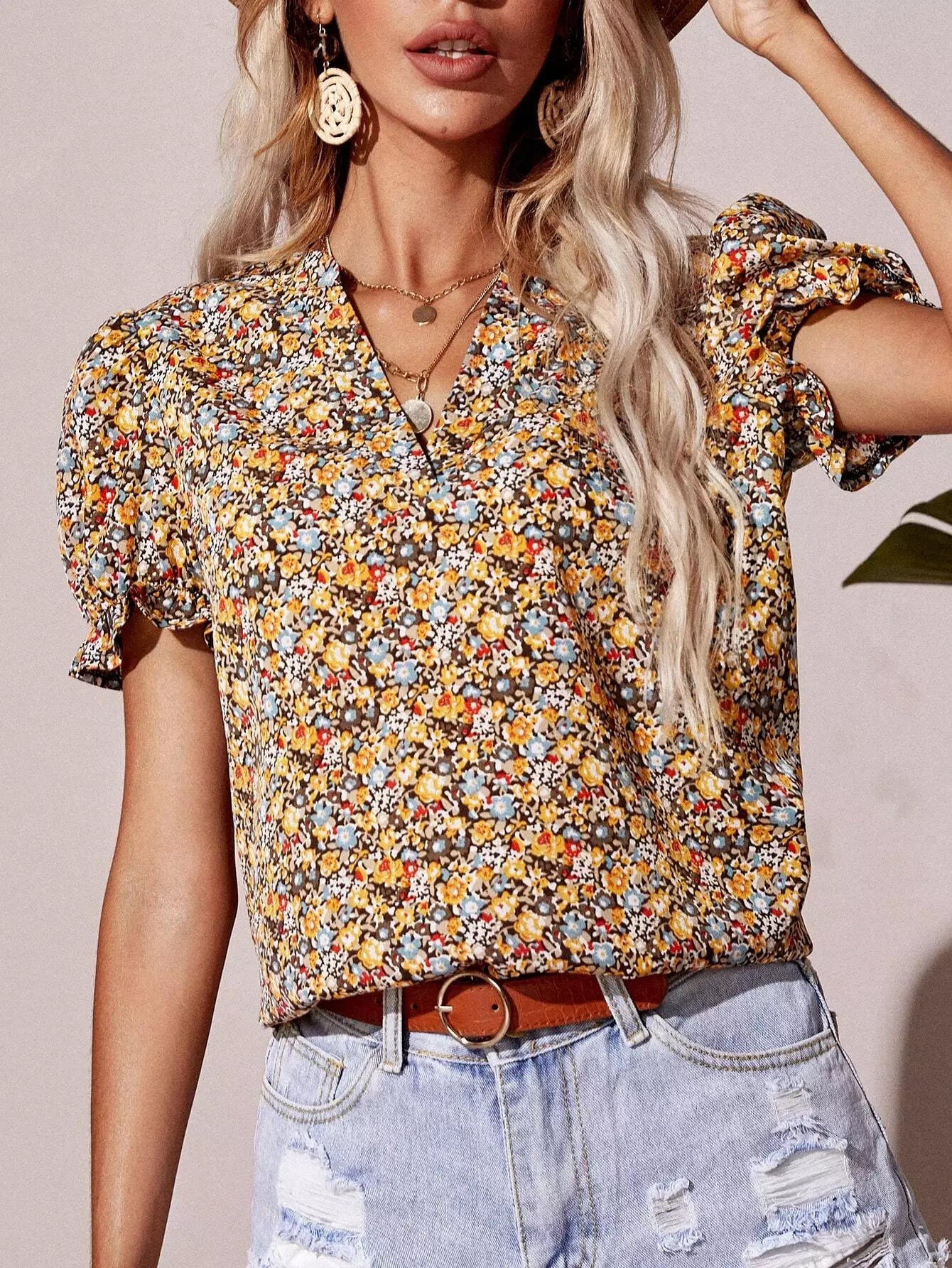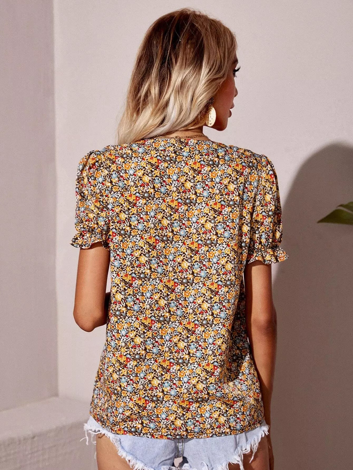 Puff Sleeve Ditsy Floral Blouse