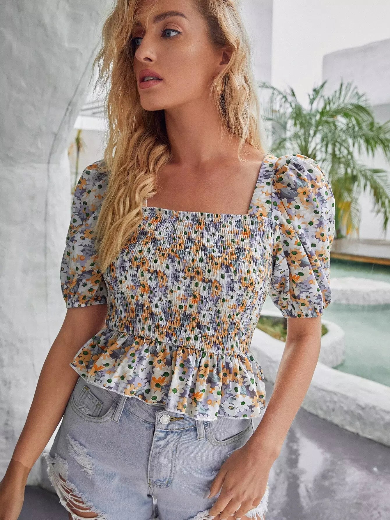 Women - Puff Sleeve Shirred Ditsy Floral Top