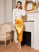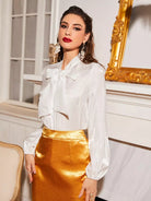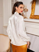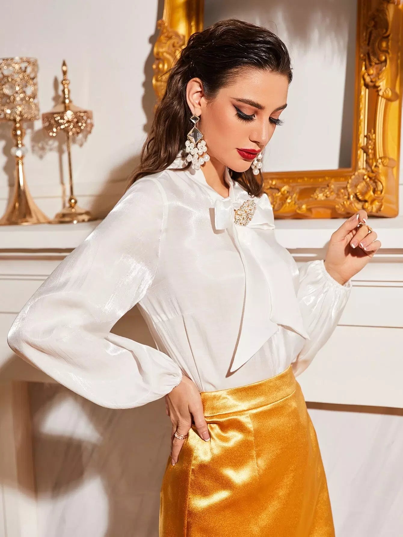 Rhinestone Tie Neck Bishop Sleeve Blouse