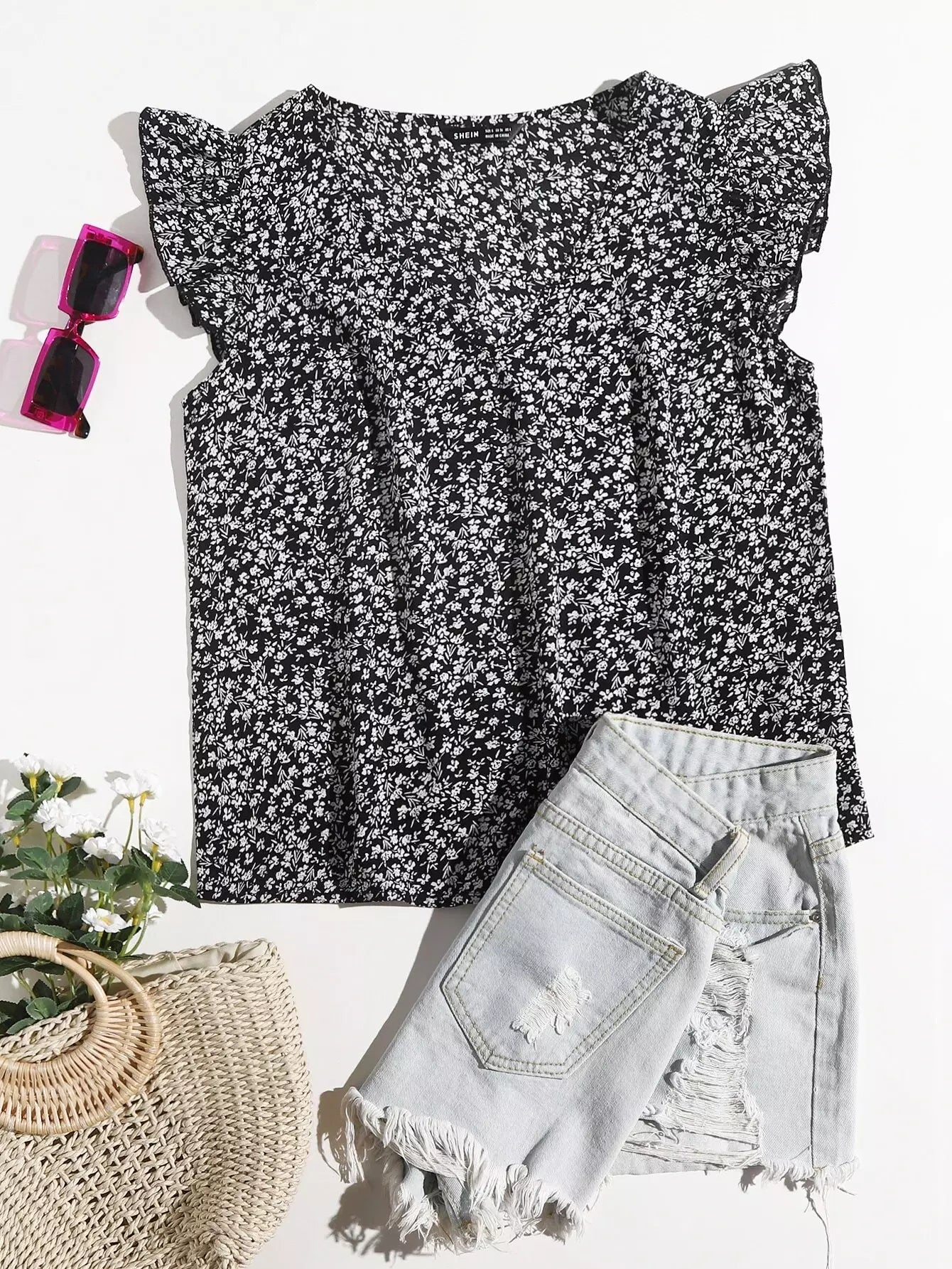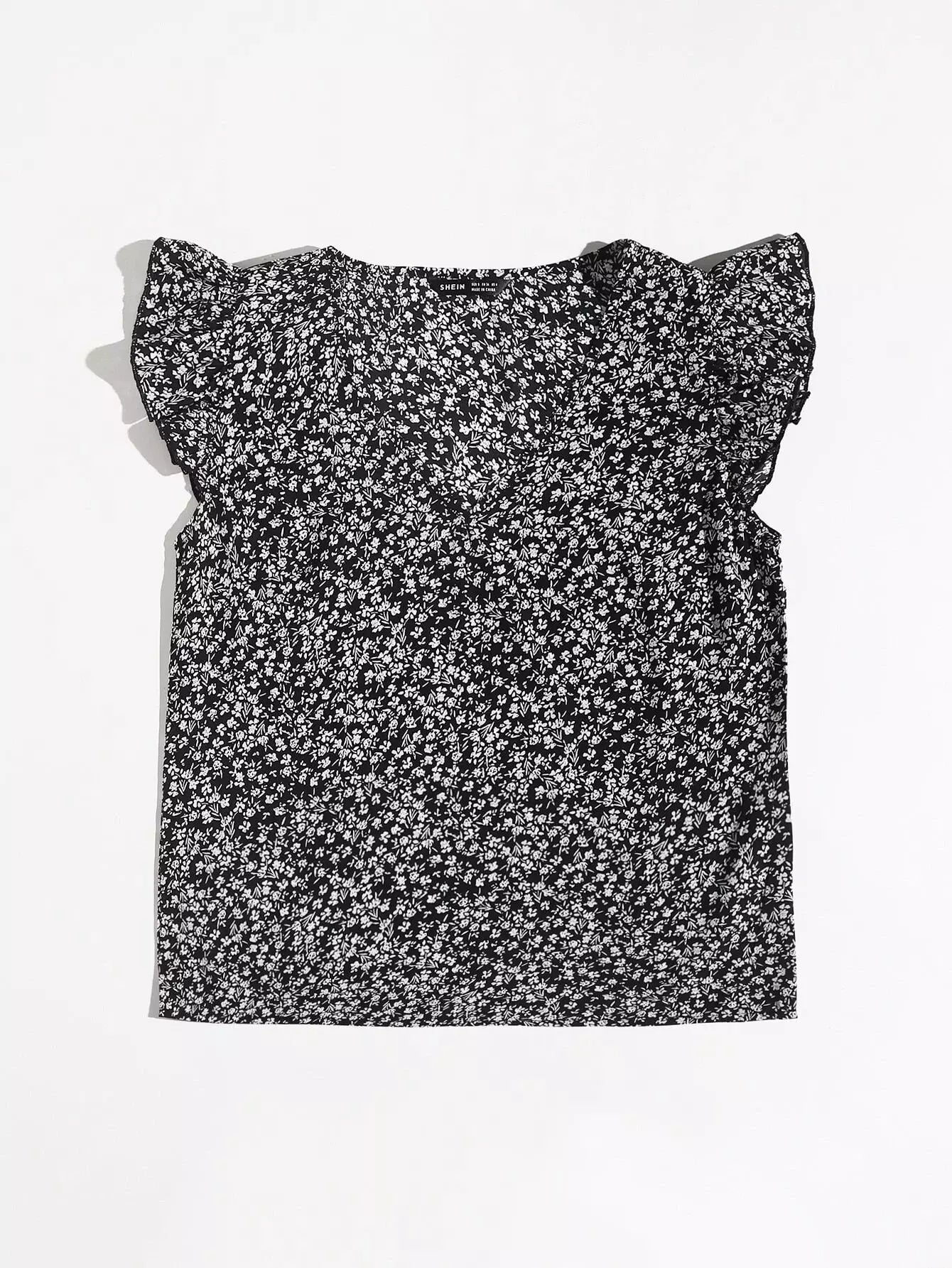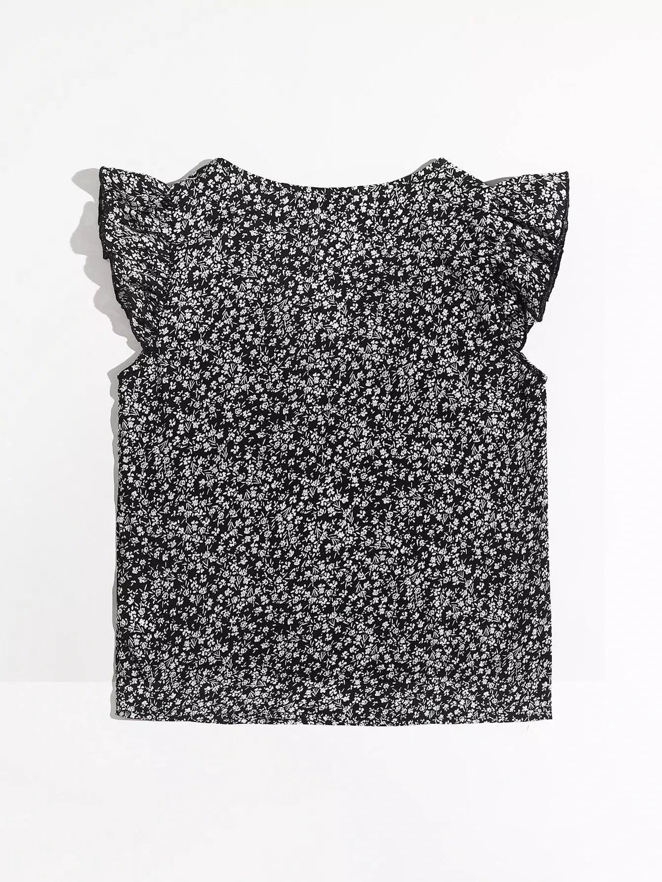Ruffle Trim Ditsy Floral Top