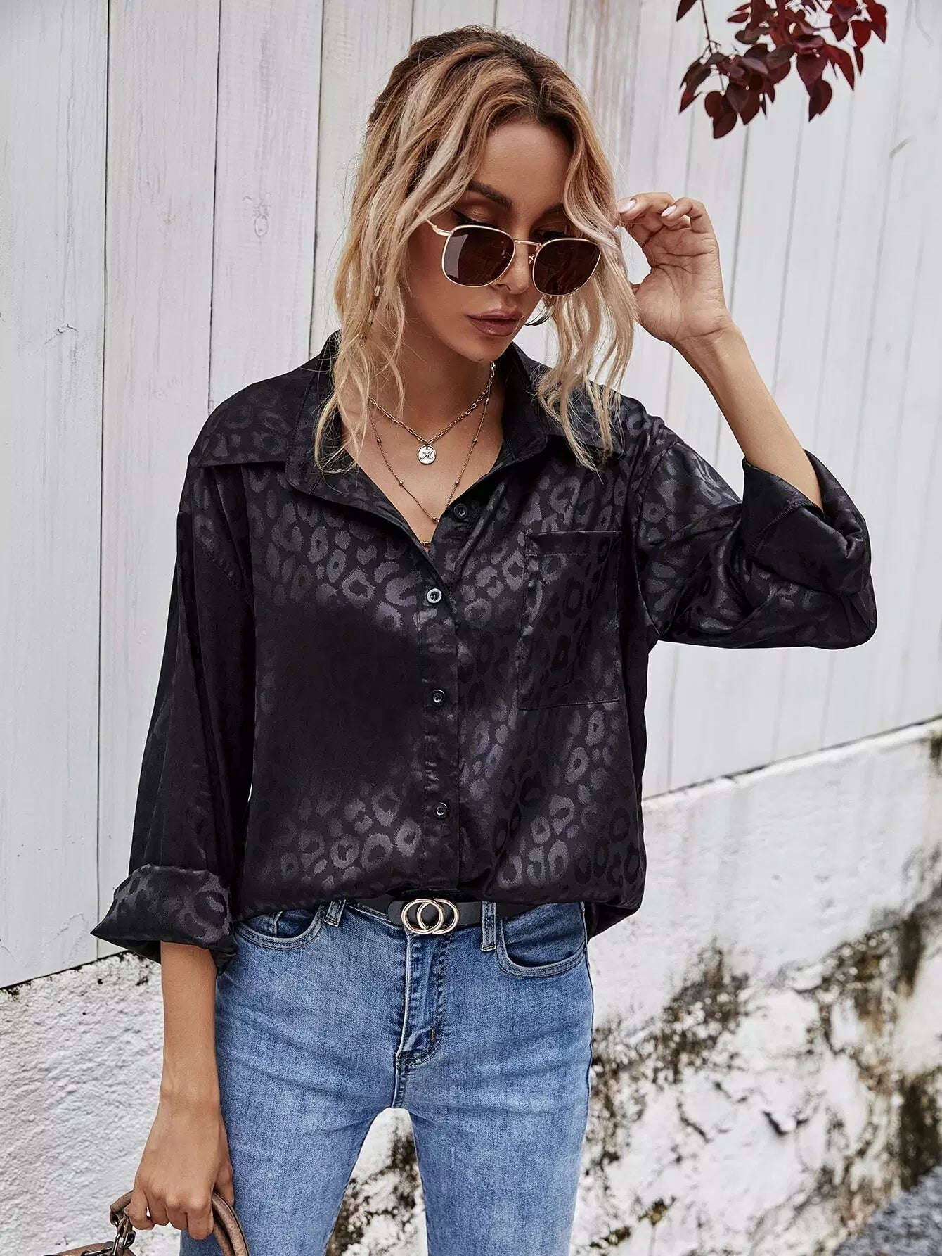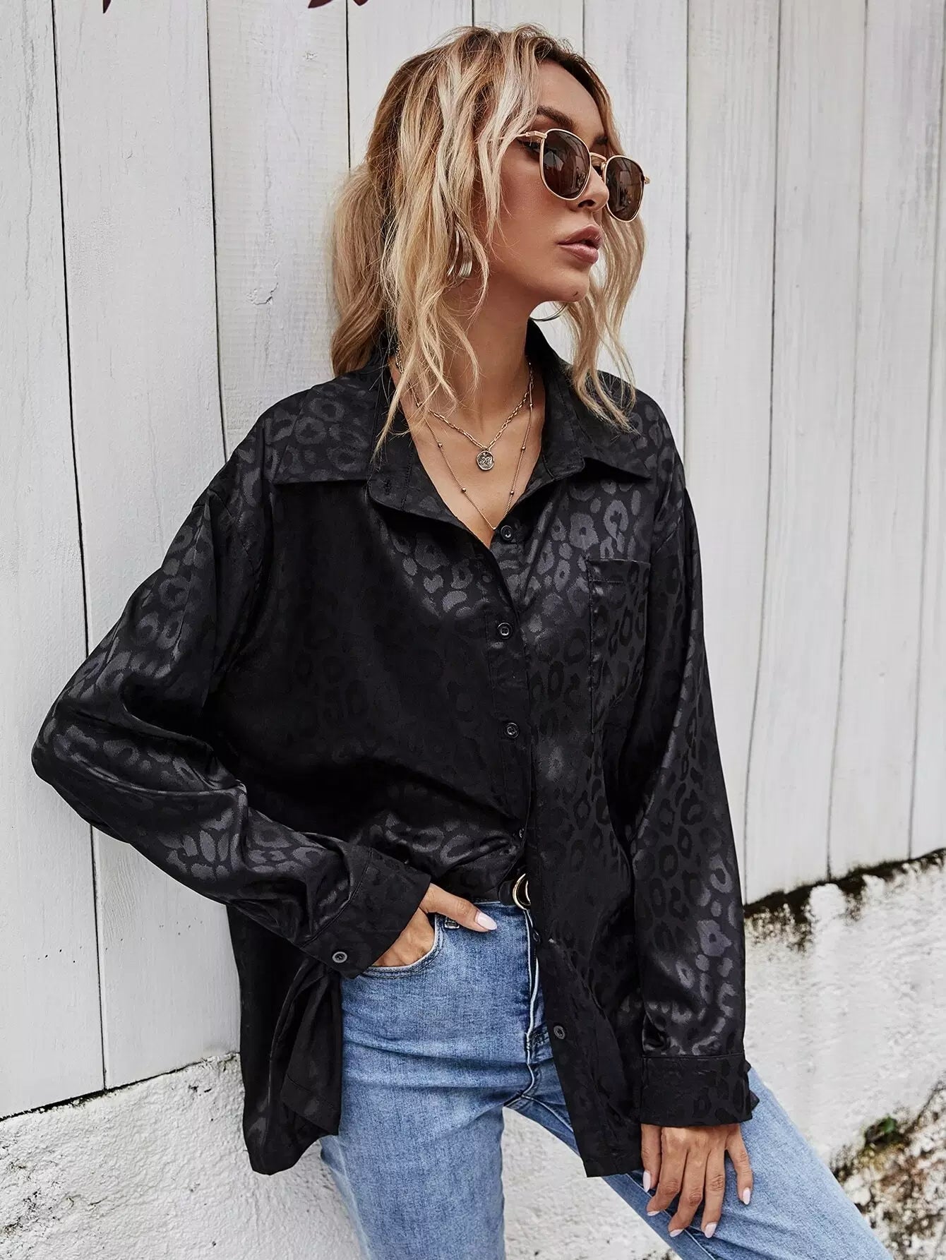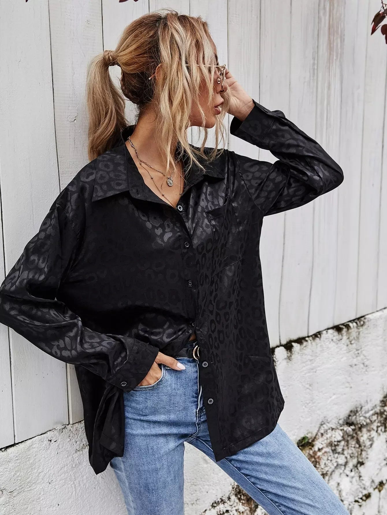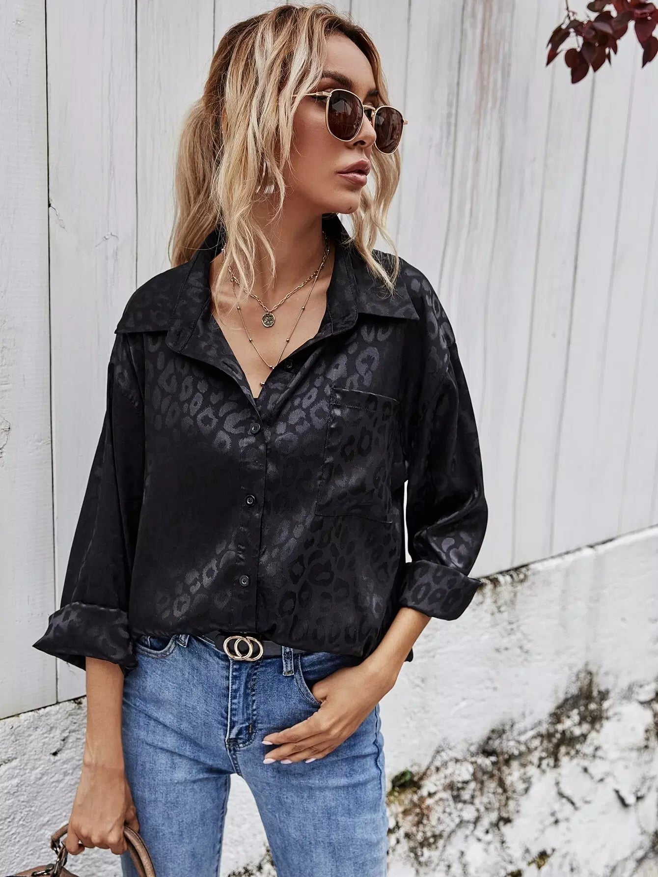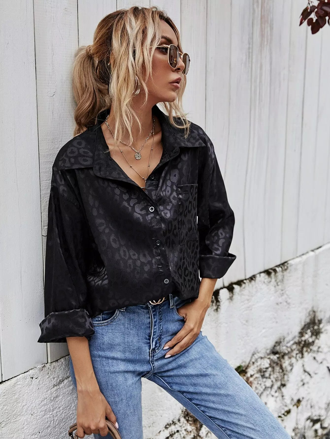 Satin Jacquard Button Up Drop Shoulder Shirt