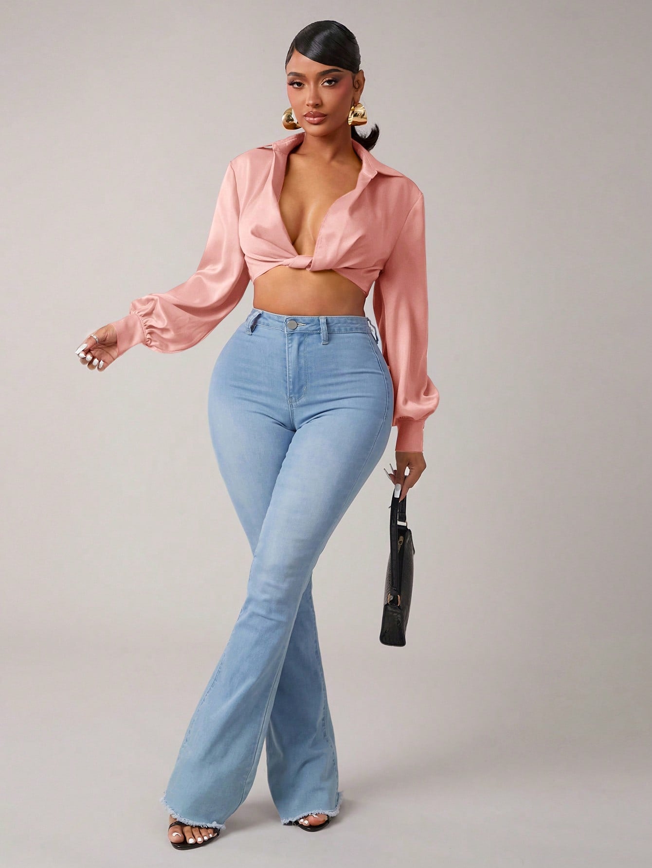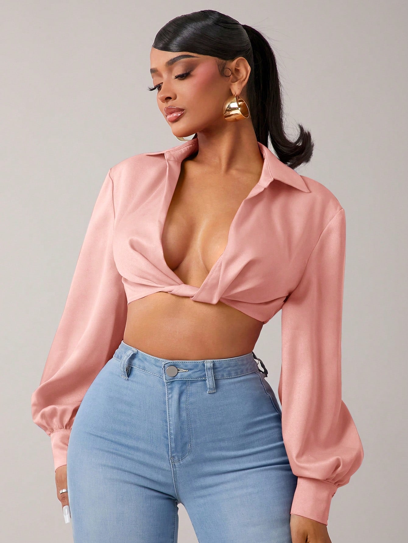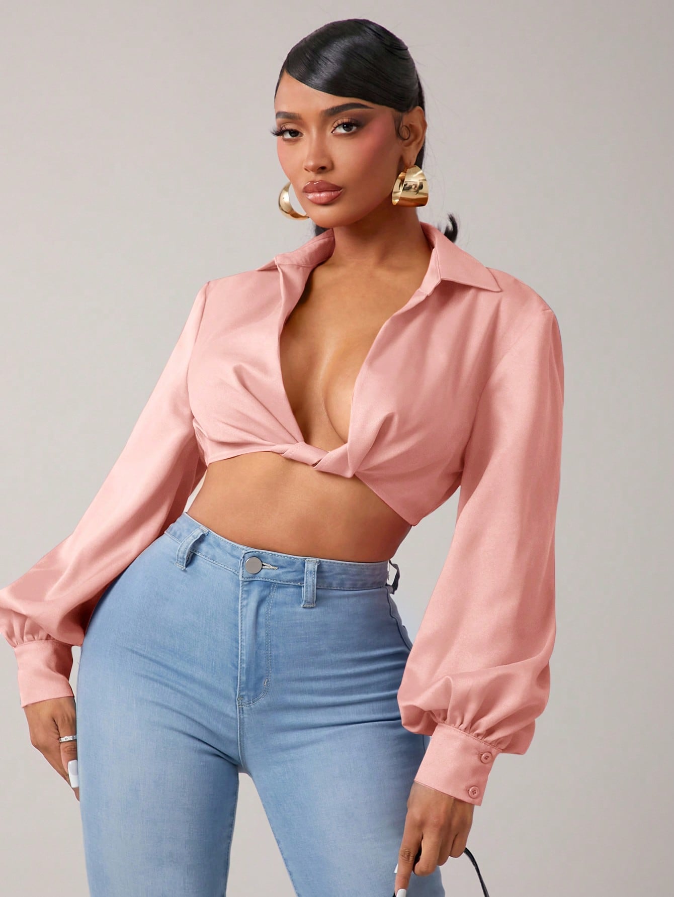 SHEIN SXY Cropped Bell Sleeve Twist Knot Sexy Blouse