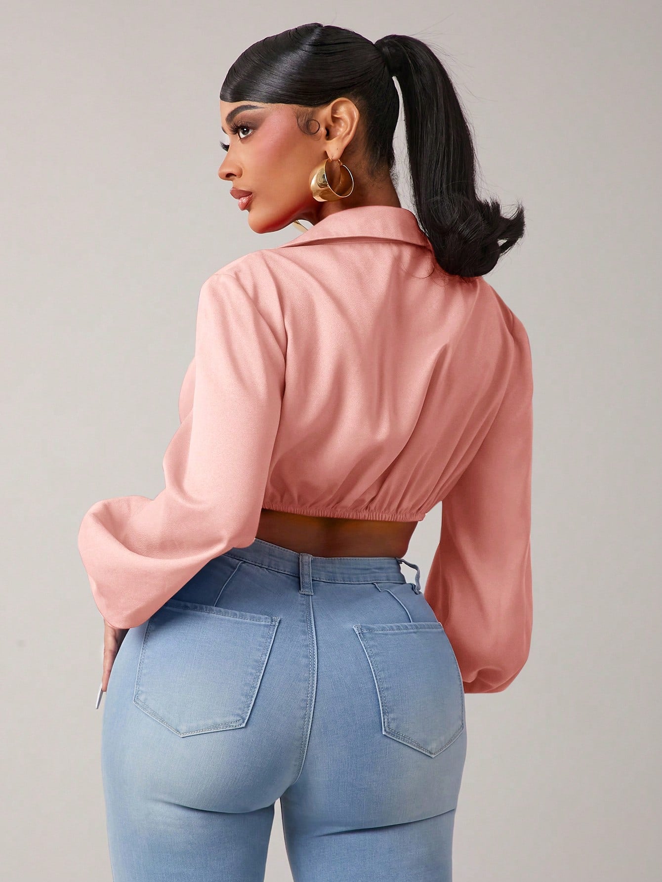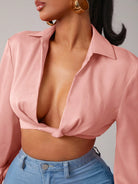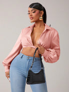 women SHEIN SXY Cropped Bell Sleeve Twist Knot Sexy Blouse