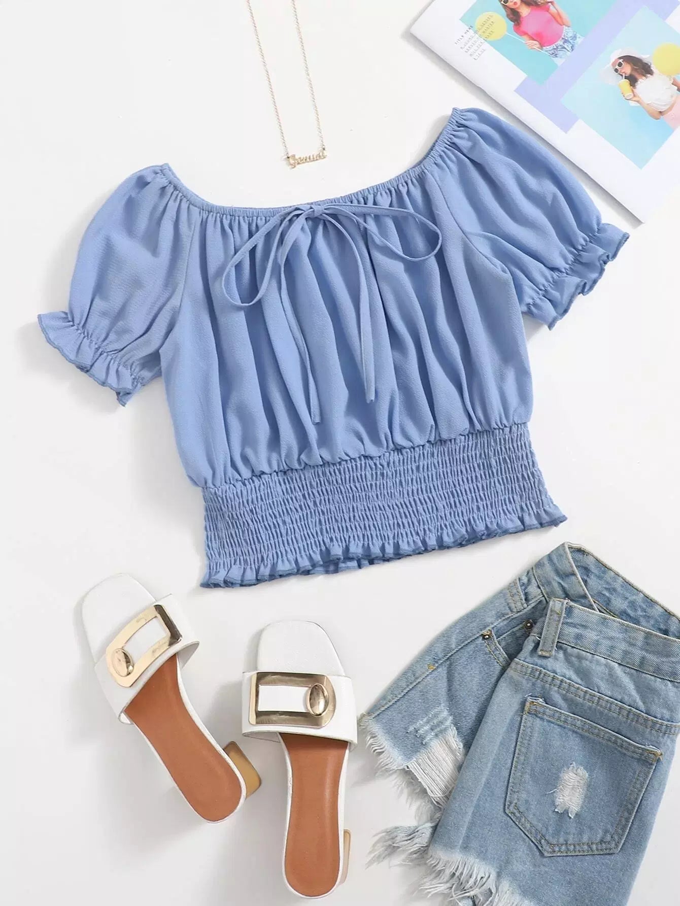 Shirred Knot Front Blouse