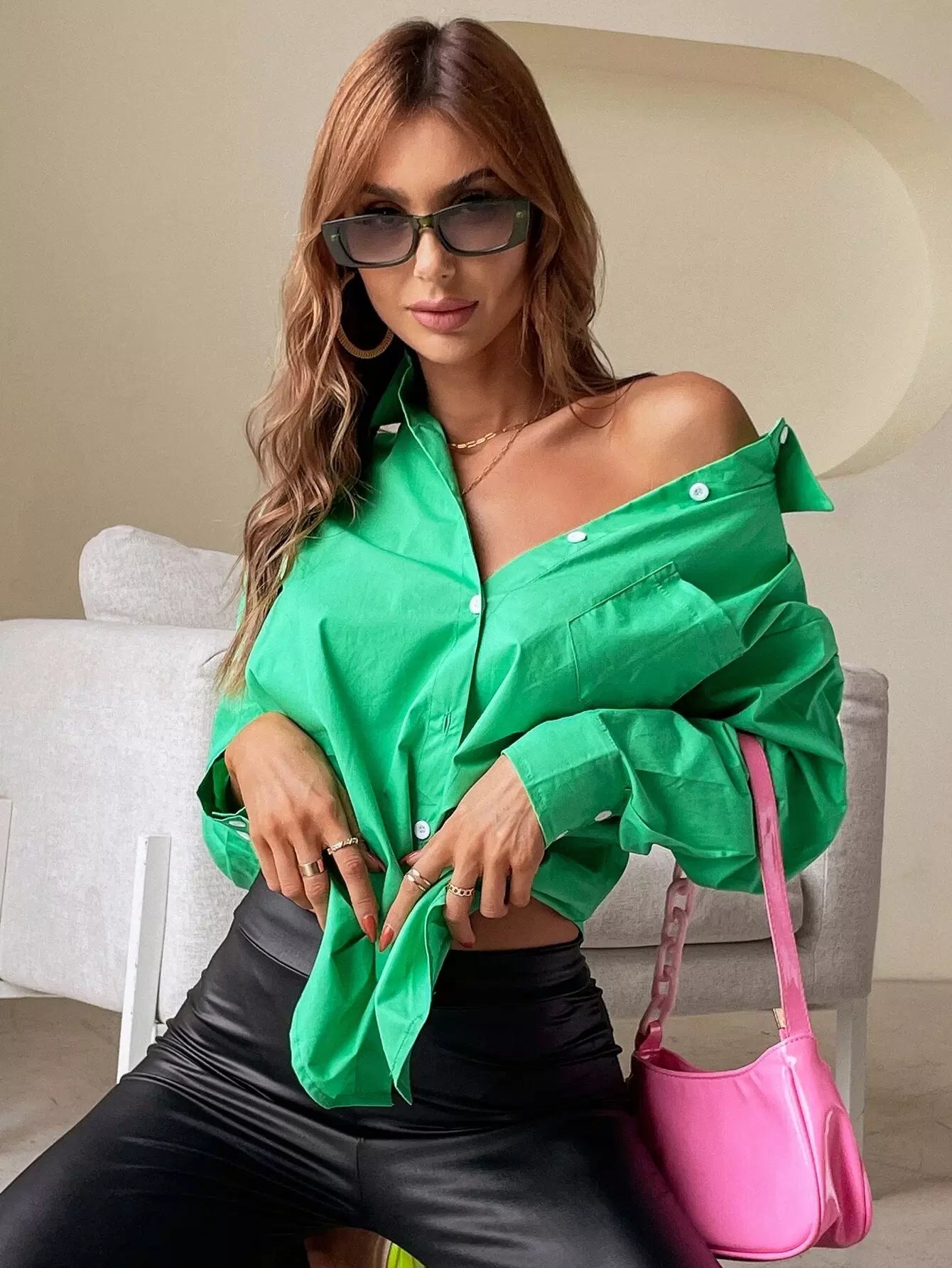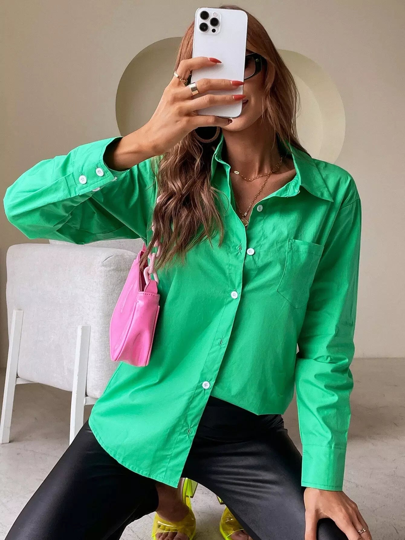 Solid Button Front Shirt