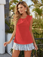 Women - Solid Contrast Eyelet Embroidery Ruffle Blouse
