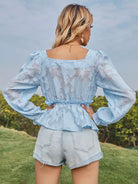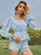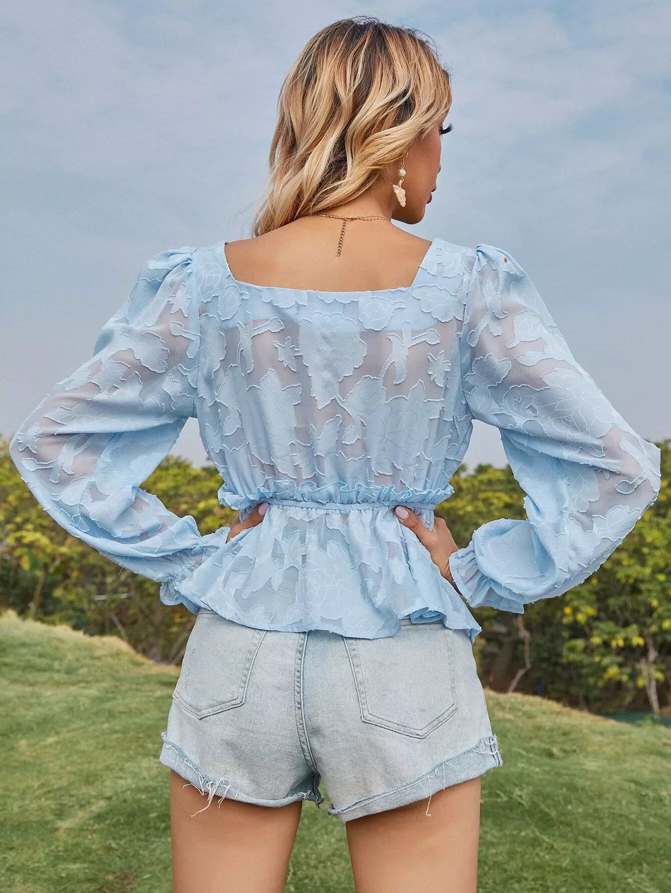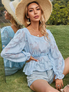 Women - Solid Flounce Sleeve Babydoll Blouse