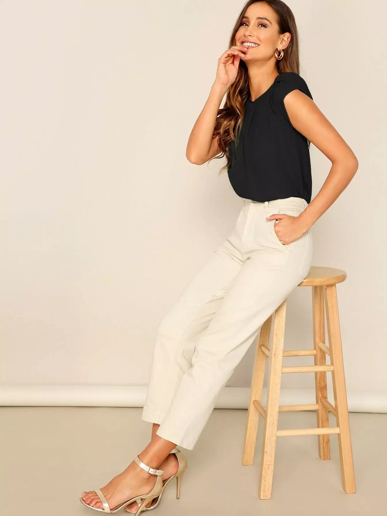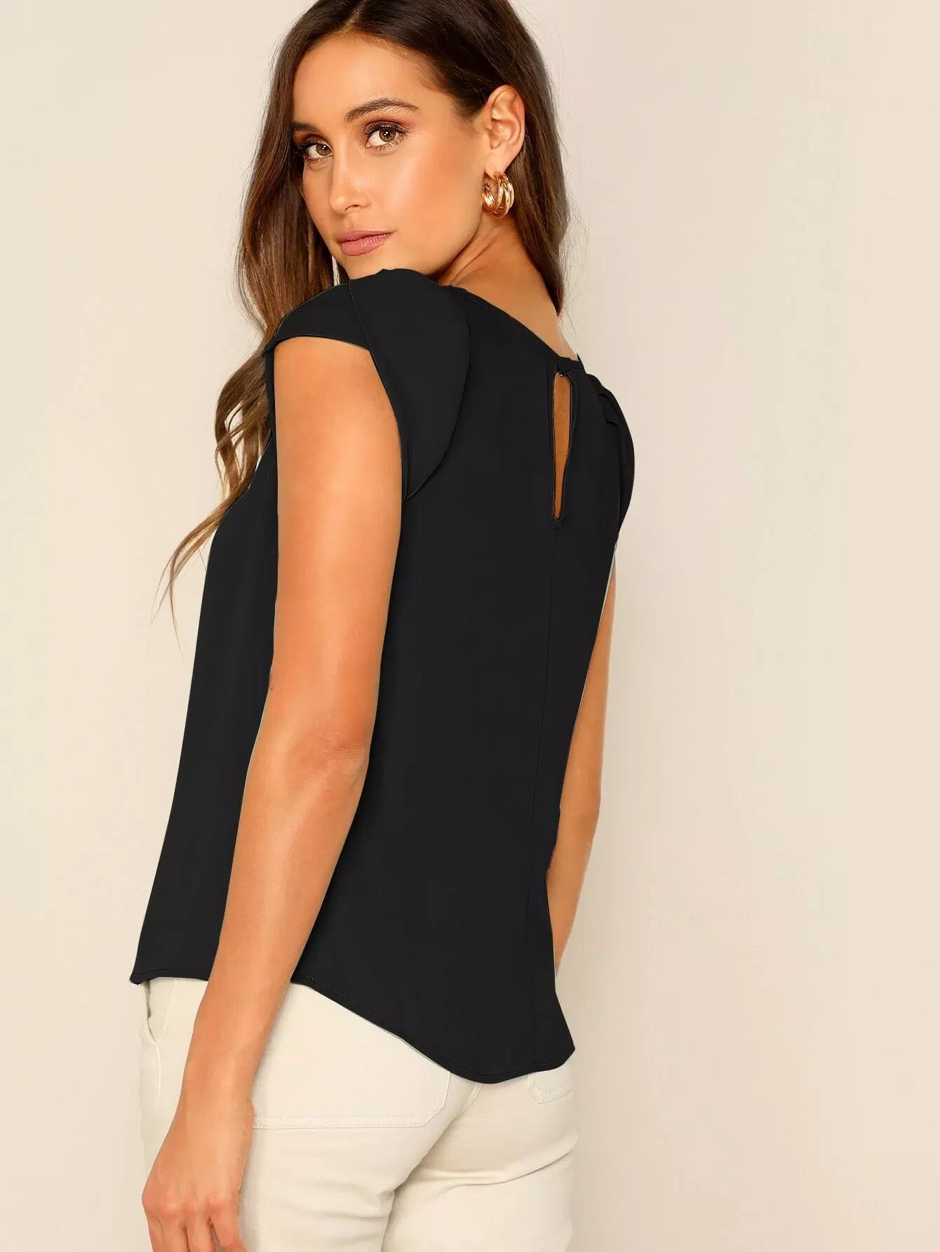 Solid Keyhole Back Petal Sleeve Top