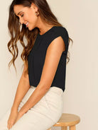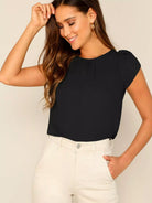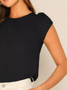 Women - Solid Keyhole Back Petal Sleeve Top