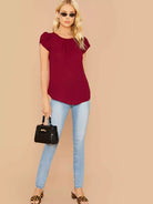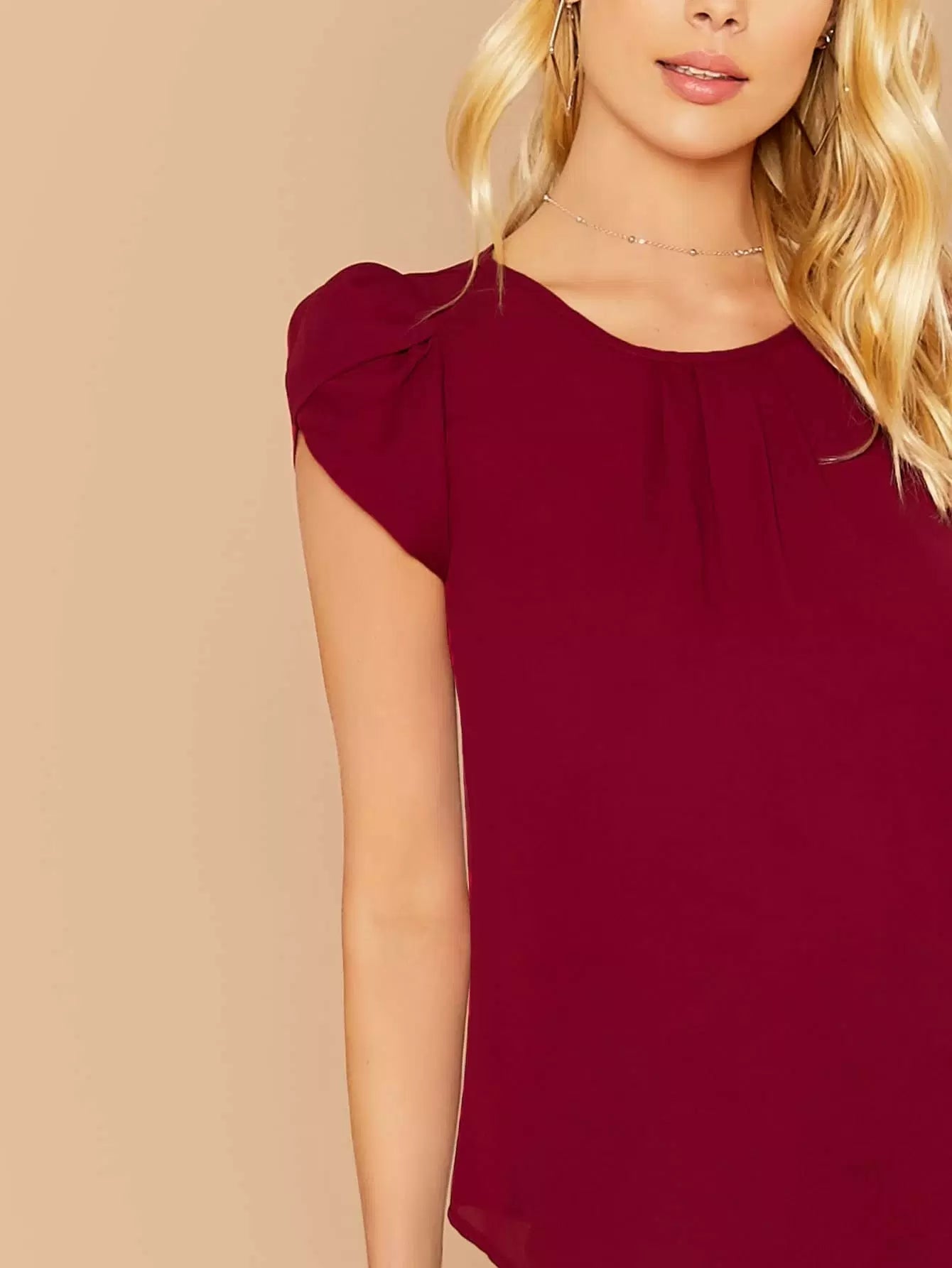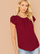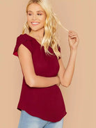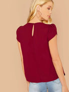 Women - Solid Keyhole Back Petal Sleeve Top