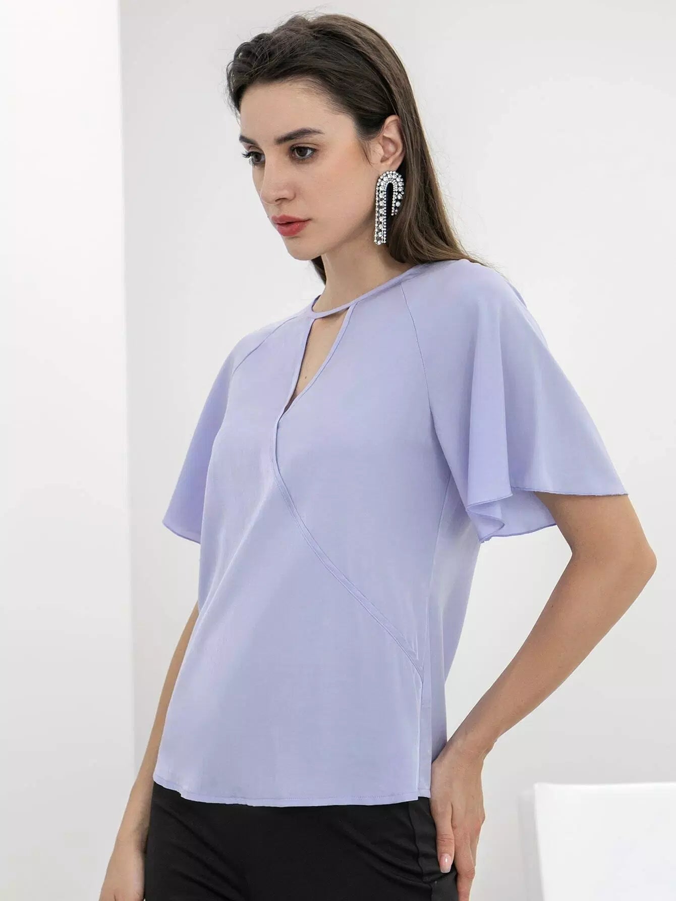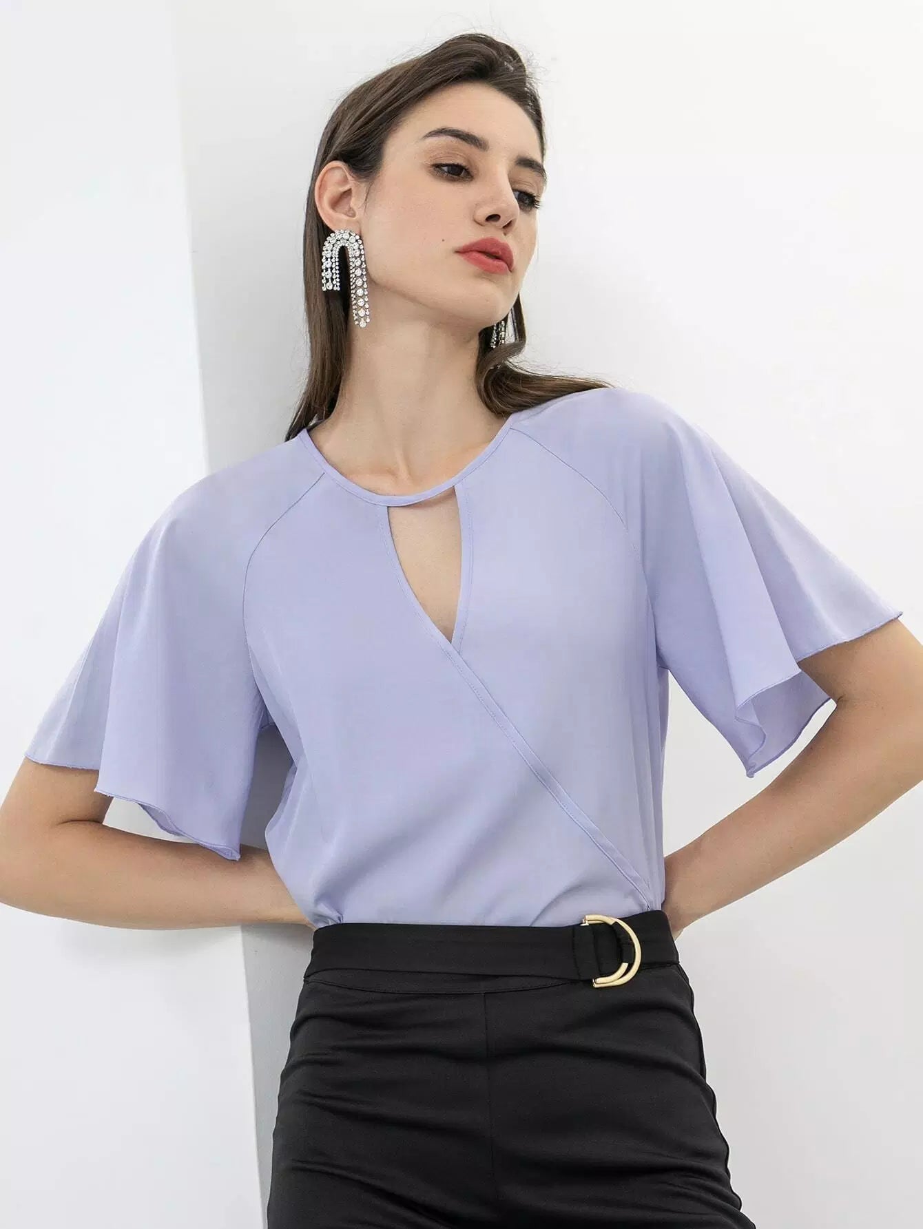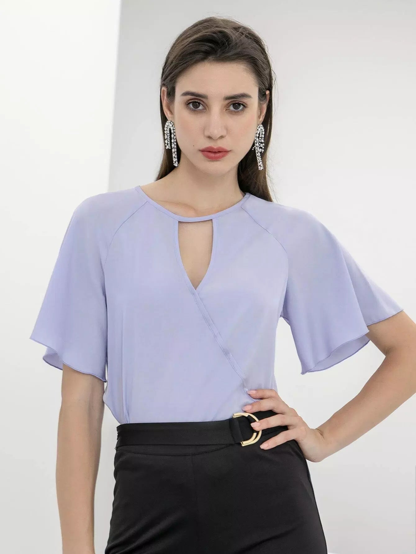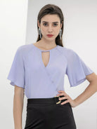 Solid Keyhole Neck Butterfly Sleeve Blouse