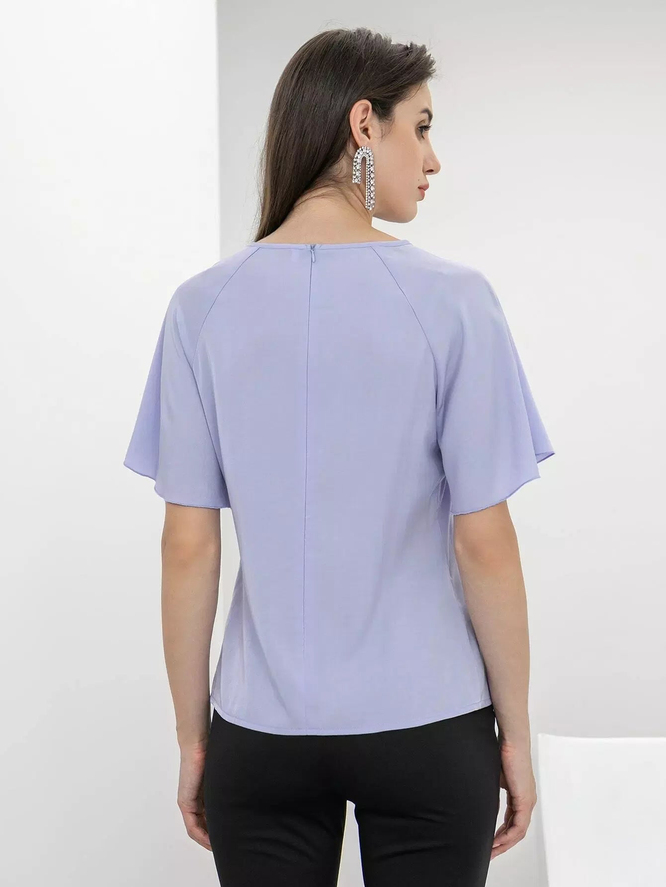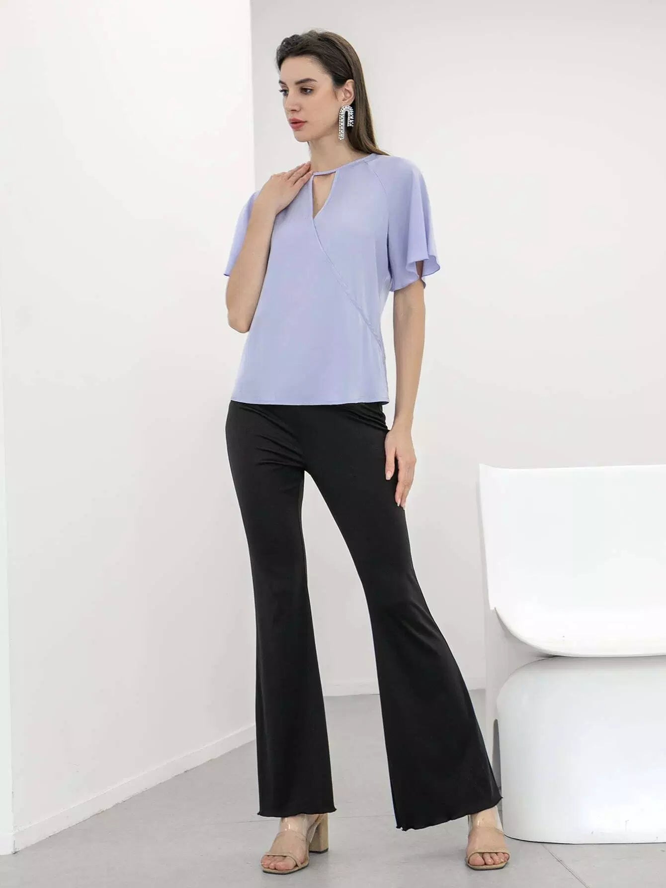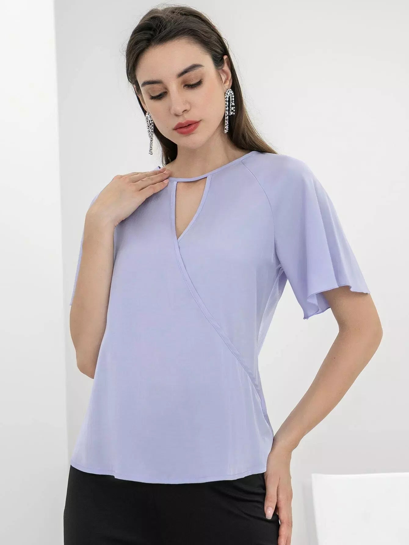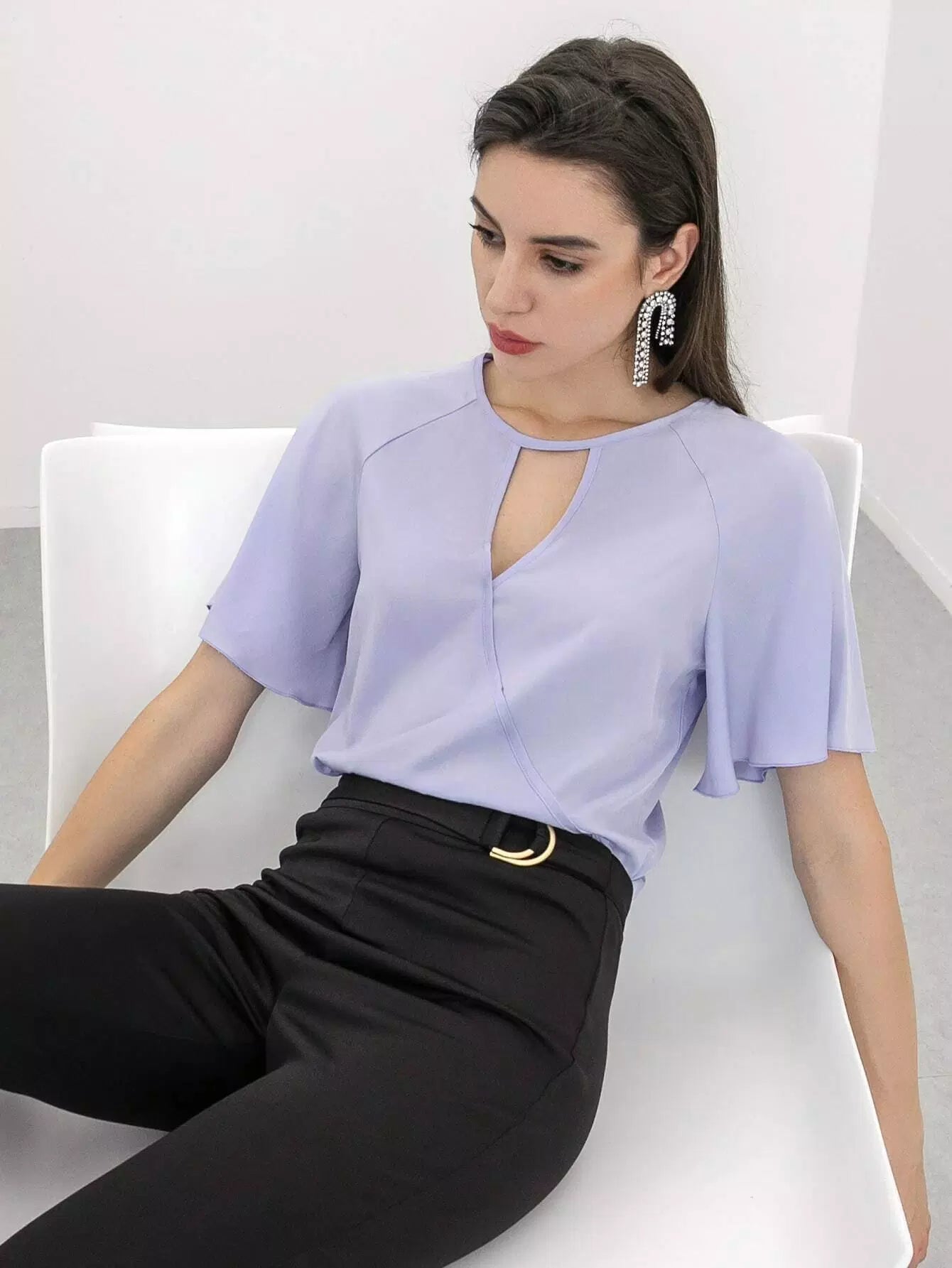Solid Keyhole Neck Butterfly Sleeve Blouse