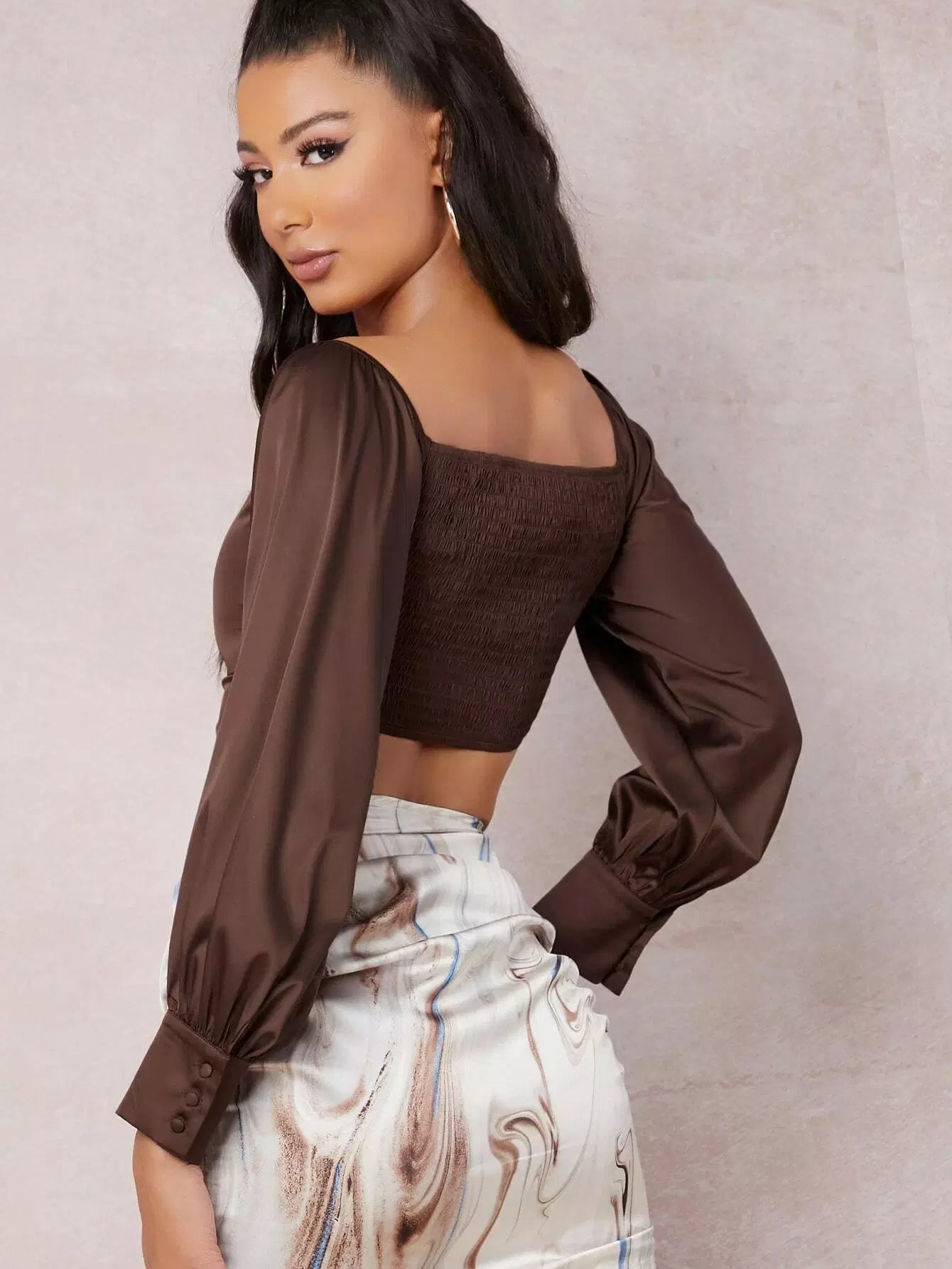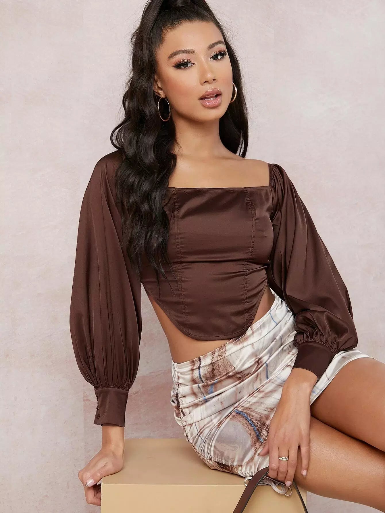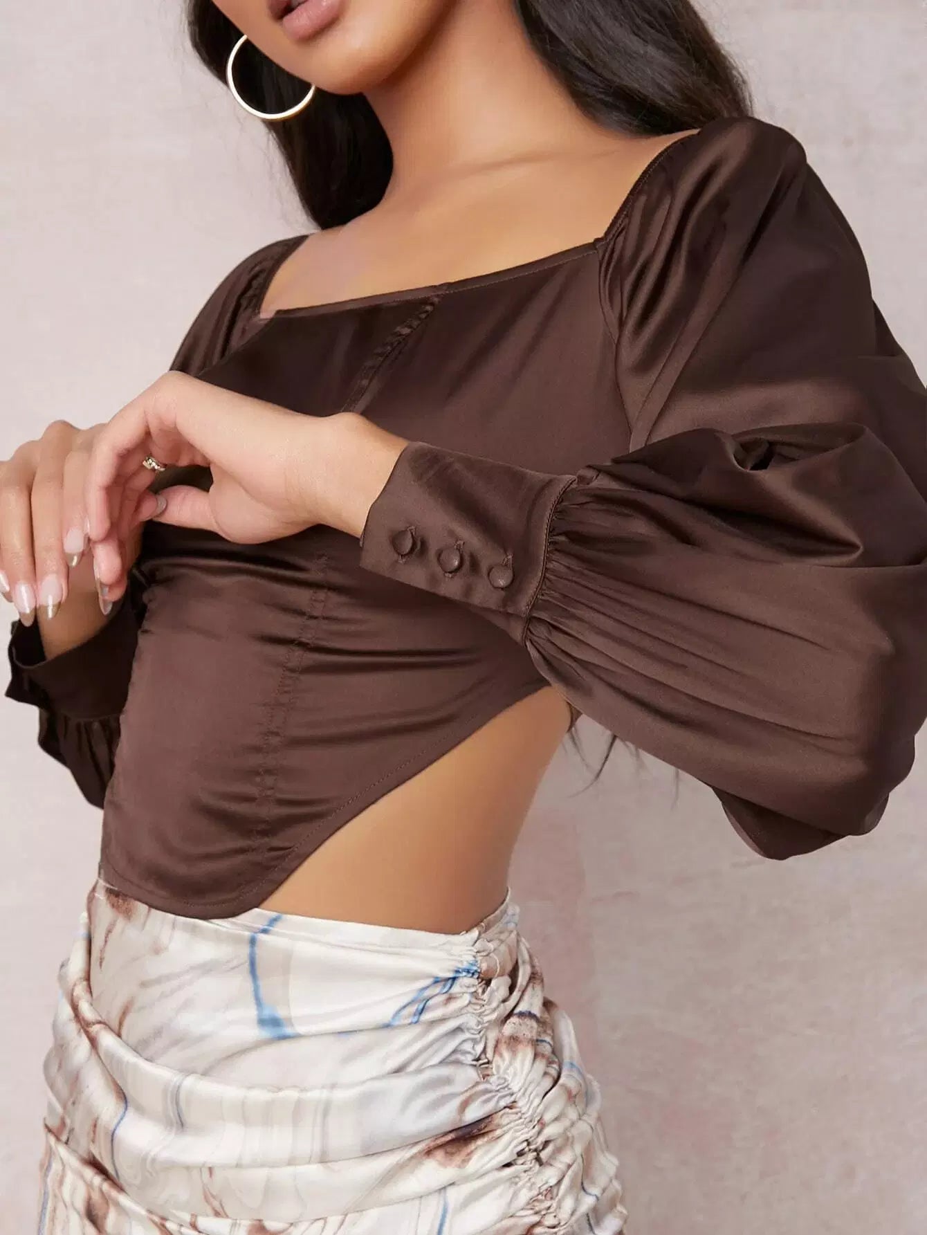 Square Neck Bishop Sleeve Satin Top