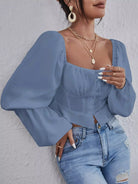 Women - Square Neck Lantern Sleeve Ruched Crop Blouse