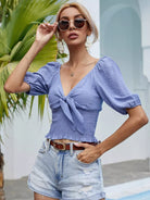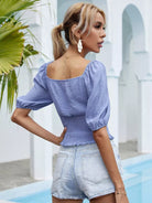 Women - Sweetheart Neck Knot Front Shirred Blouse
