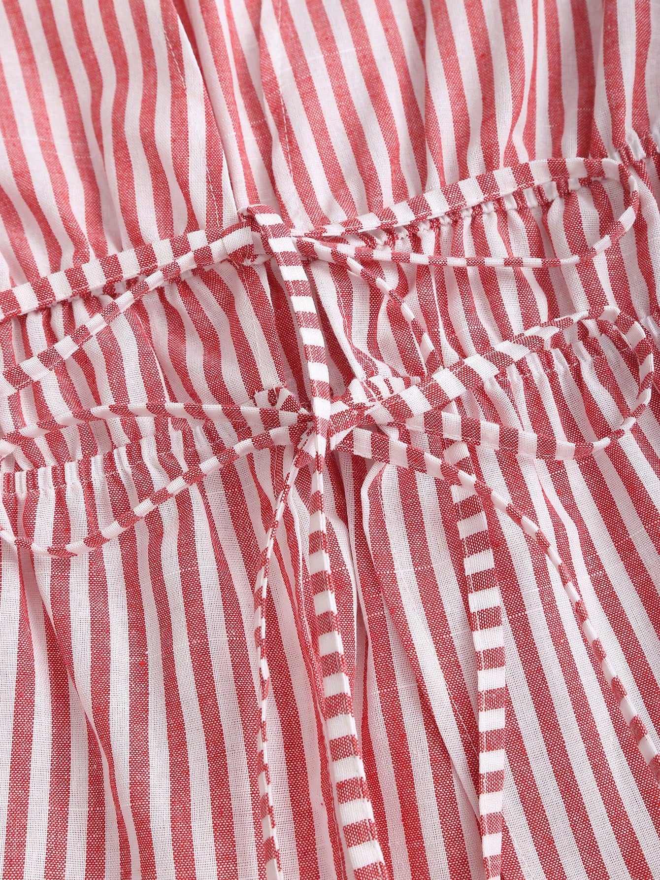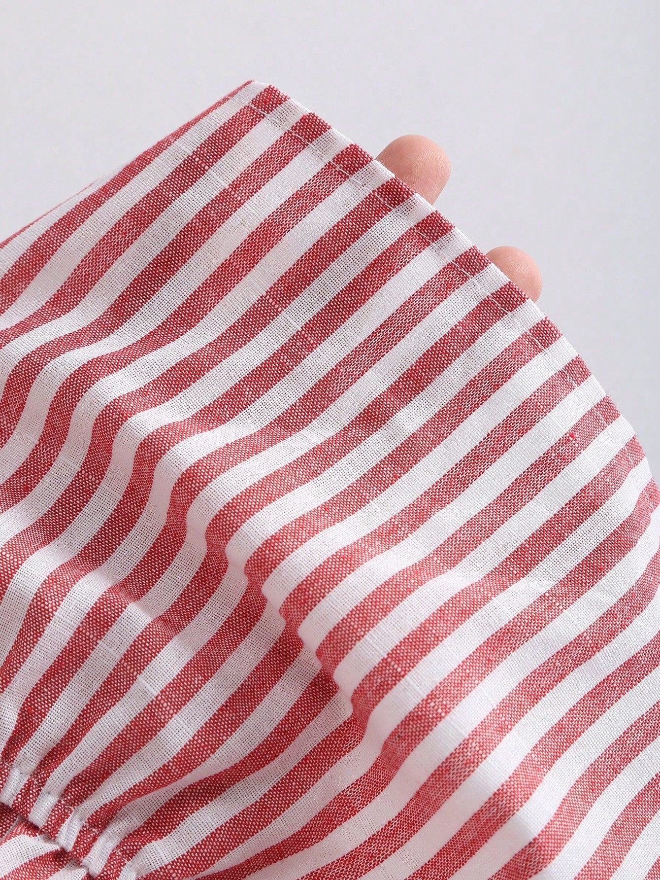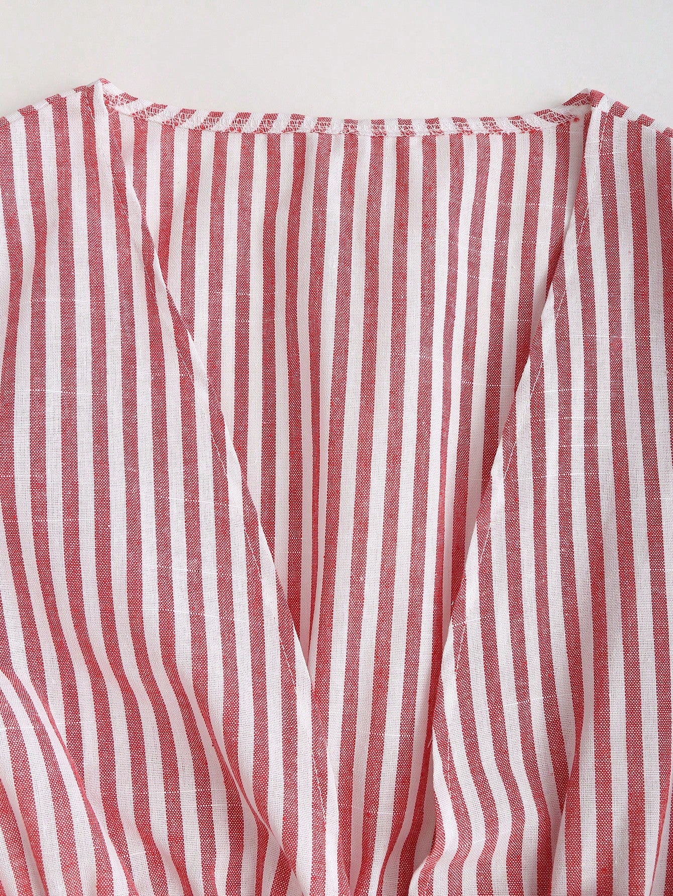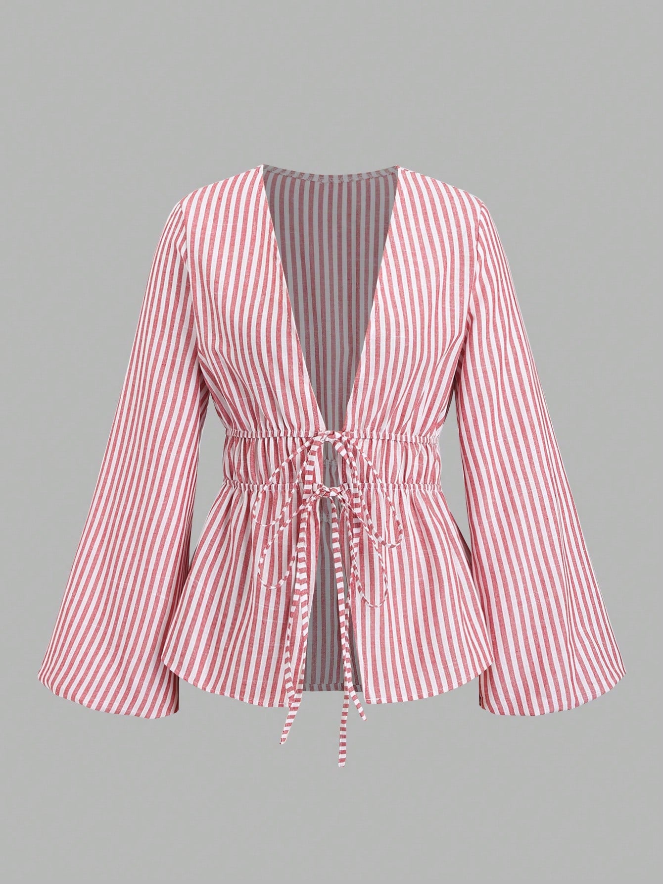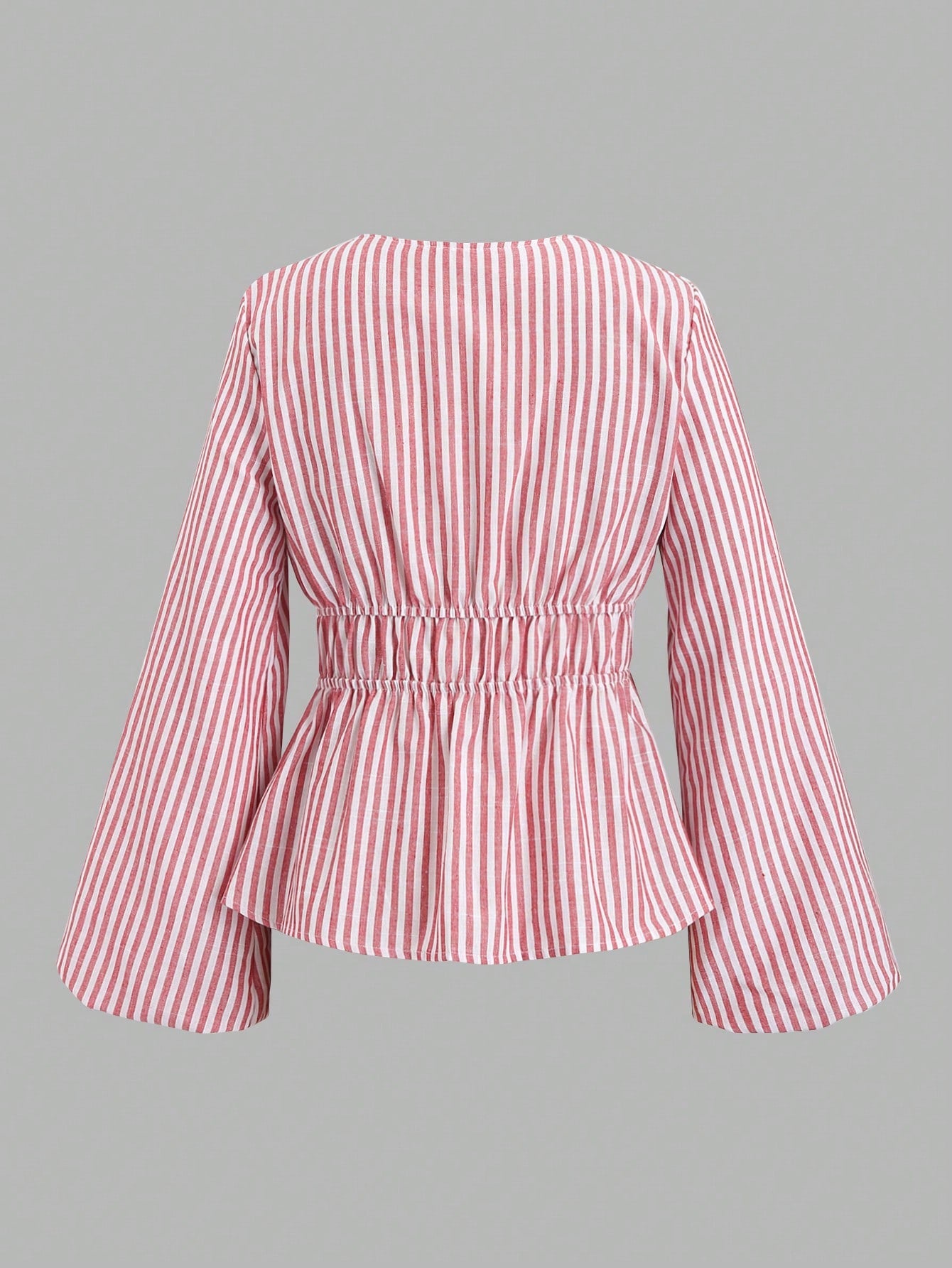 Sweetra Stripe Print Twist Hem Casual Fashion Long Sleeve Shirt, Suitable For Spring/Summer Fall Cloth
