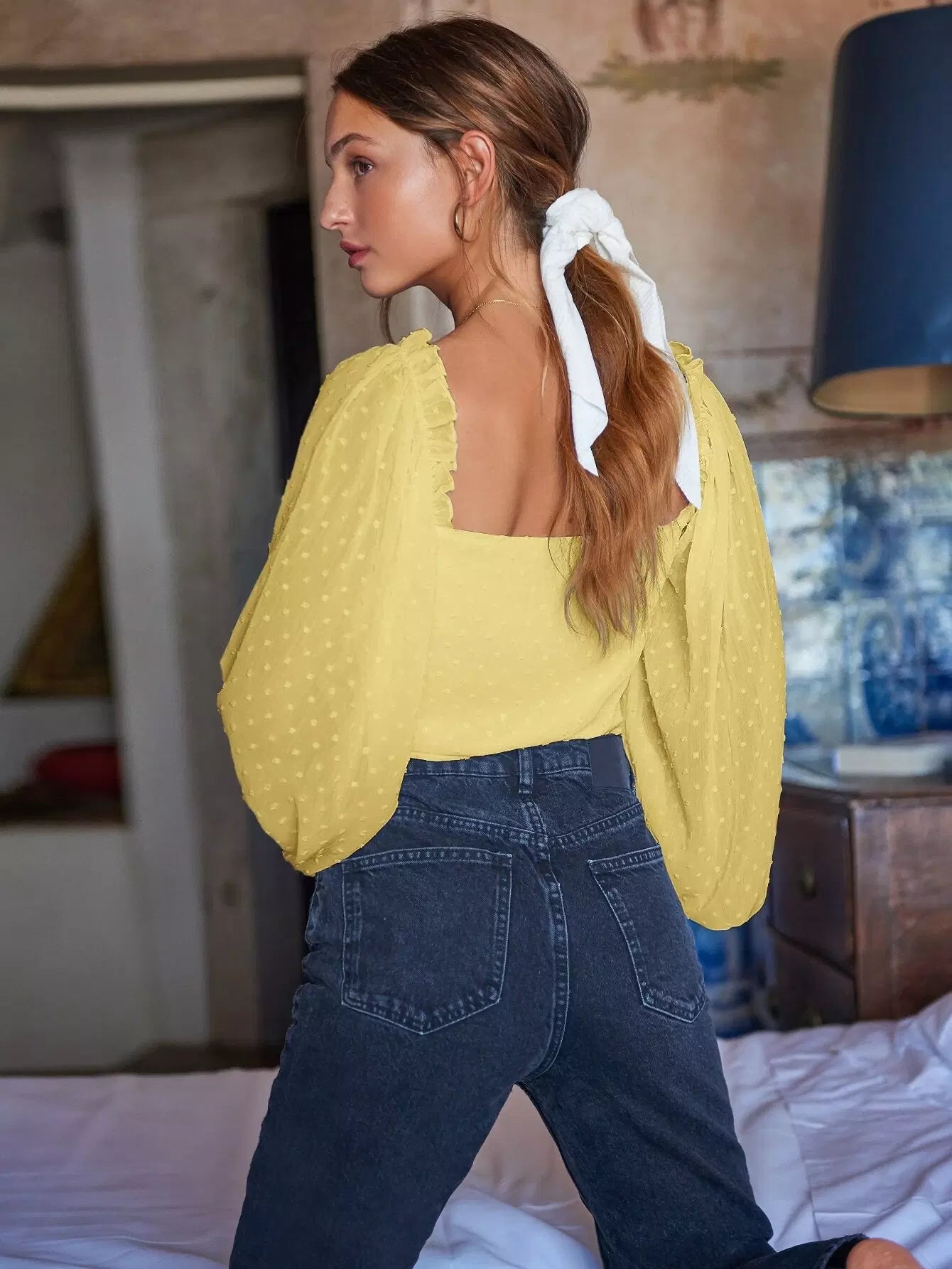 Swiss Dot Lettuce Trim Crop Milkmaid Blouse