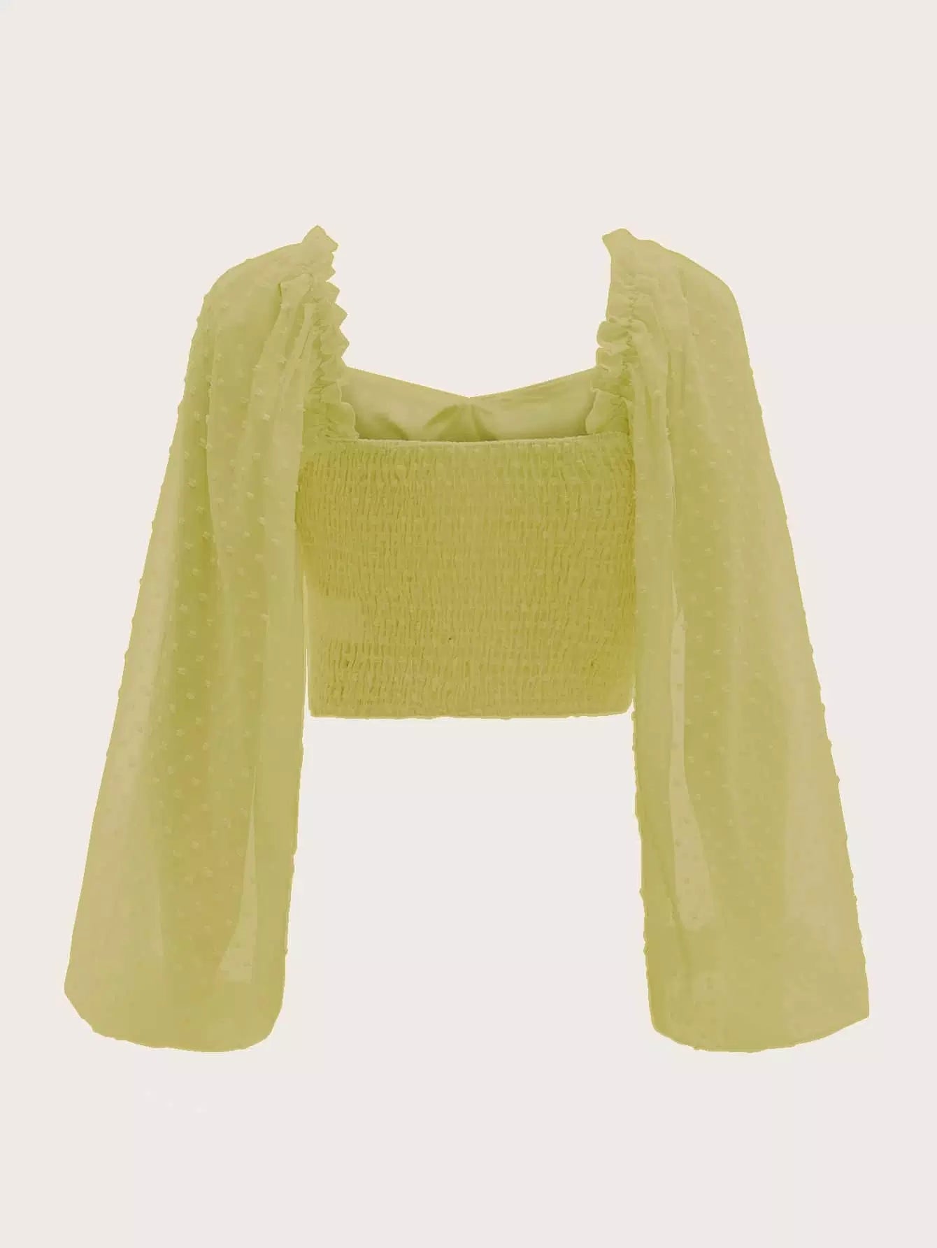Swiss Dot Lettuce Trim Crop Milkmaid Blouse