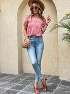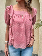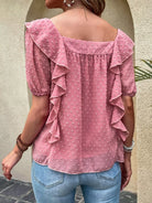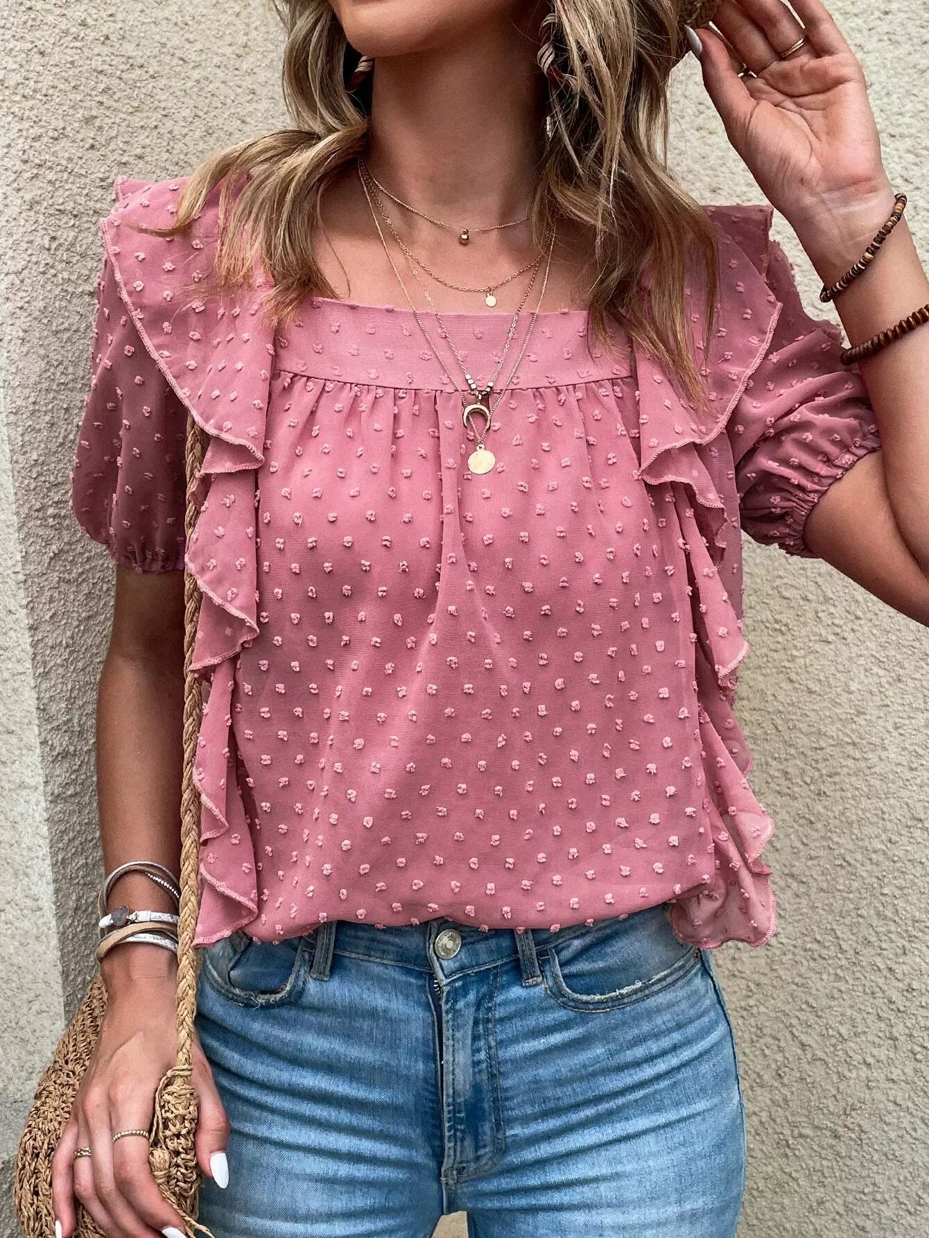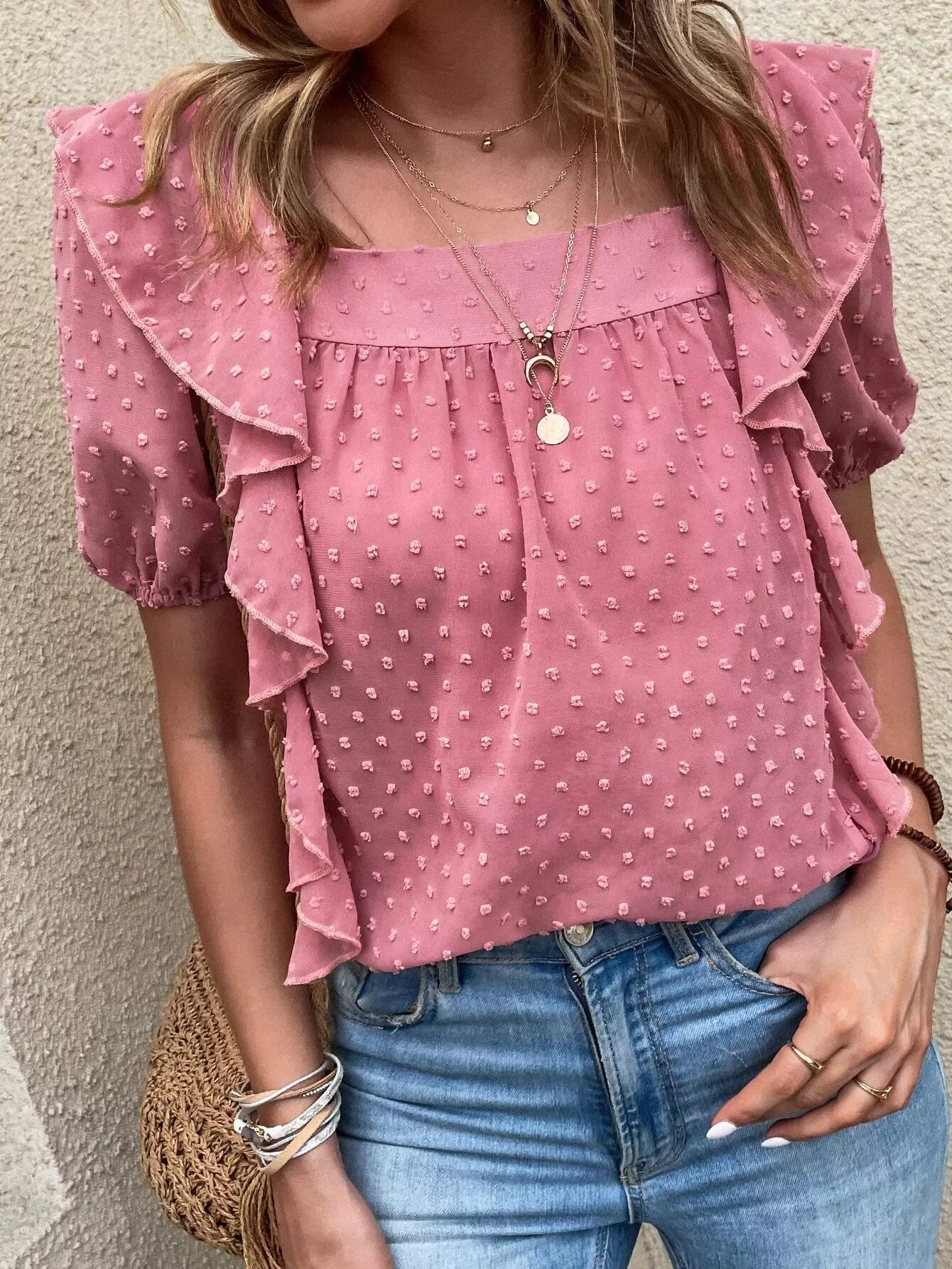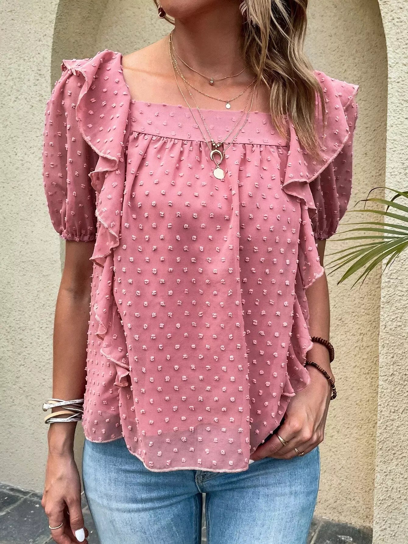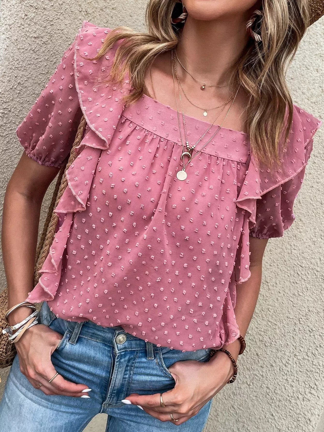 Swiss Dot Ruffle Trim Chiffon Blouse